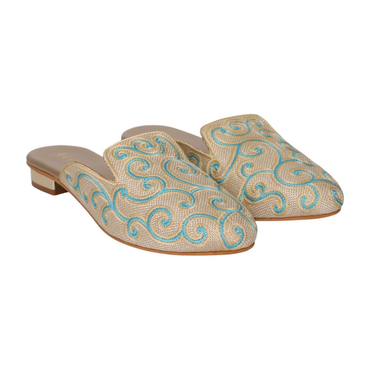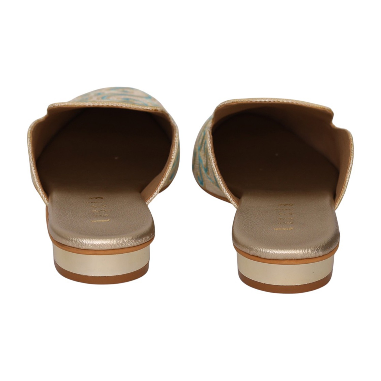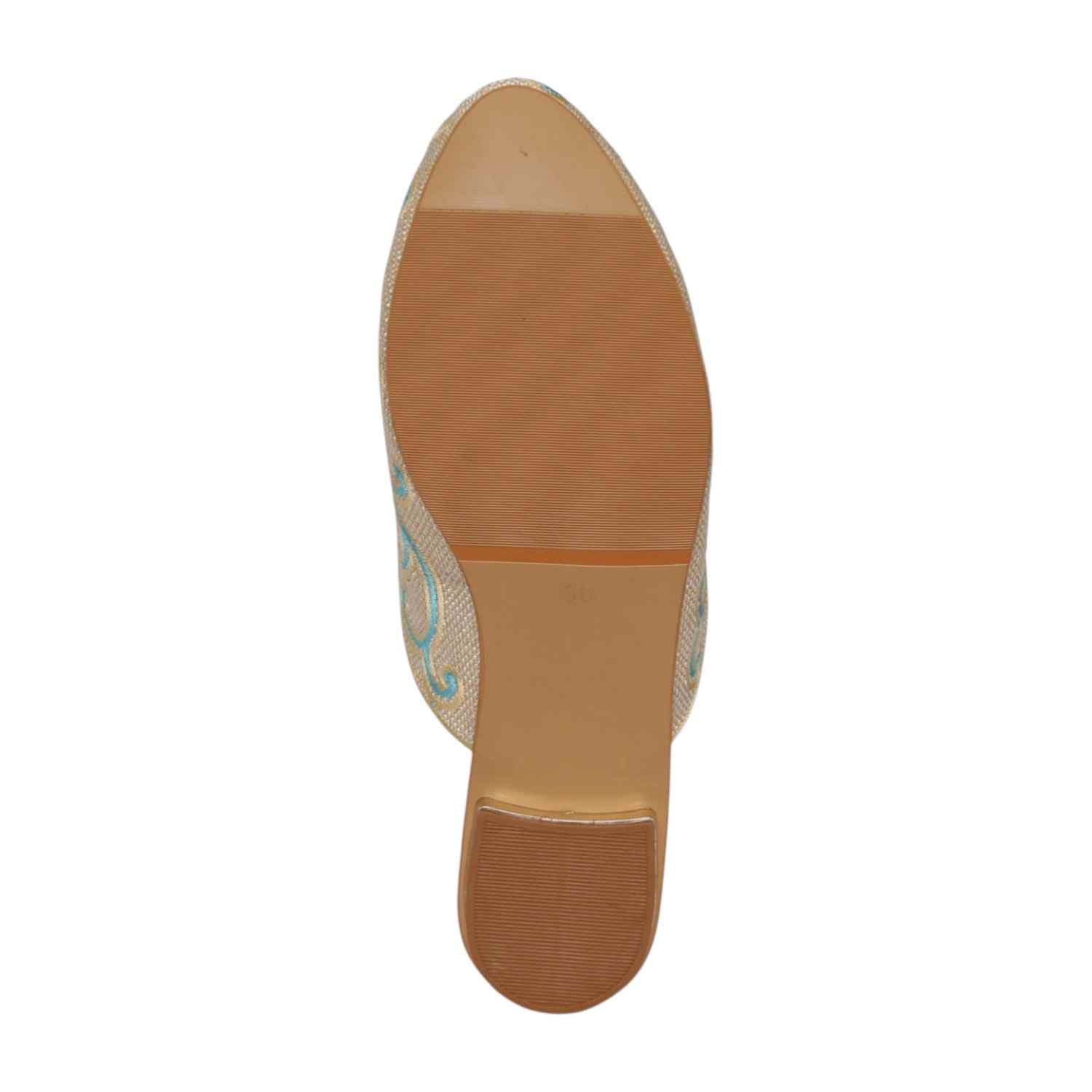 These elegant Metro mules are a sophisticated blend of traditional craftsmanship and modern design. They feature a beige synthetic upper intricately detailed with blue and light blue swirl embroidery, making them an ideal choice for ethnic and festive occasions. The slip-on design is complemented by a small, metallic-accented block heel that provides a subtle lift while maintaining comfort for extended wear.