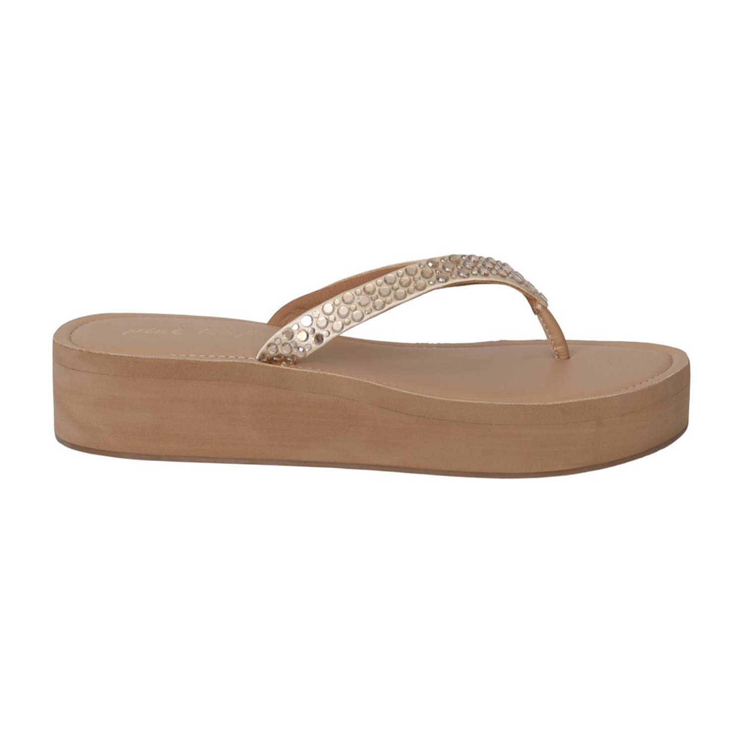 Radiating understated luxury, this gold wedge brings instant brightness to your look. The shimmering crystal strap catches the light beautifully, while the smooth wedge sole offers supportive elevation. A perfect choice for festive days, celebrations, or when your outfit needs a touch of shine.
