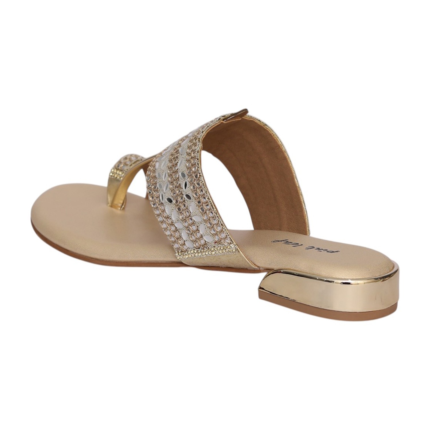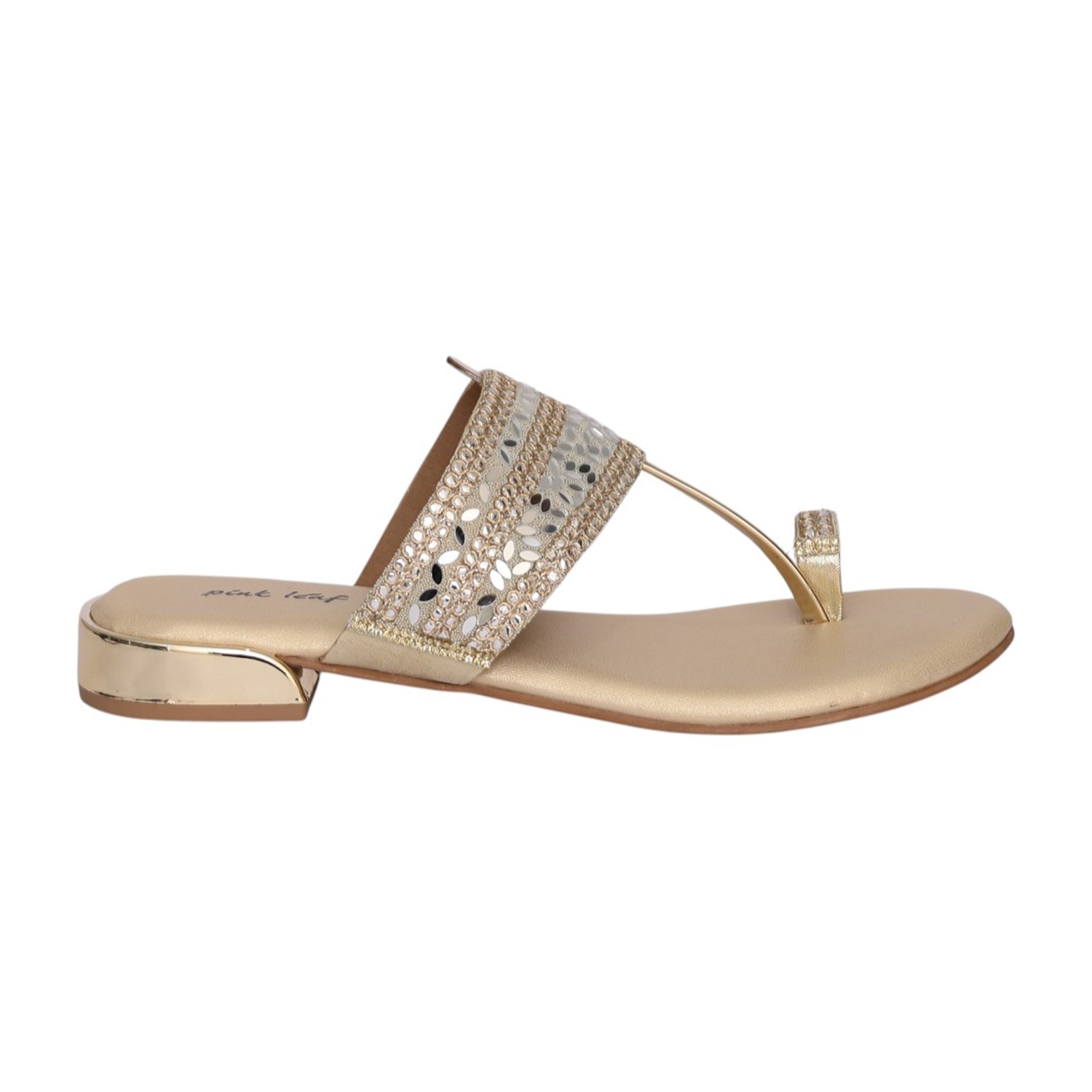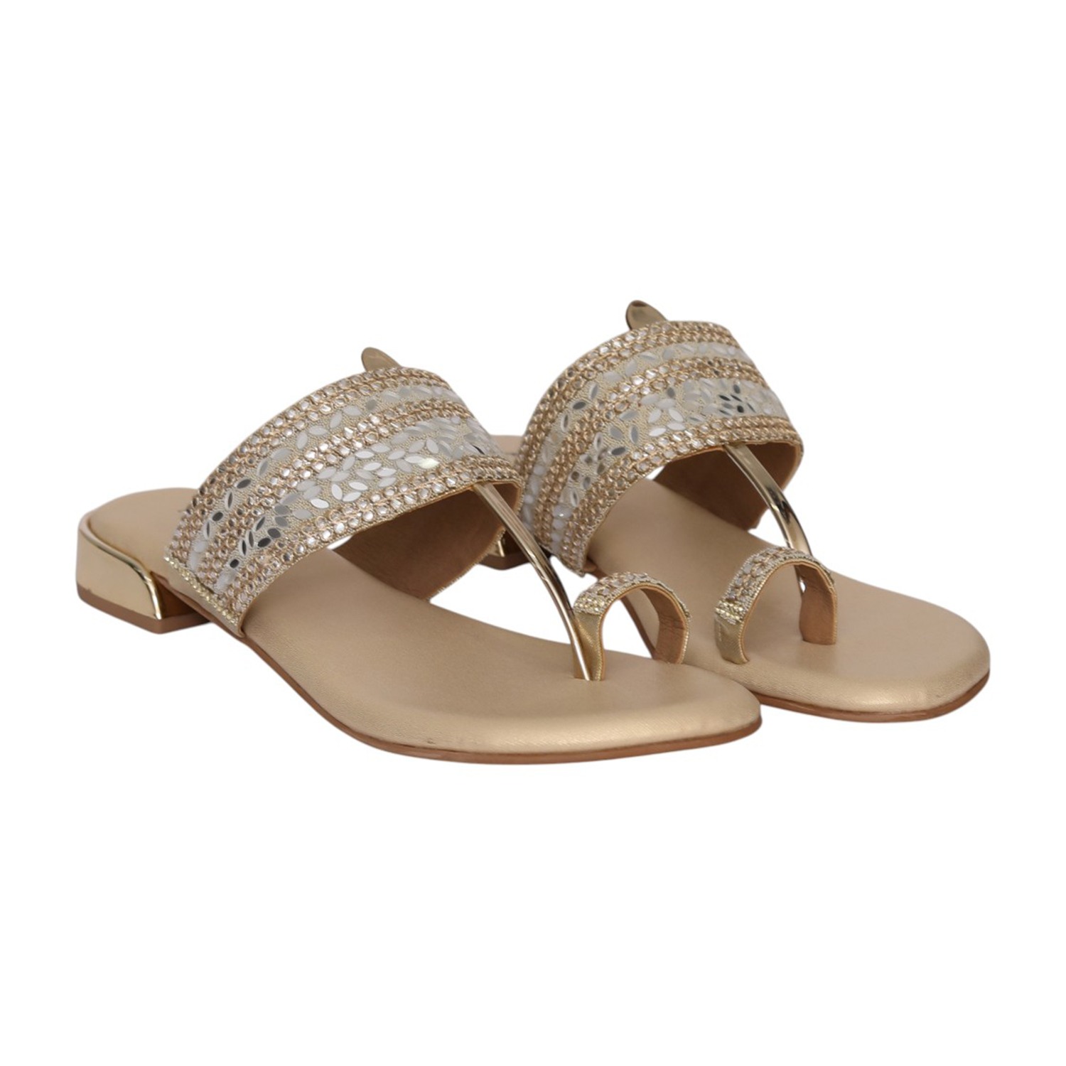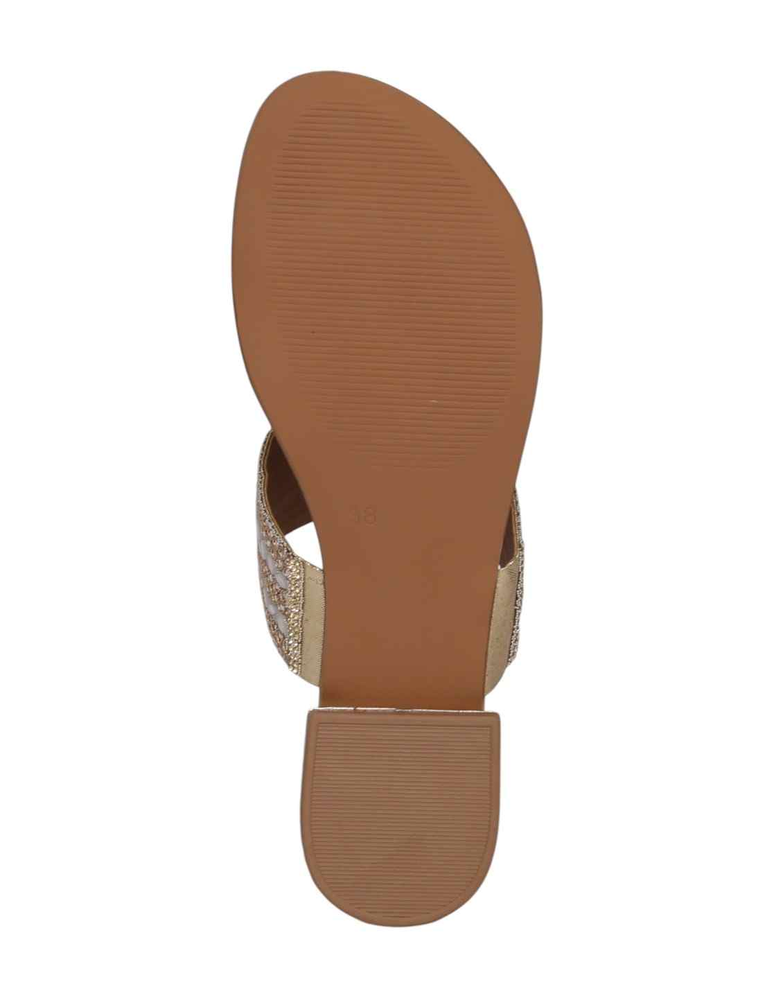Grace your steps with elegance in the Women’s Gold Regal Sparkle Toe Ring Sandal. Designed with a beautifully embellished cutwork band and a delicate toe ring detail, this sandal blends traditional charm with modern sophistication. The shimmering crystal accents add refined sparkle, while the comfortable footbed ensures effortless wear. Finished in a radiant gold tone, this sandal is perfect for festive celebrations, weddings, and stylish evening gatherings.