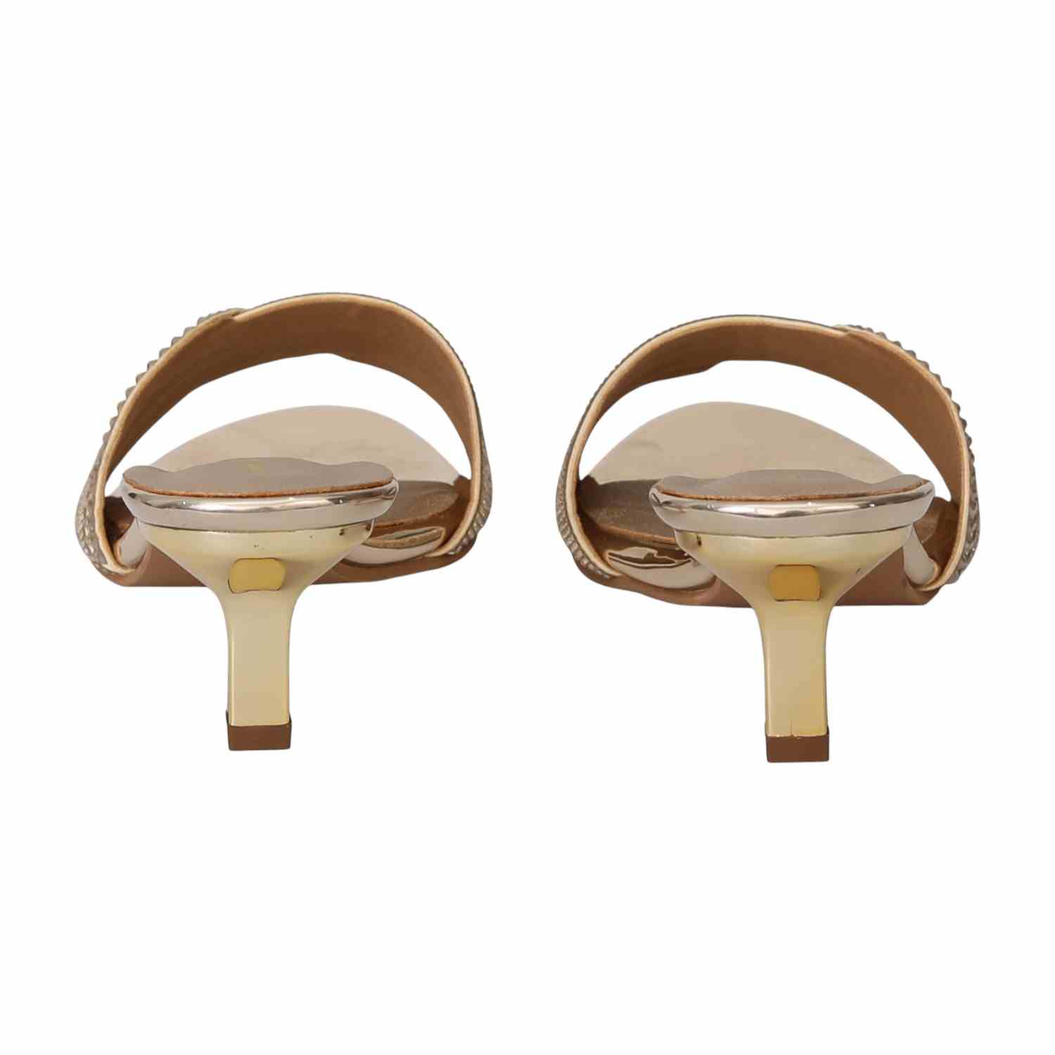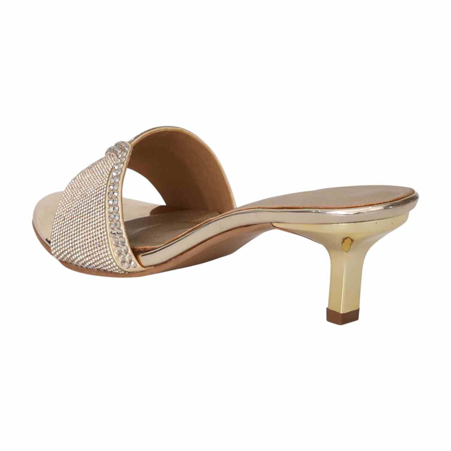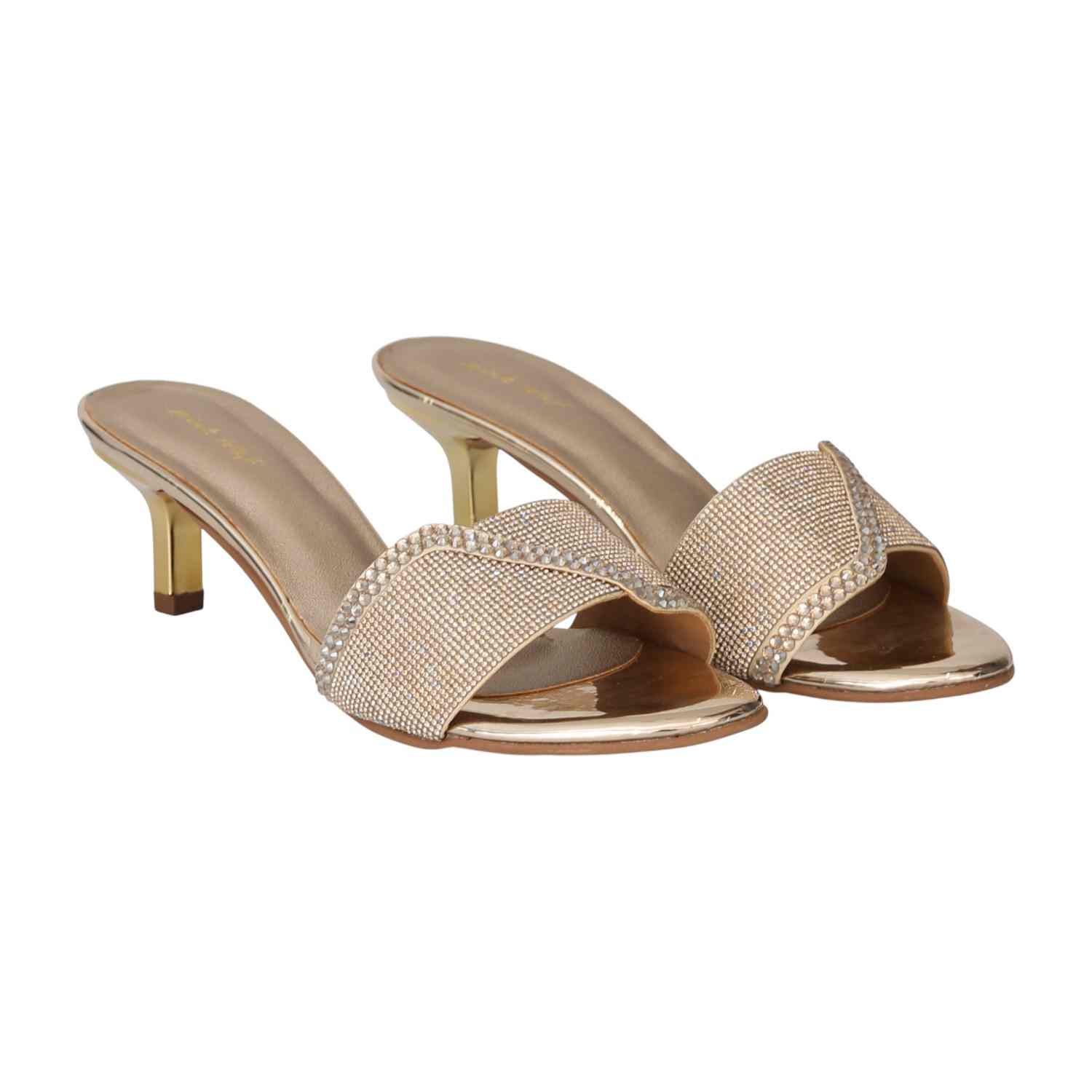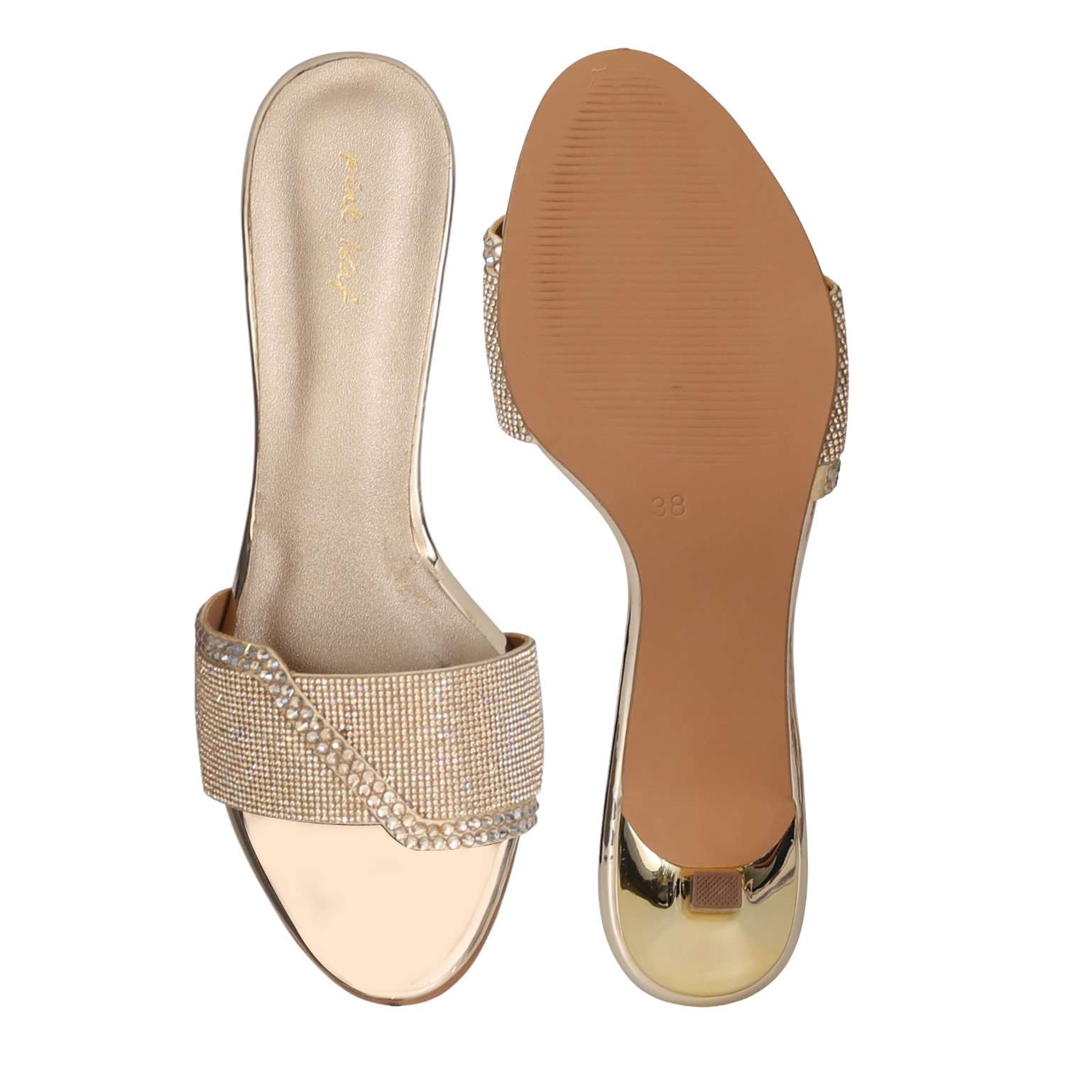 Shine with elegance in the Starlit Grace Heels — crafted for moments that deserve a little extra sparkle. Featuring a glittering strap with intricate detailing and a sleek golden heel, these slip-ons are made to dazzle. Whether you're heading to a celebration, party, or festive event, their cushioned insole and lightweight design keep your steps graceful and comfortable.