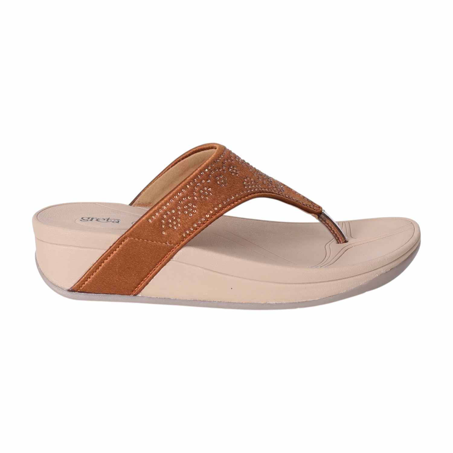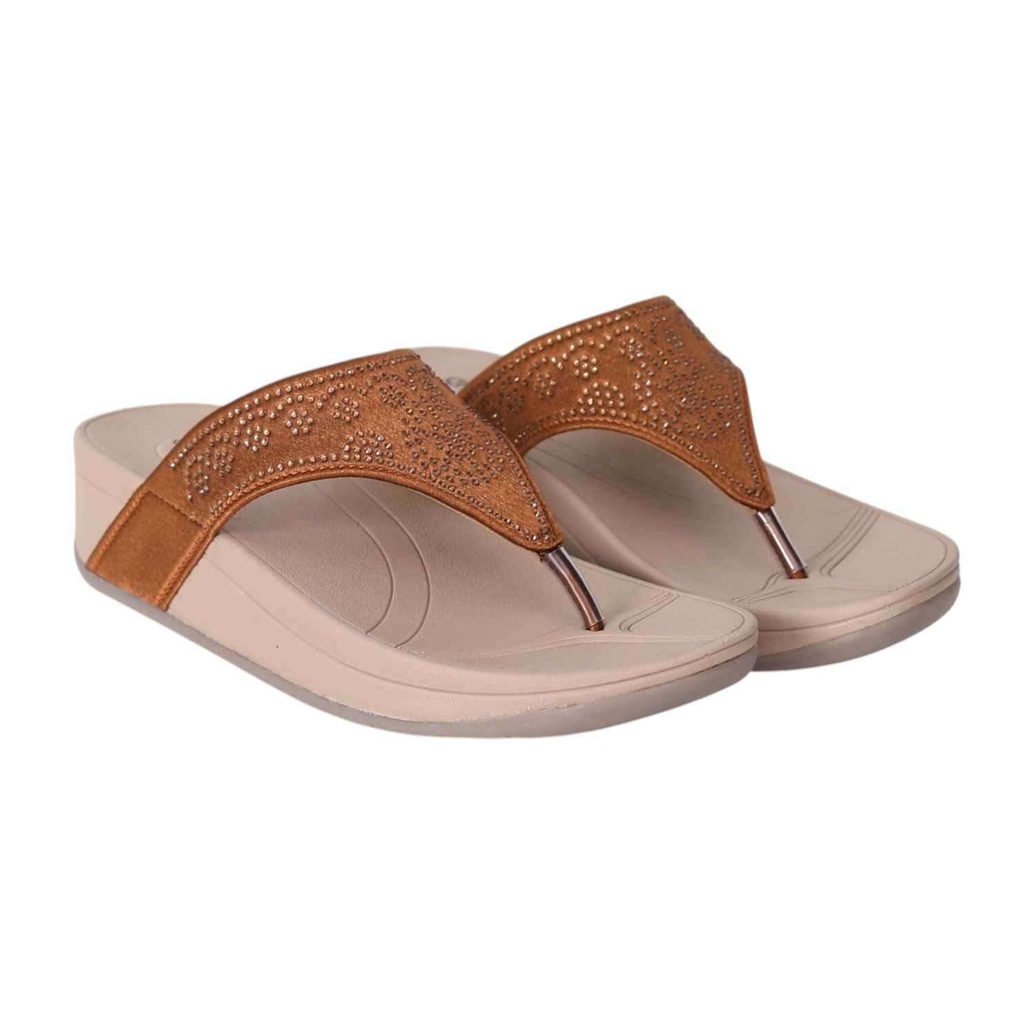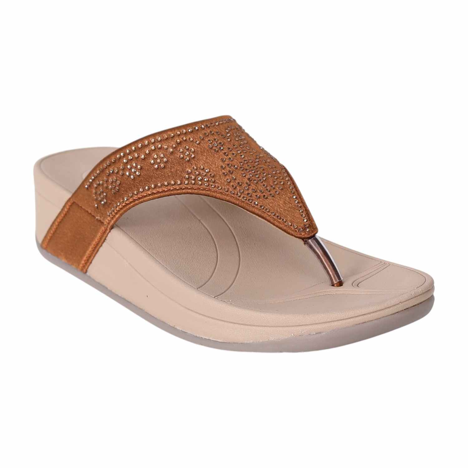 Combine elegance and comfort with these wedge slip-on sandals designed for everyday style. The broad upper strap features subtle embellishments for a touch of sparkle, while the cushioned footbed and supportive wedge heel ensure comfort with every step. These sandals offer an easy slip-on, making them suitable for both casual and semi-formal occasions.