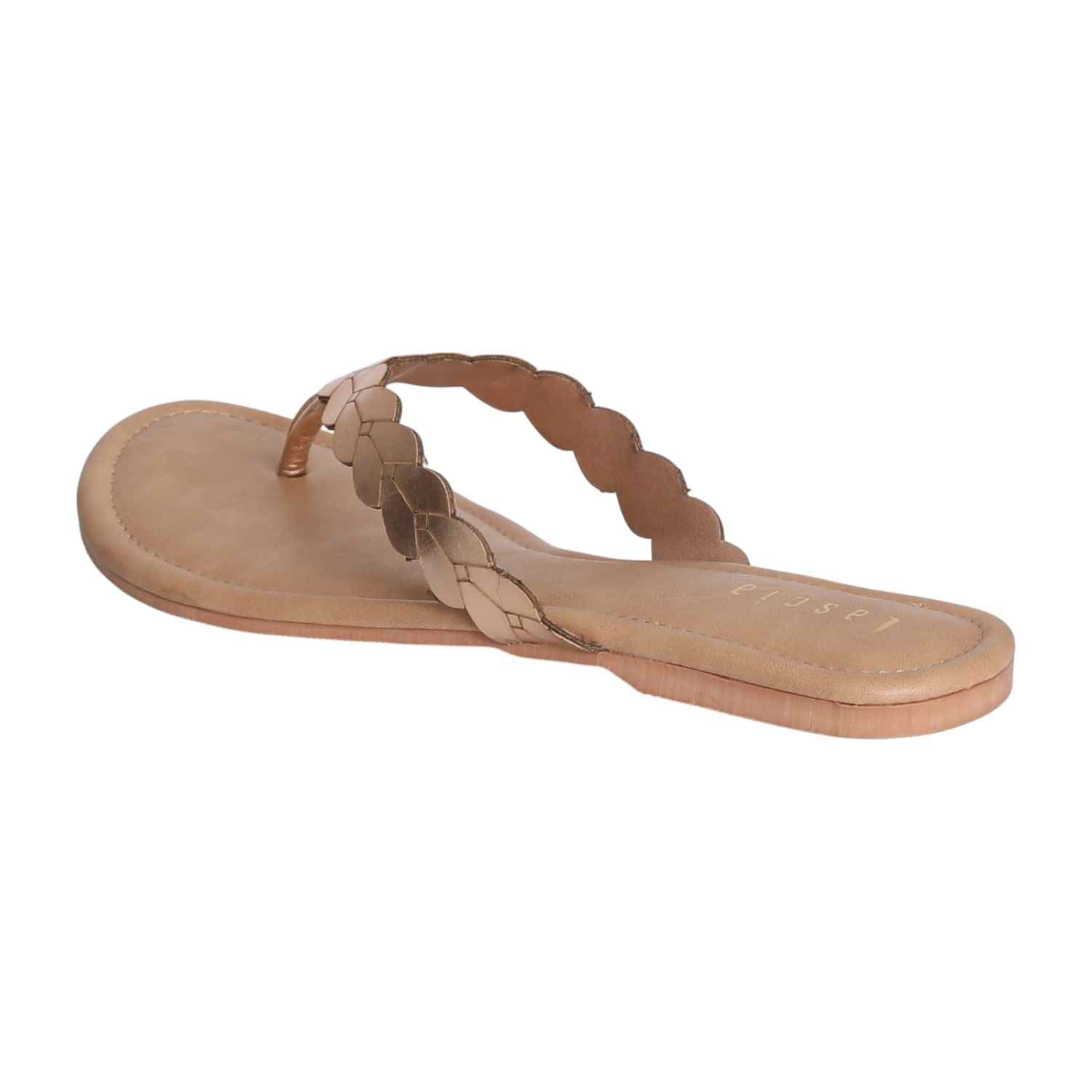 Elegant and Classy, these Golden Weave Flat Thong Sandals combine simplicity with a touch of glam. Featuring a unique woven-style metallic strap in a beautiful Golden hue, they offer a refined yet relaxed look perfect for casual and festive wear alike. The cushioned insole and flat sole make them a go-to option for effortless everyday comfort without compromising on style.