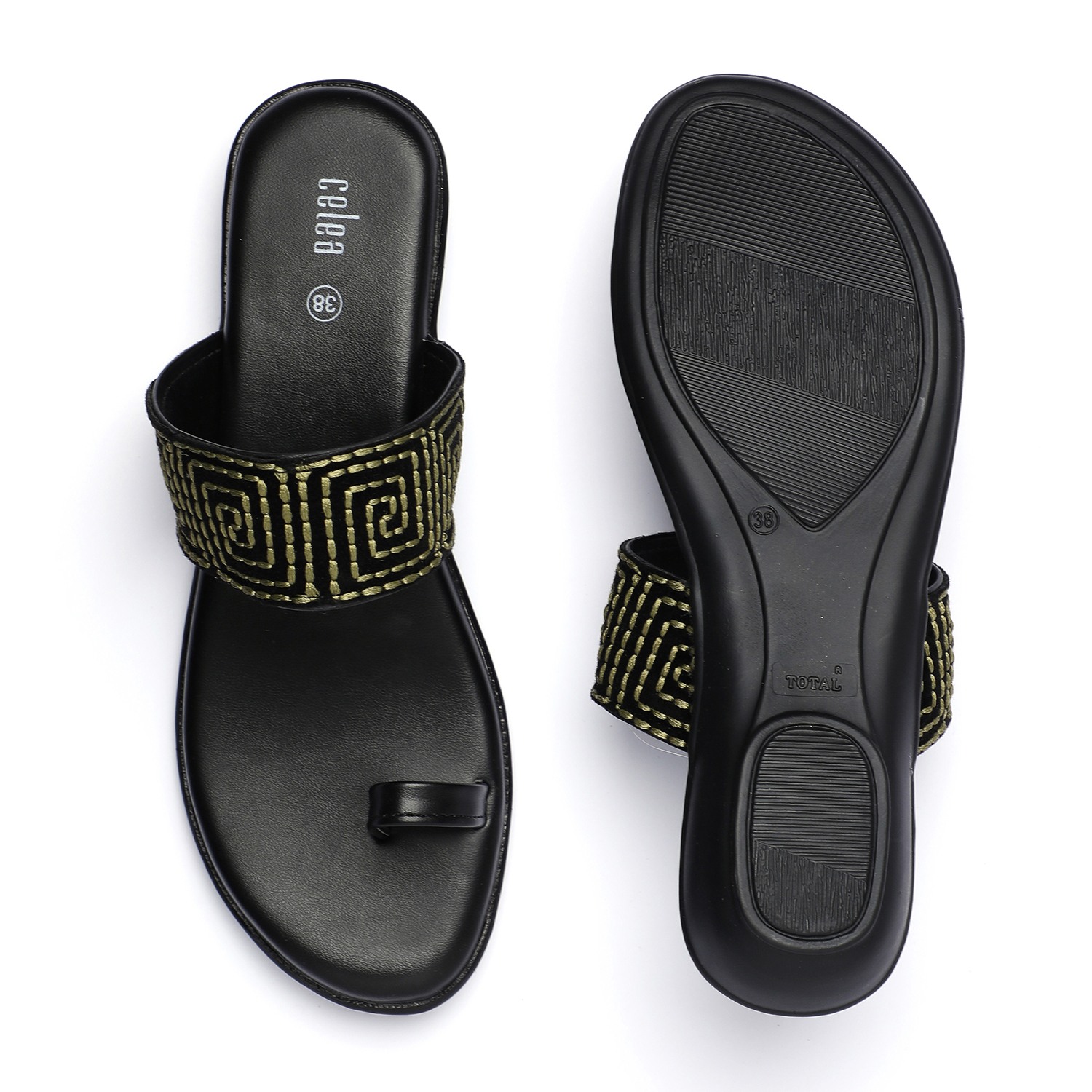 This pair of stylish Women Flats are crafted to enhance your charisma.Celea footwear is fashioned to perfection, these are made using premium quality material to assure superior comfort and unmatched style with long-lasting performance.The embroided strap add a complete and ravishing look by wearing this pair of flats for Women.The cushioned Footbed provides a secure fit and allday comfort.
