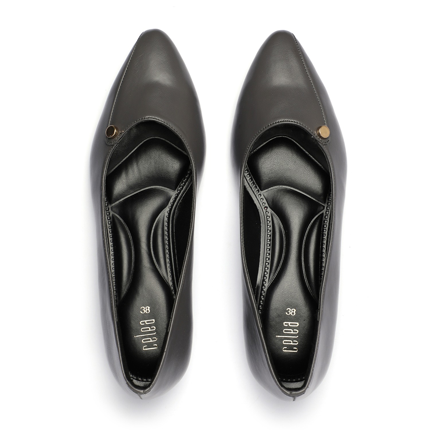 A quintessential addition to any wardrobe, these Grey ballerina shoes combine graceful design with practical comfort. Featuring a sleek pointed toe and a stable low heel, they're perfect for adding a touch of feminine sophistication to any look.