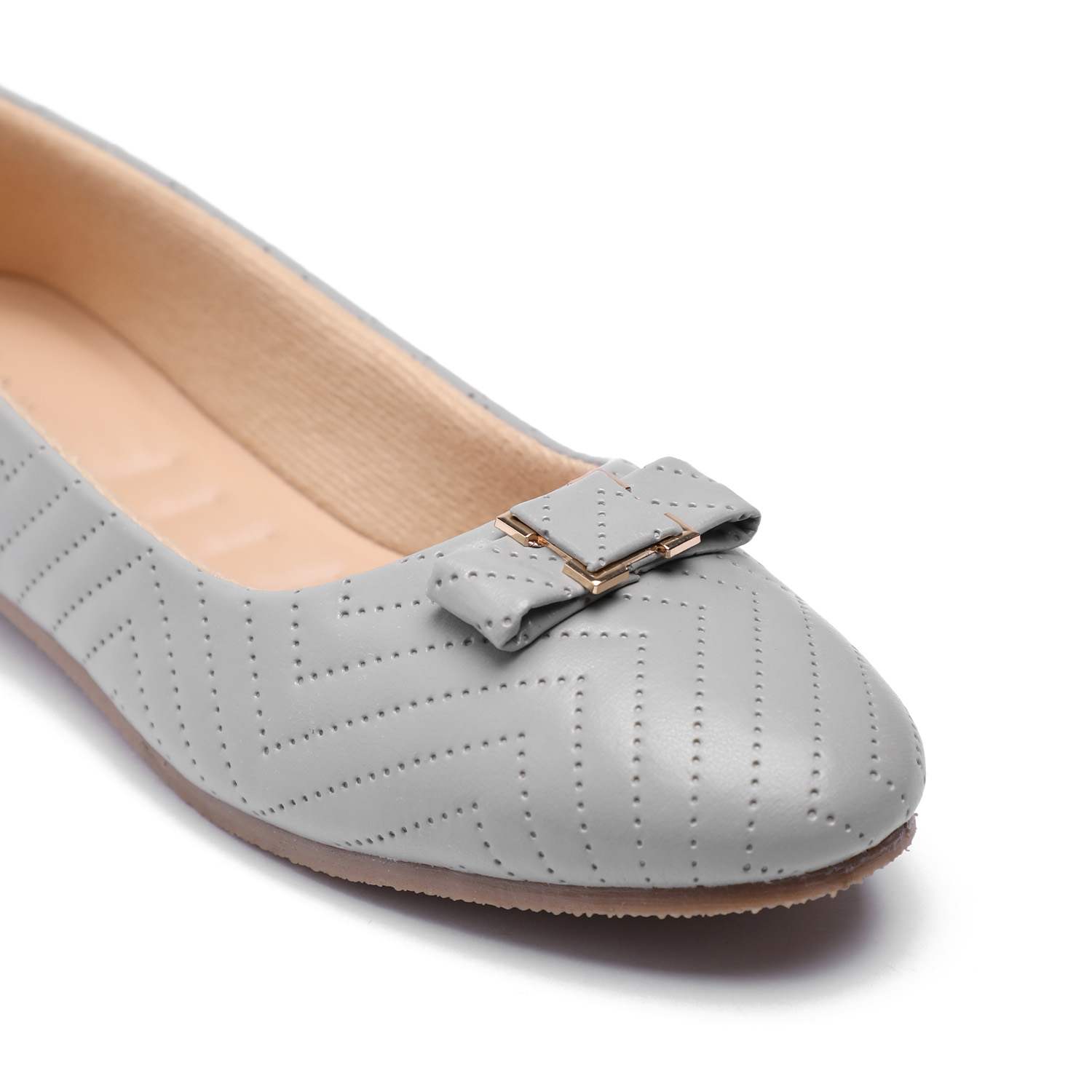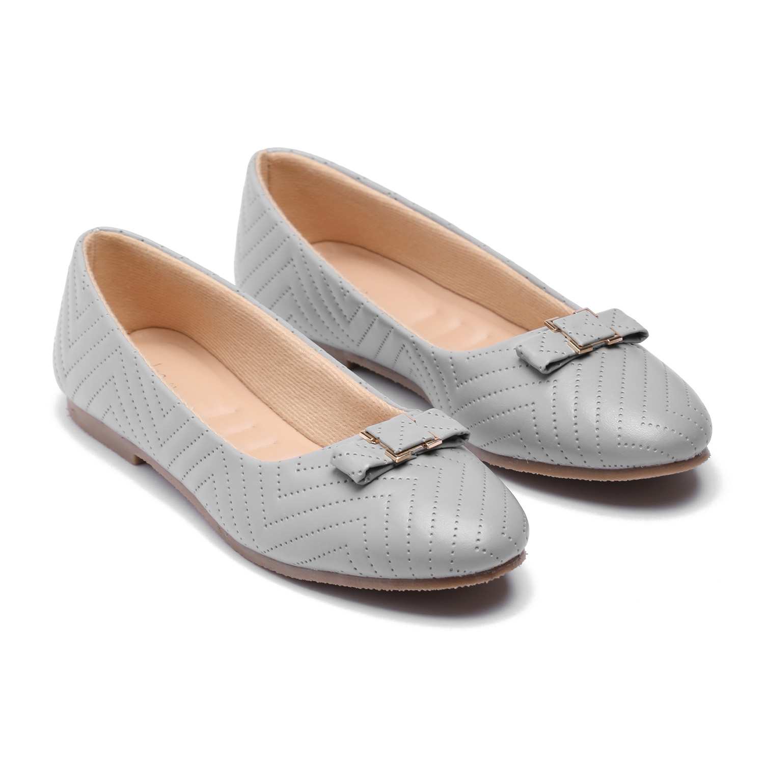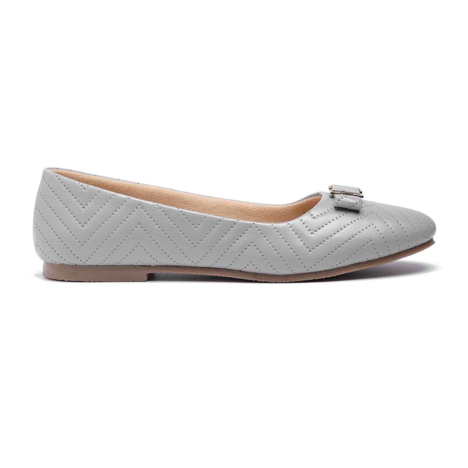 Infuse your look with understated charm with these grey ballet flats. Their classic round-toe silhouette, unique quilted detail, and charming bow make them an ideal choice for adding a touch of refined elegance to any casual or semi-formal outfit.