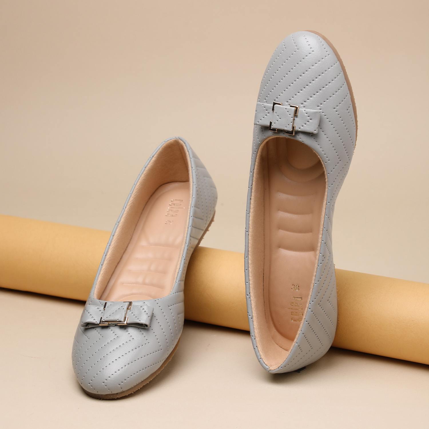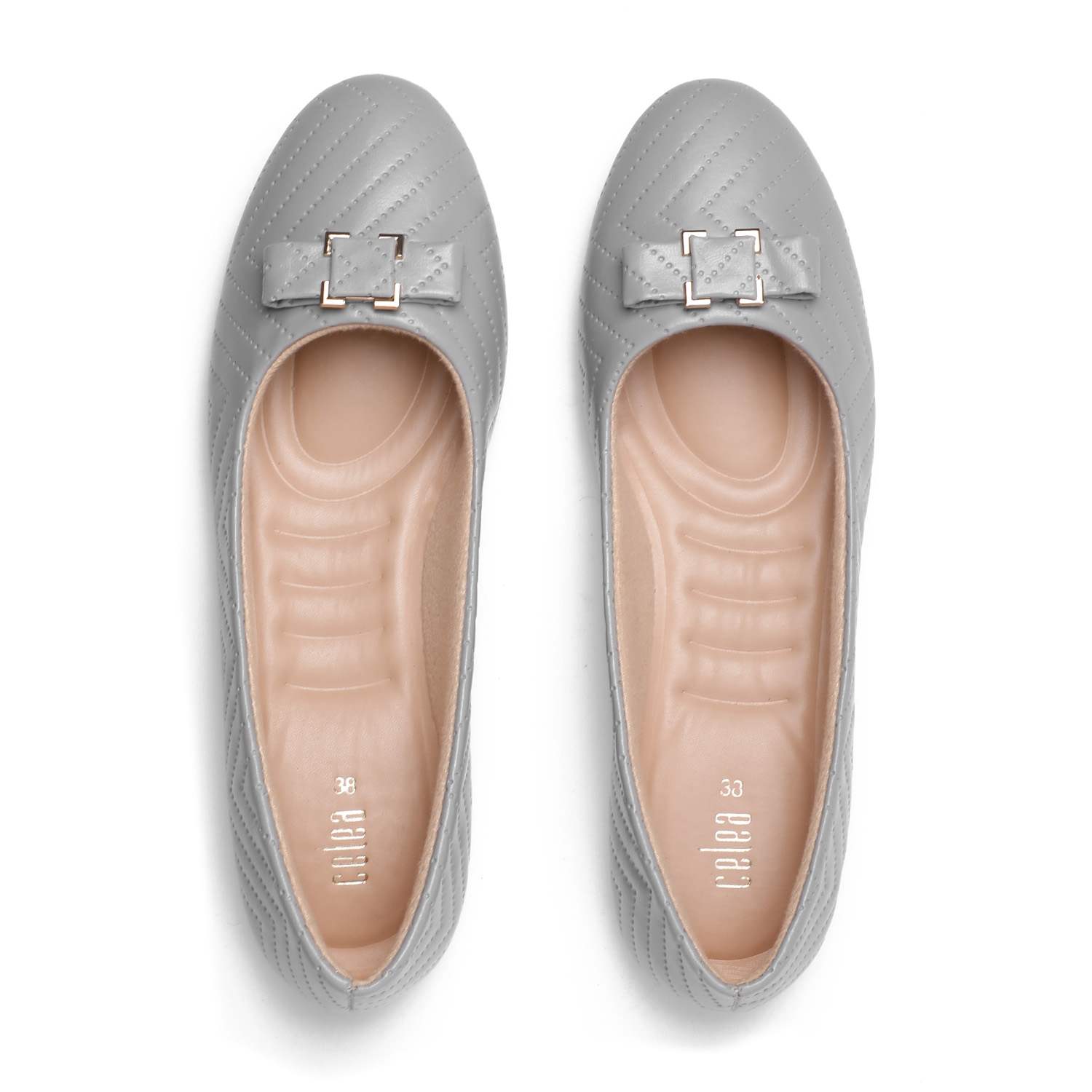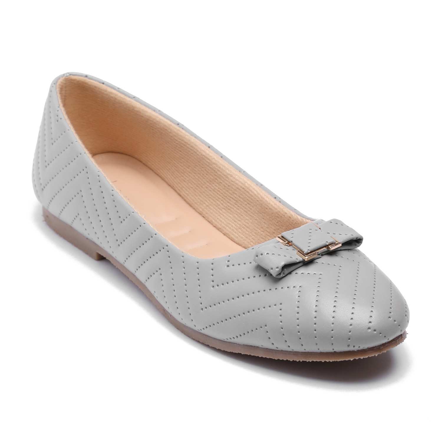 Infuse your look with understated charm with these grey ballet flats. Their classic round-toe silhouette, unique quilted detail, and charming bow make them an ideal choice for adding a touch of refined elegance to any casual or semi-formal outfit.