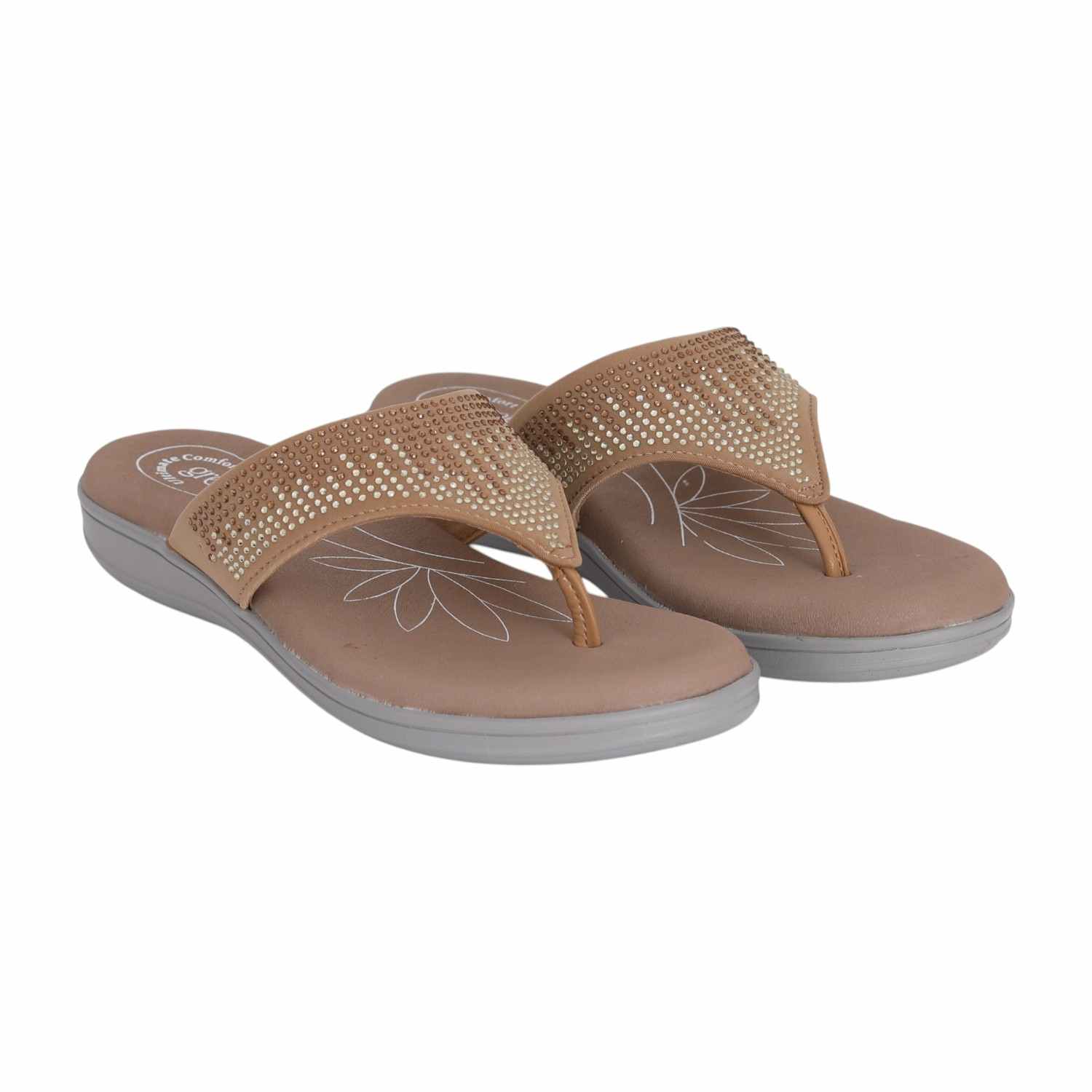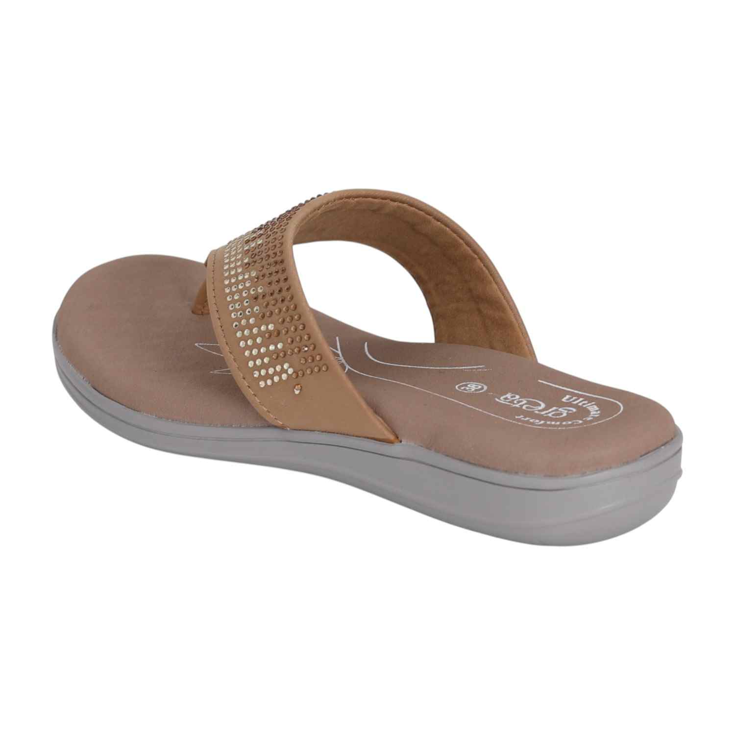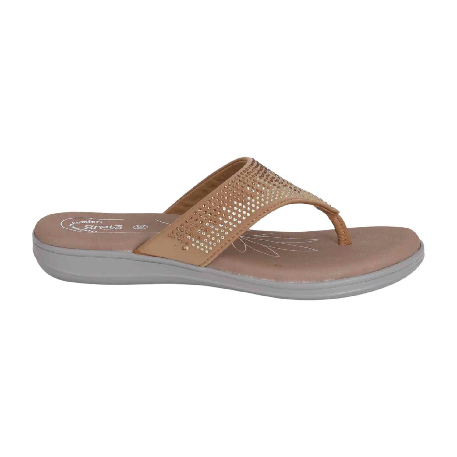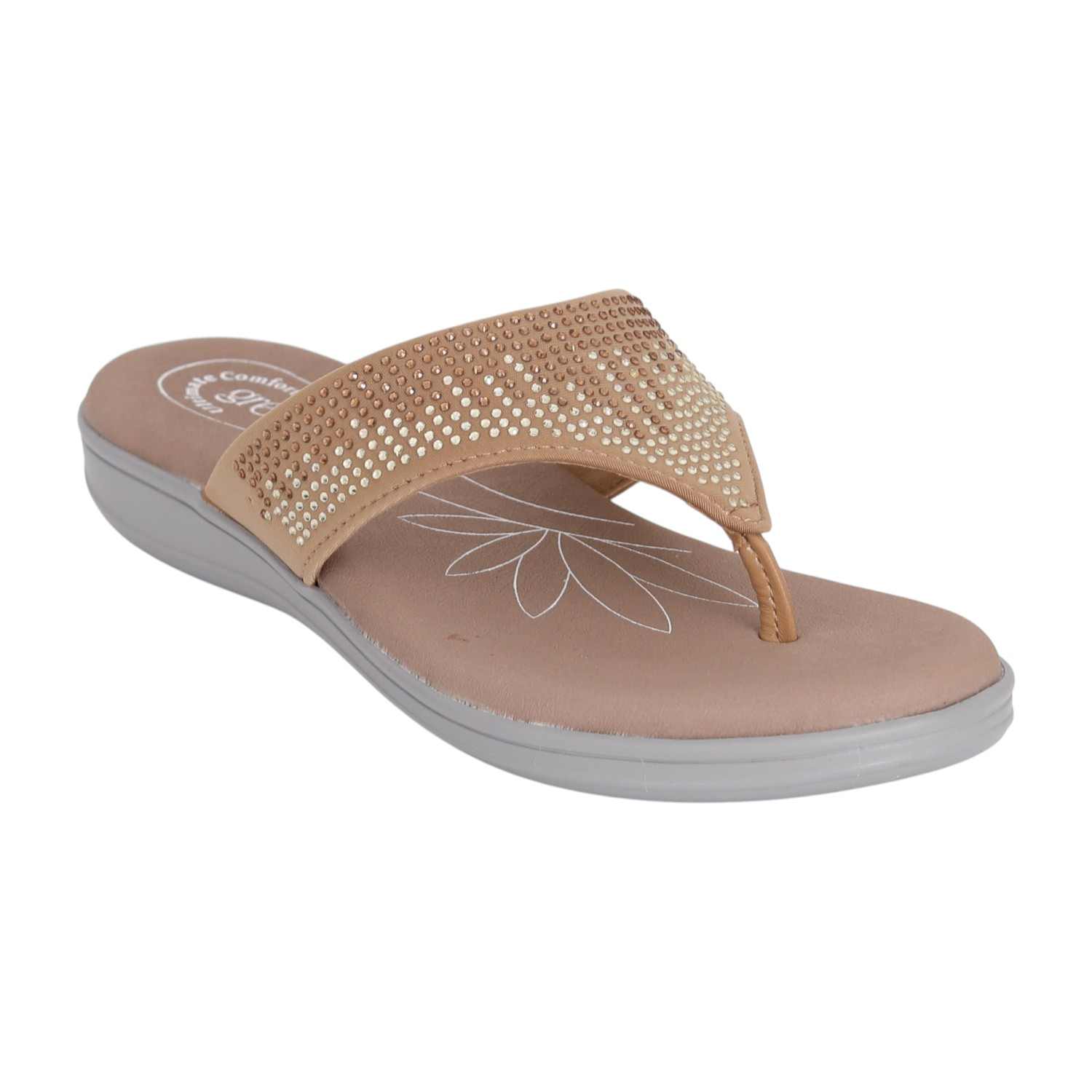 Designed to bring sparkle and comfort together, this pair features a wide strap adorned with glimmering embellishments for a stylish touch. The cushioned footbed ensures day-long comfort, while the wedge sole offers a gentle lift for a graceful look. Ideal for casual outings, festive wear, or evening gatherings, it blends effortless charm with everyday ease.
