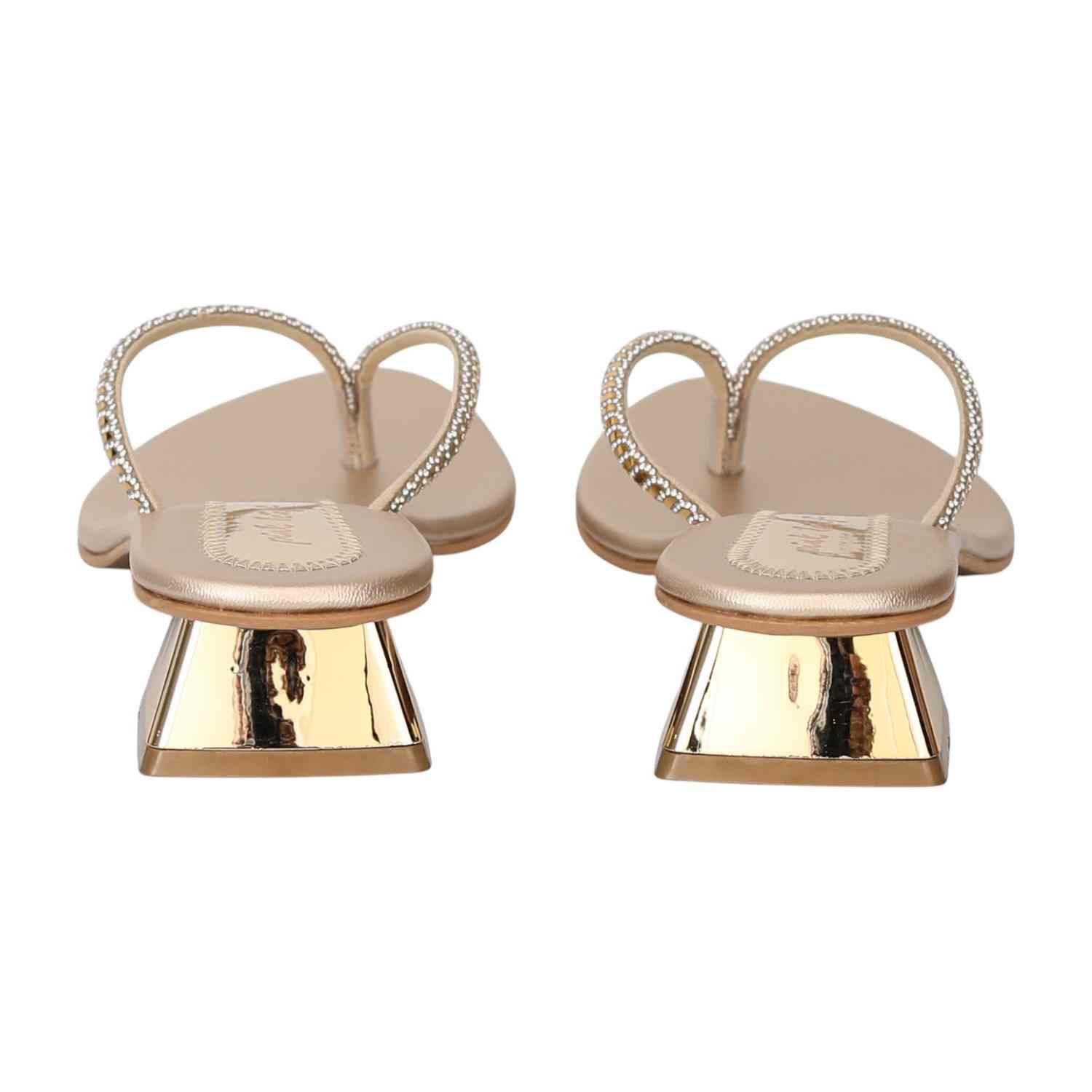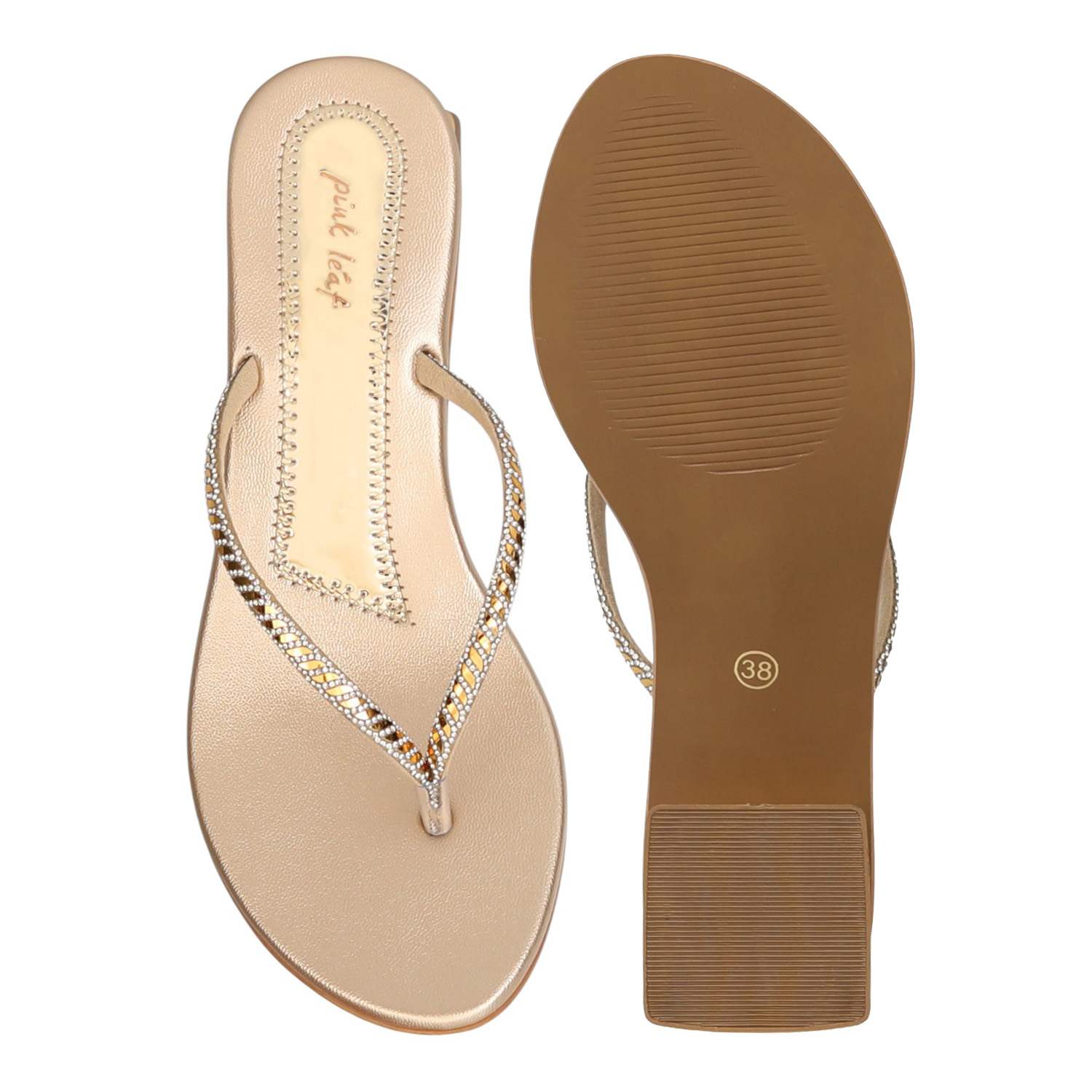 Shine bright with these elegant shimmer slip-on sandals. The soft metallic tone pairs beautifully with both ethnic and western wear. Designed with a glittering thong strap and cushioned footbed, these sandals bring elegance and comfort together for your day-to-night ensembles.