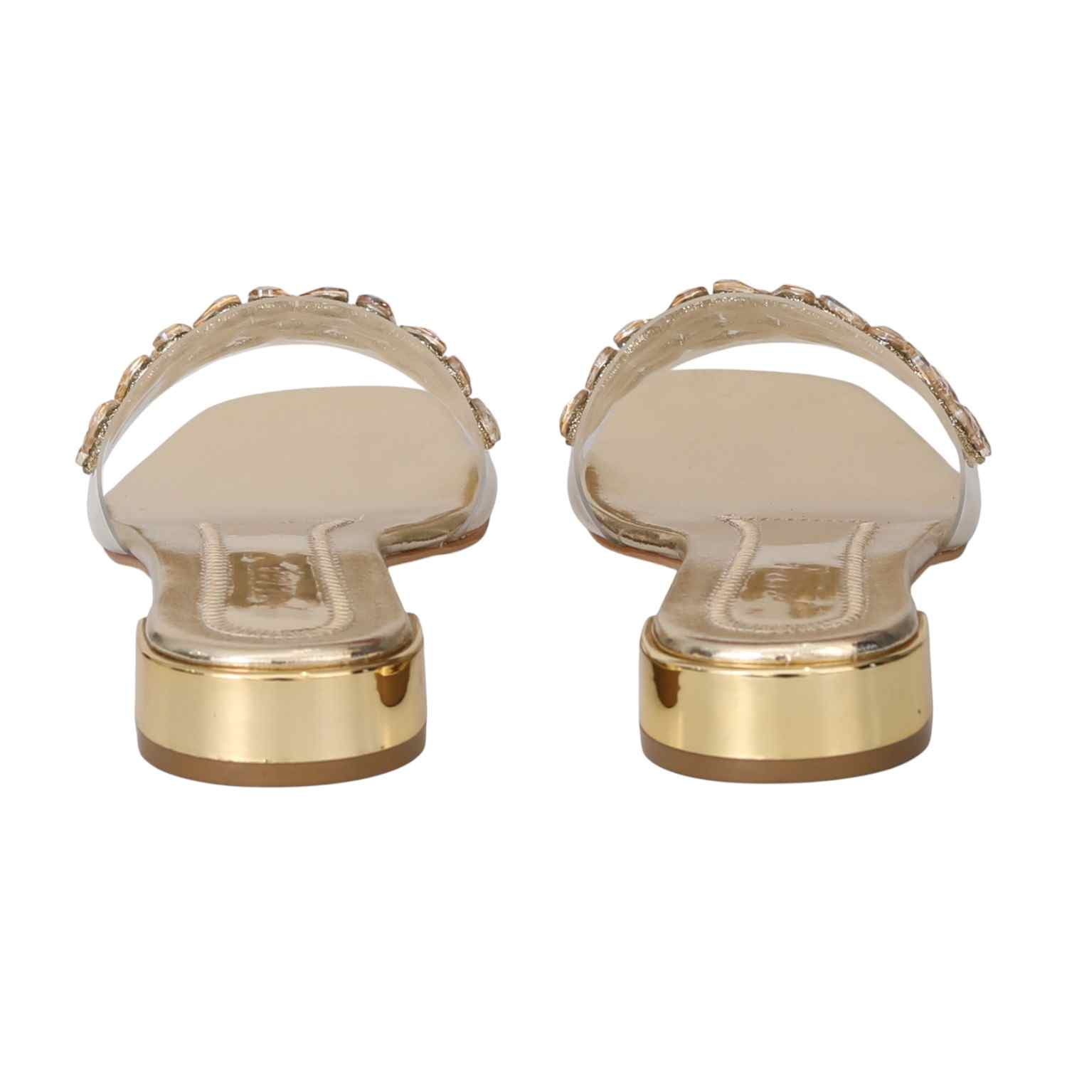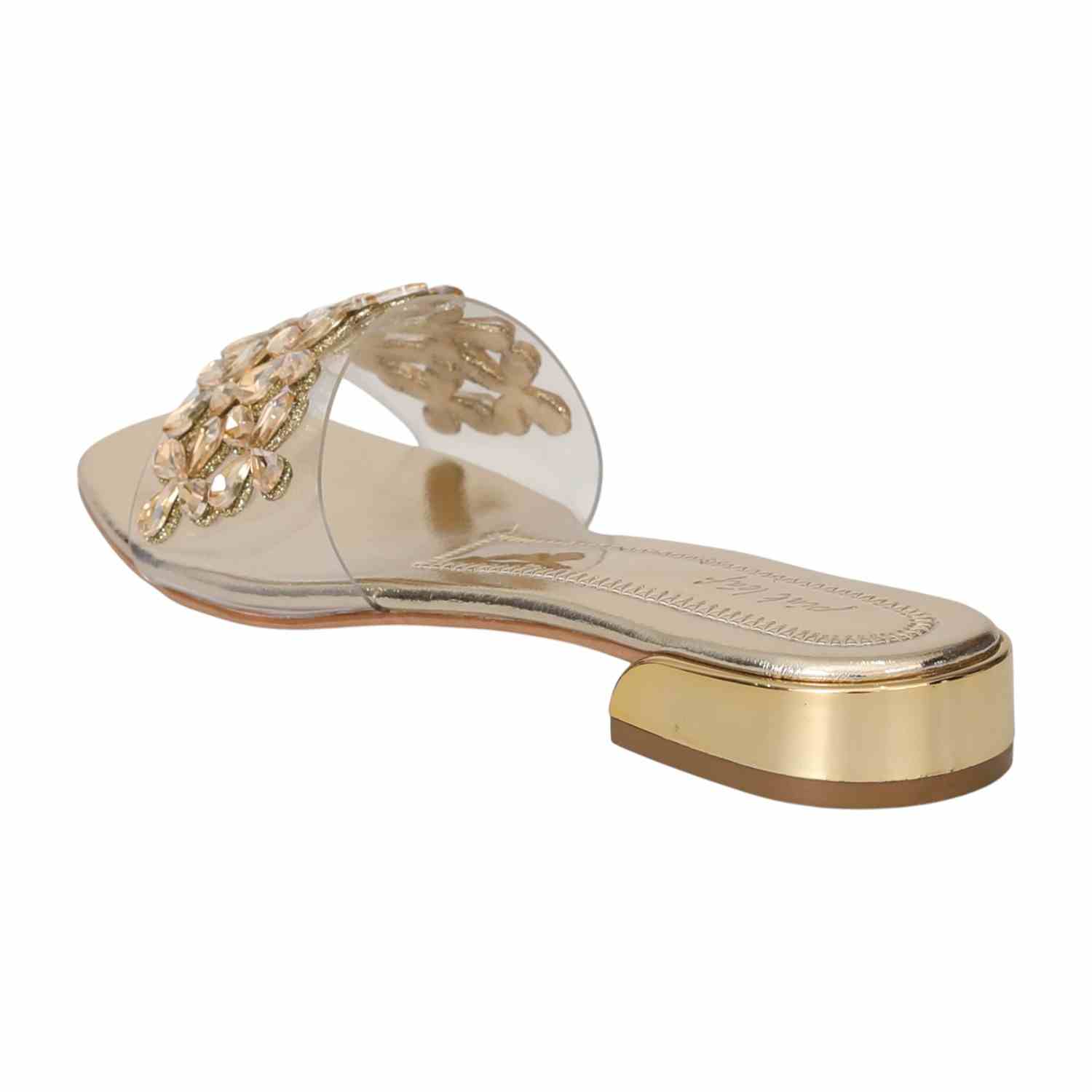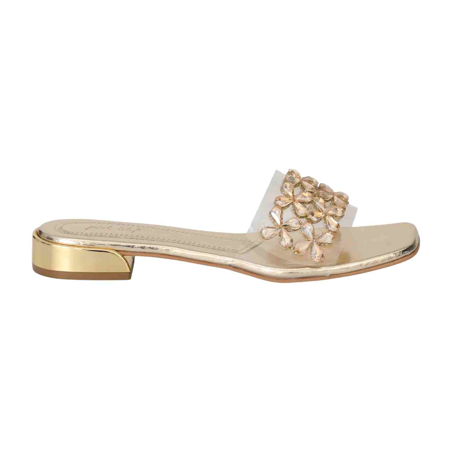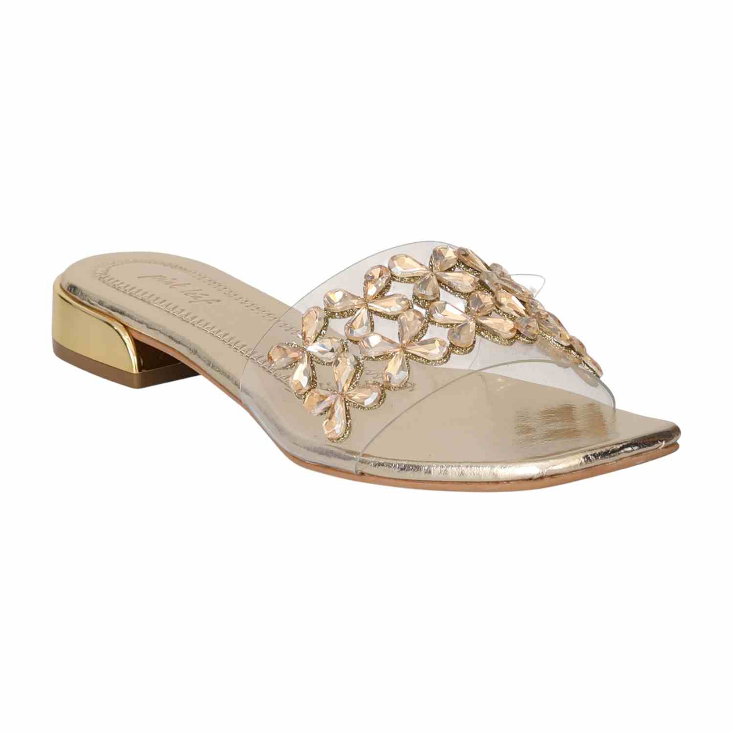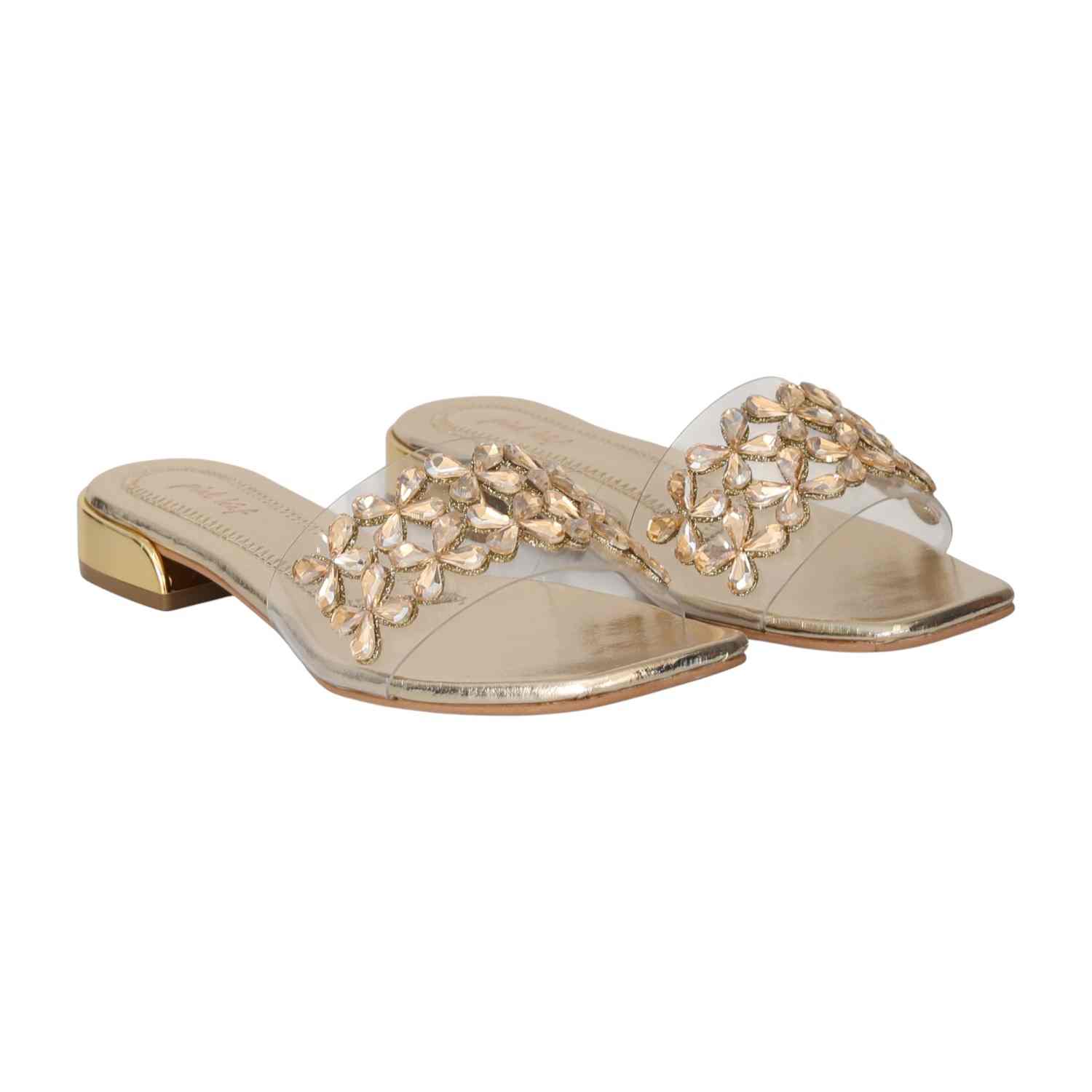 Elevate your style with these light gold slide sandals featuring radiant embellishments. With a comfortable sole and stylish design, they’re a versatile pick for festive events, evening outings, and elegant celebrations.