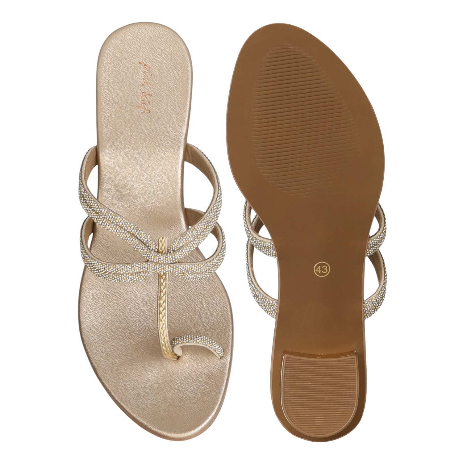 Shine with every step in these light gold toe-ring sandals featuring glittering crisscross straps. Designed for comfort and elegance, they’re the perfect choice for festive occasions, weddings, and glamorous evenings out.