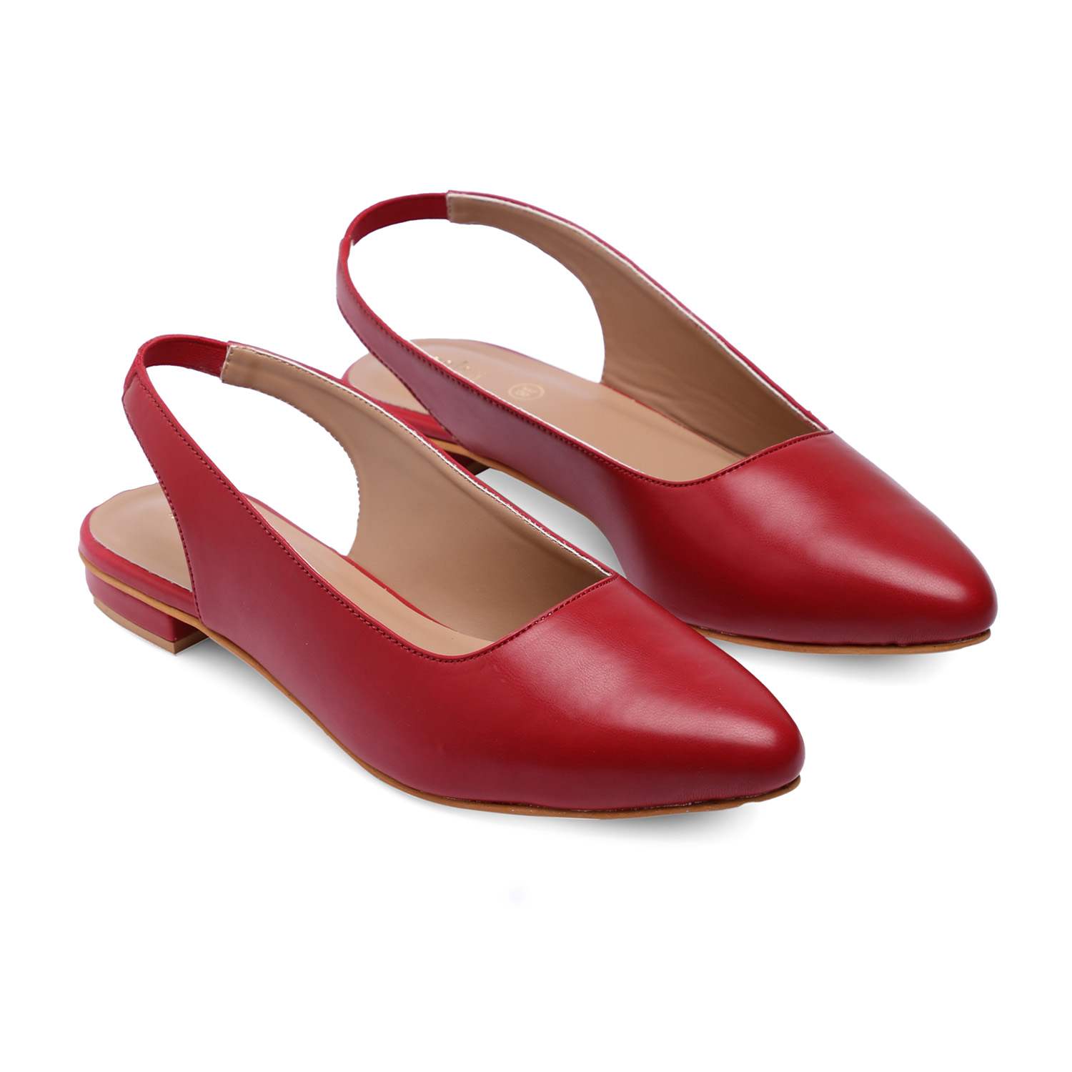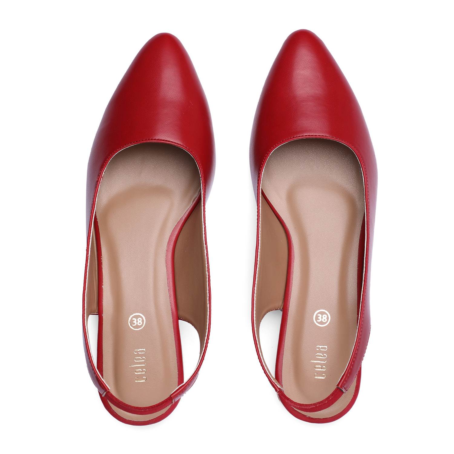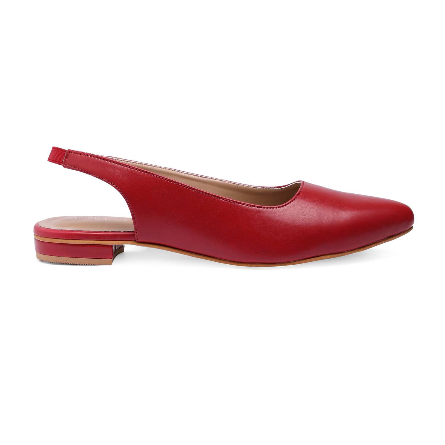 Infuse your ensemble with timeless elegance and a bold statement with these striking red slingback flats. Their classic design ensures versatility, making them an ideal choice for elevating any outfit from tailored trousers to a flowing dress, ensuring comfort throughout the day