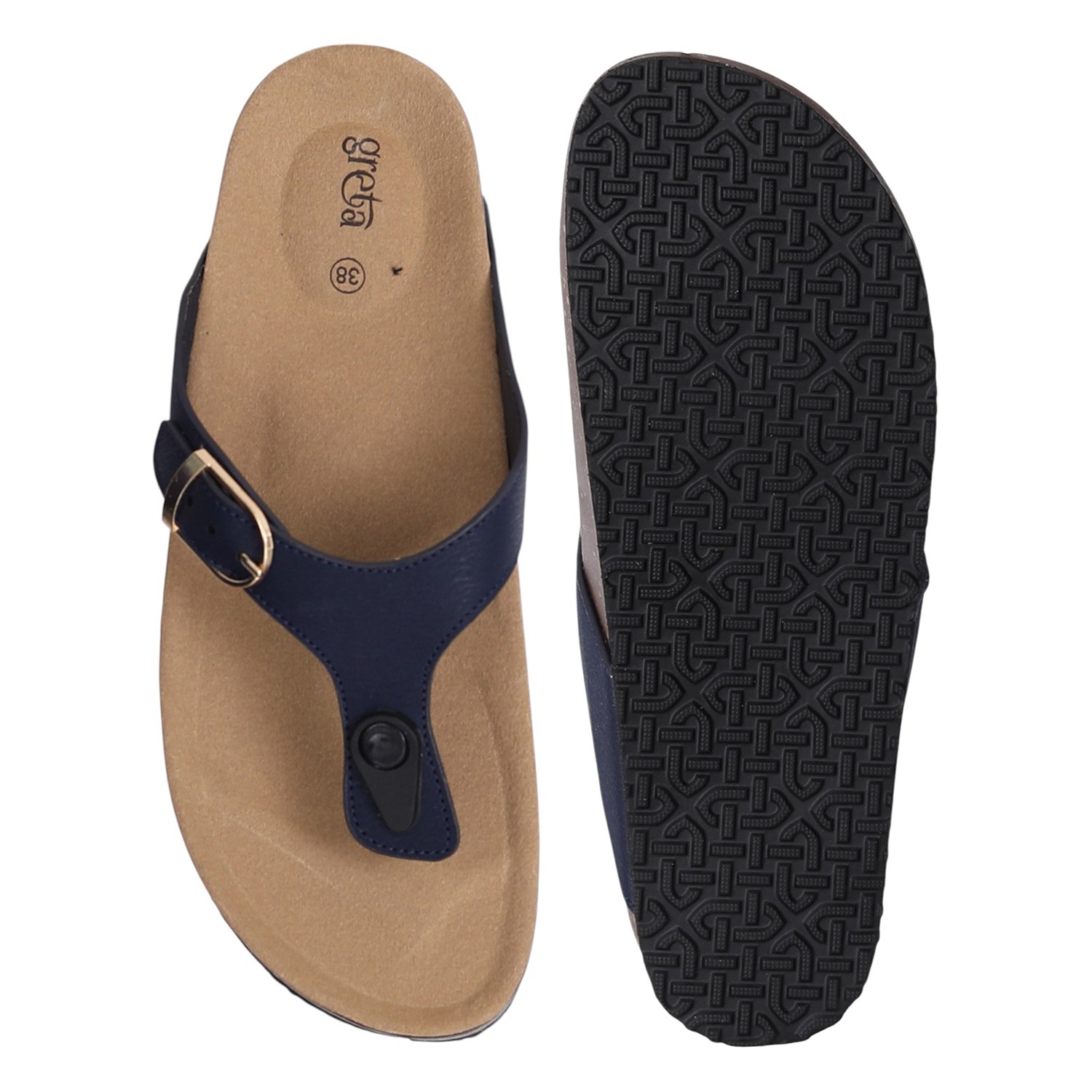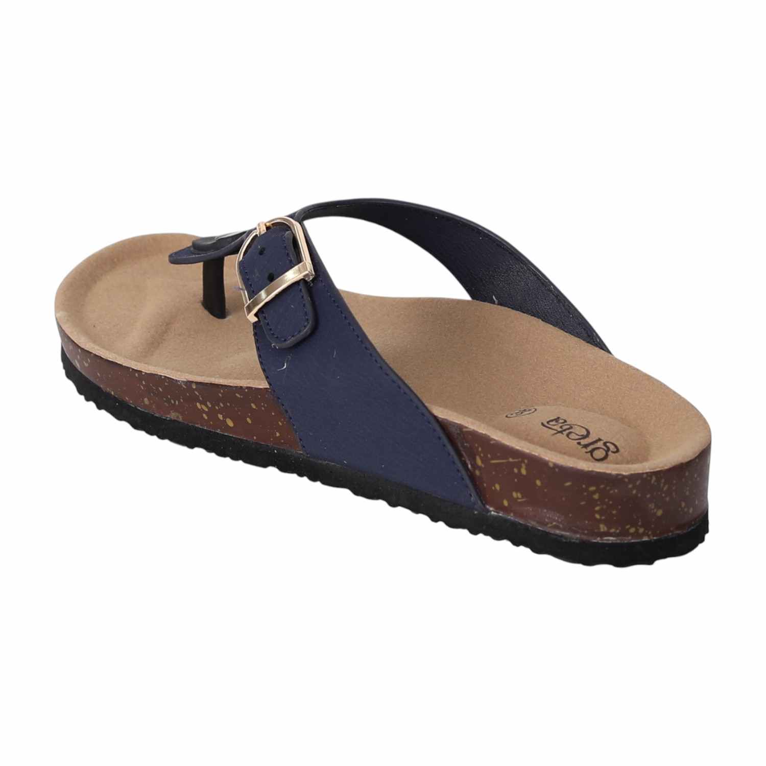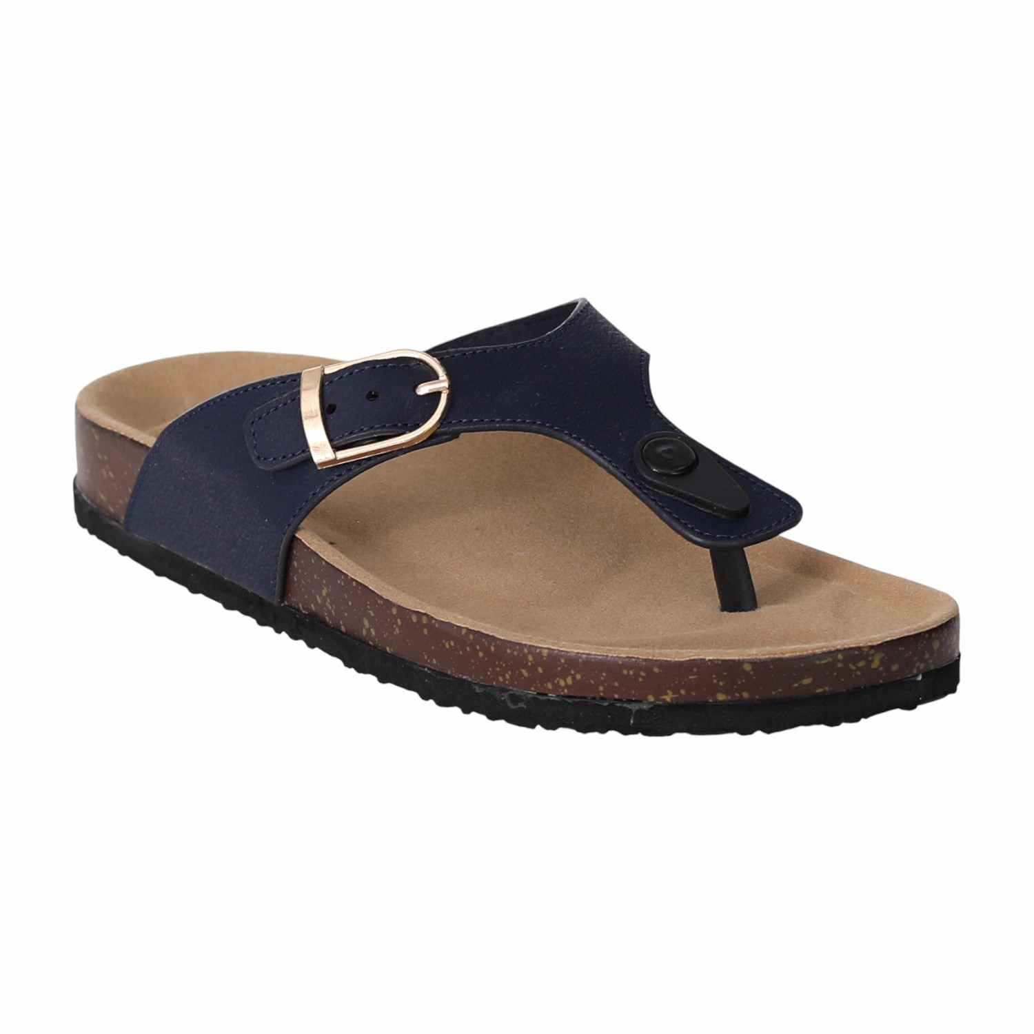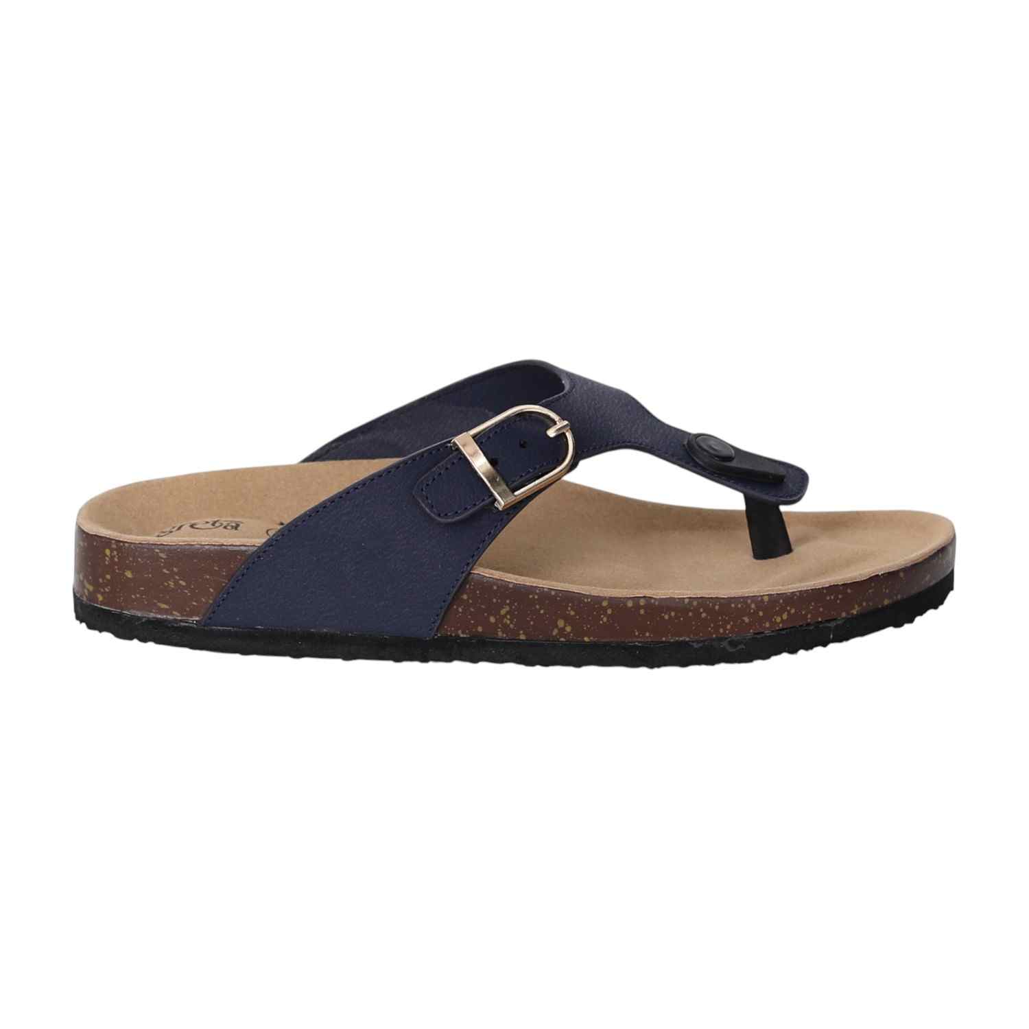 Experience relaxed style and exceptional comfort with these women cork footbed sandals. Designed with a supportive contoured footbed and a durable synthetic upper, these slip-ons feature an adjustable buckle strap for a secure fit. The thong-style design offers a breathable and laid-back feel, making them perfect for daily wear, travel, or weekend outings. A textured outsole ensures grip and stability on various surfaces.