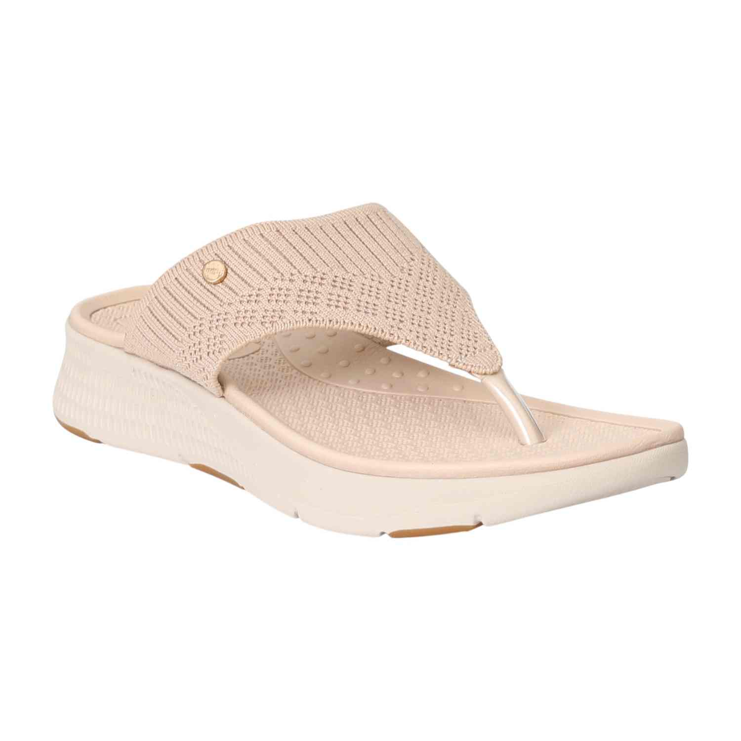These sandals blend relaxed style with everyday comfort. They feature a soft, textured knit upper in a versatile neutral shade, paired with a lightweight wedge sole for a comfortable lift. A perfect choice for effortless, casual wear.