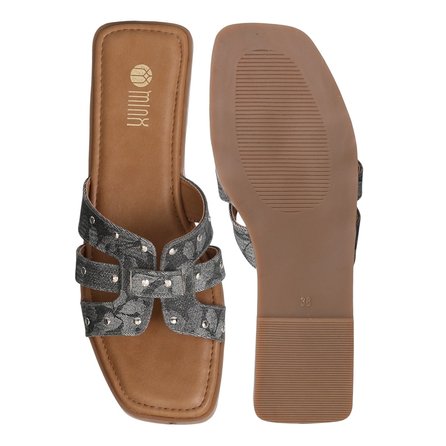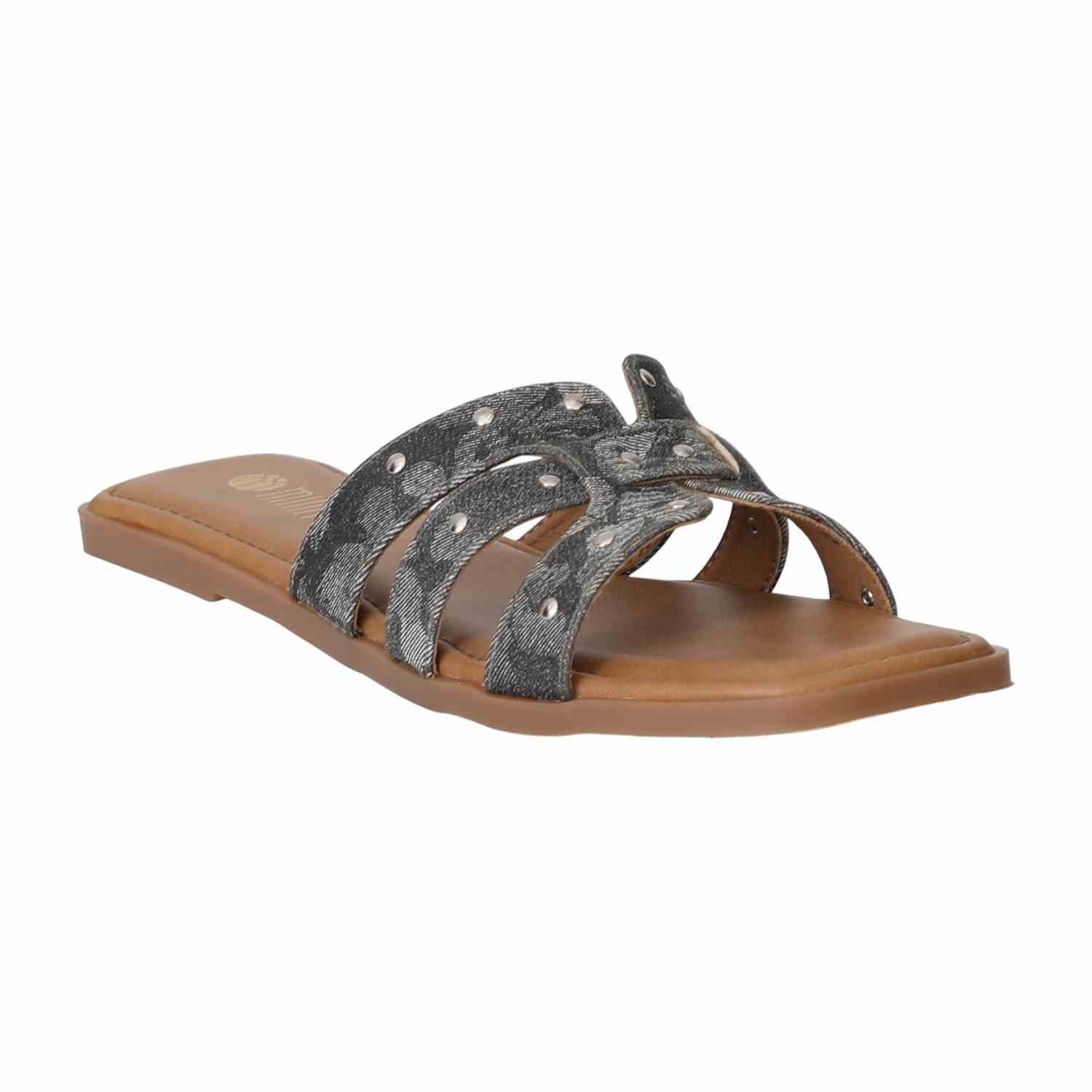 Sleek and versatile, these flats come with a bold black strap enhanced with stud detailing. Perfect for daily wear or casual outings, they balance comfort with a touch of modern edge.