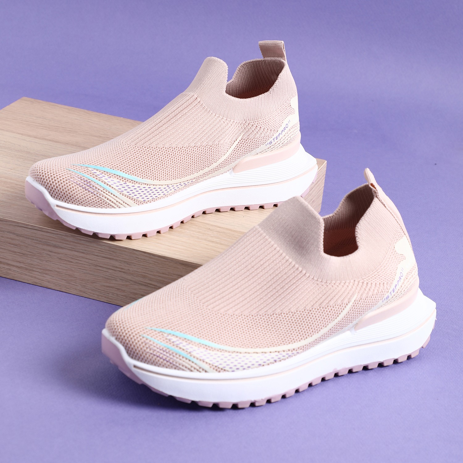 Experience a delightful fusion of comfort and color with our Soft Peach Stripe Slip-on. The airy knit upper in a gentle peach hue is beautifully complemented by refreshing light blue stripes, creating a subtle yet captivating design perfect for your casual adventures