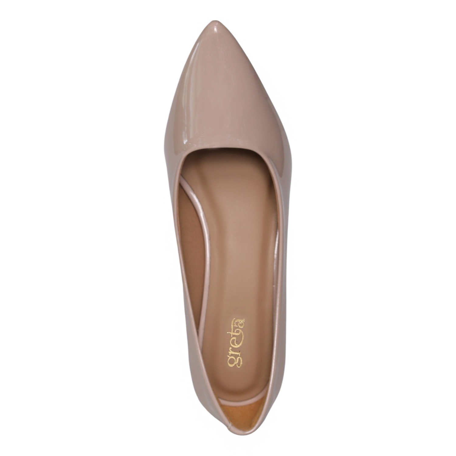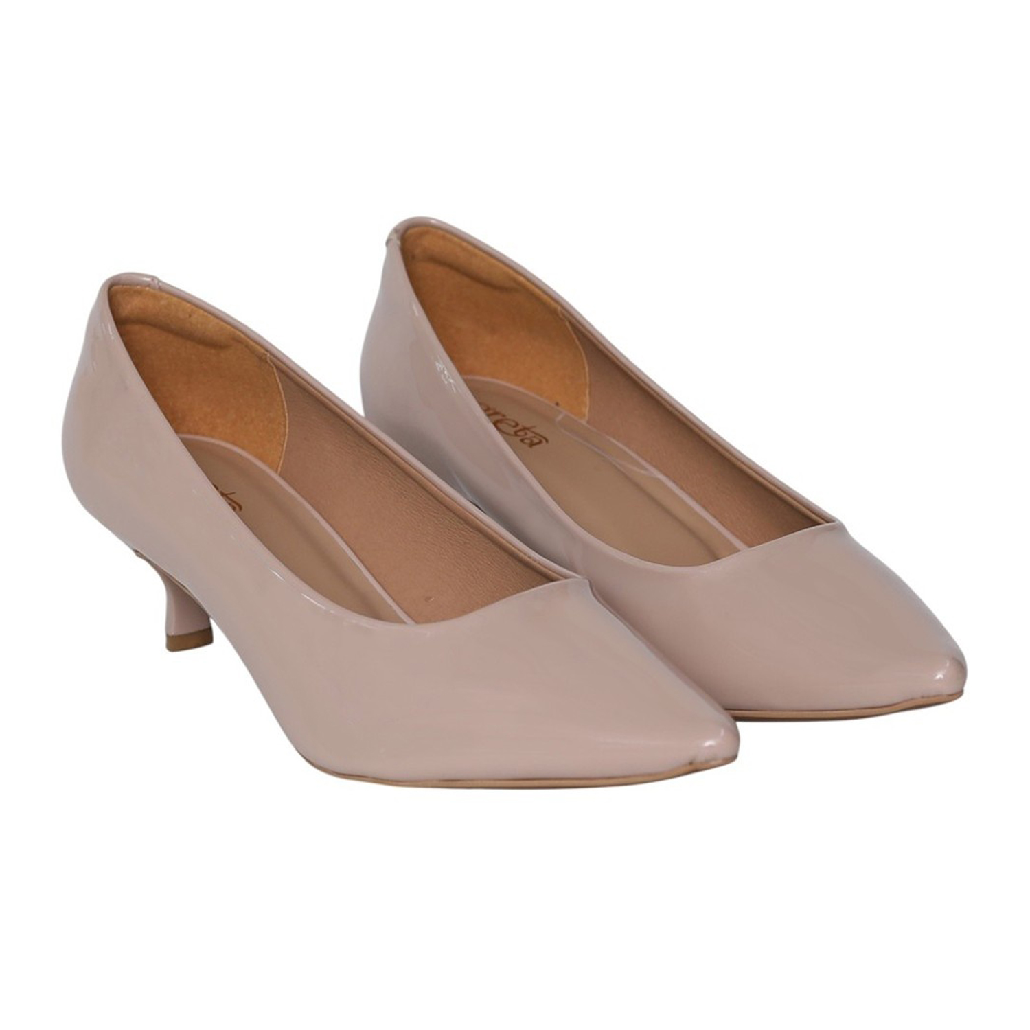 your everyday style with these sleek Nude pointed-toe pumps, designed for a perfect blend of elegance and comfort. Crafted with a glossy finish, these heels feature a refined silhouette that adds a sophisticated touch to both formal and semi-casual outfits. The low kitten heel provides subtle elevation while ensuring all-day comfort and stability. Ideal for office wear, evening outings, or special occasions, these versatile pumps are a timeless addition to your footwear collection.