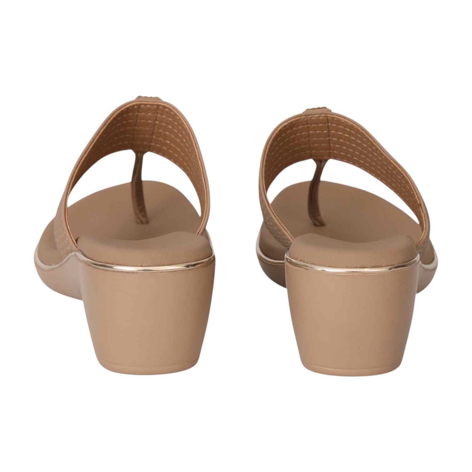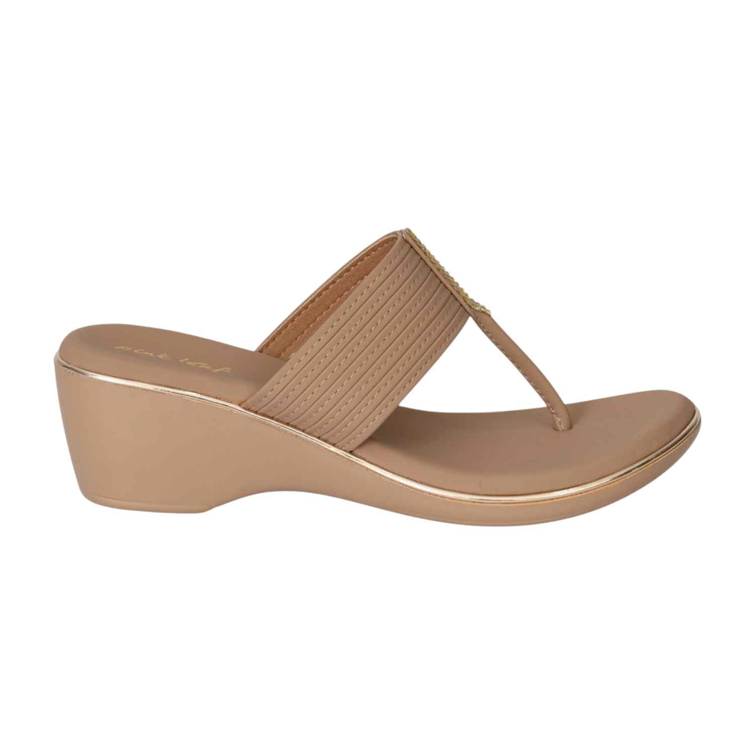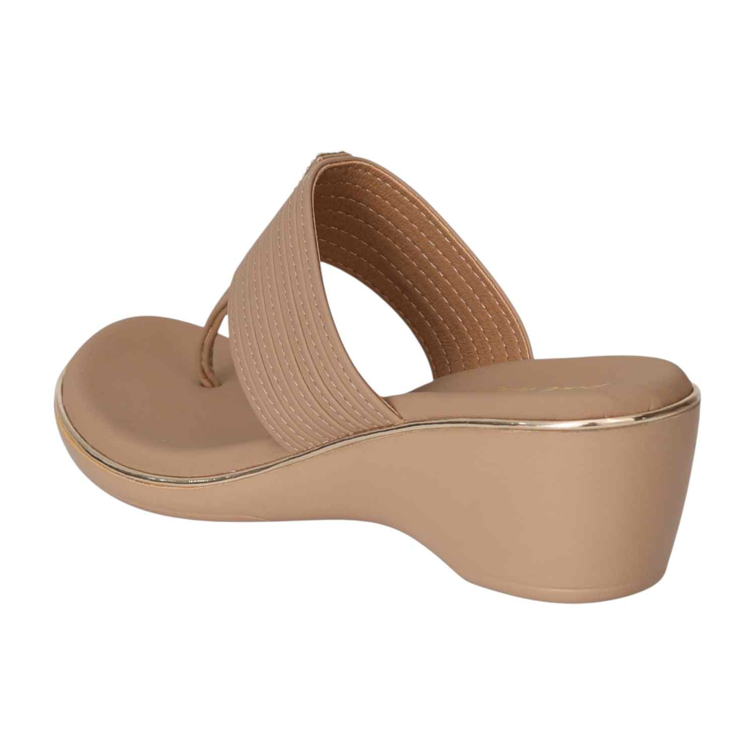 Step into effortless style and comfort with these Nude Wedge Toe-Ring Sandals. Featuring a wide strap with subtle stitched detailing and a touch of gold embellishment, these sandals offer a chic look paired with a comfortable wedge heel. The cushioned footbed ensures all-day support, making them perfect for casual outings or dressier occasions.