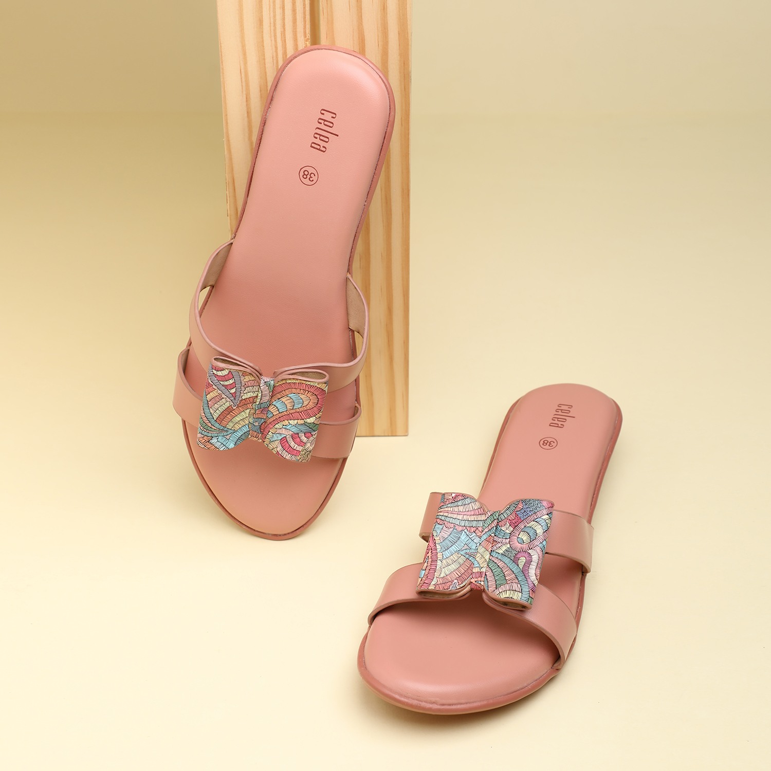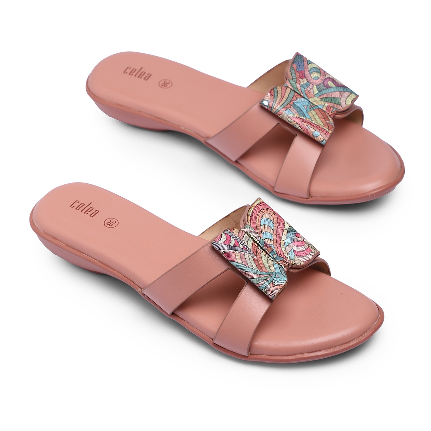 Home / Products / Celea / Women Peach Multi Color Flat Sandals
