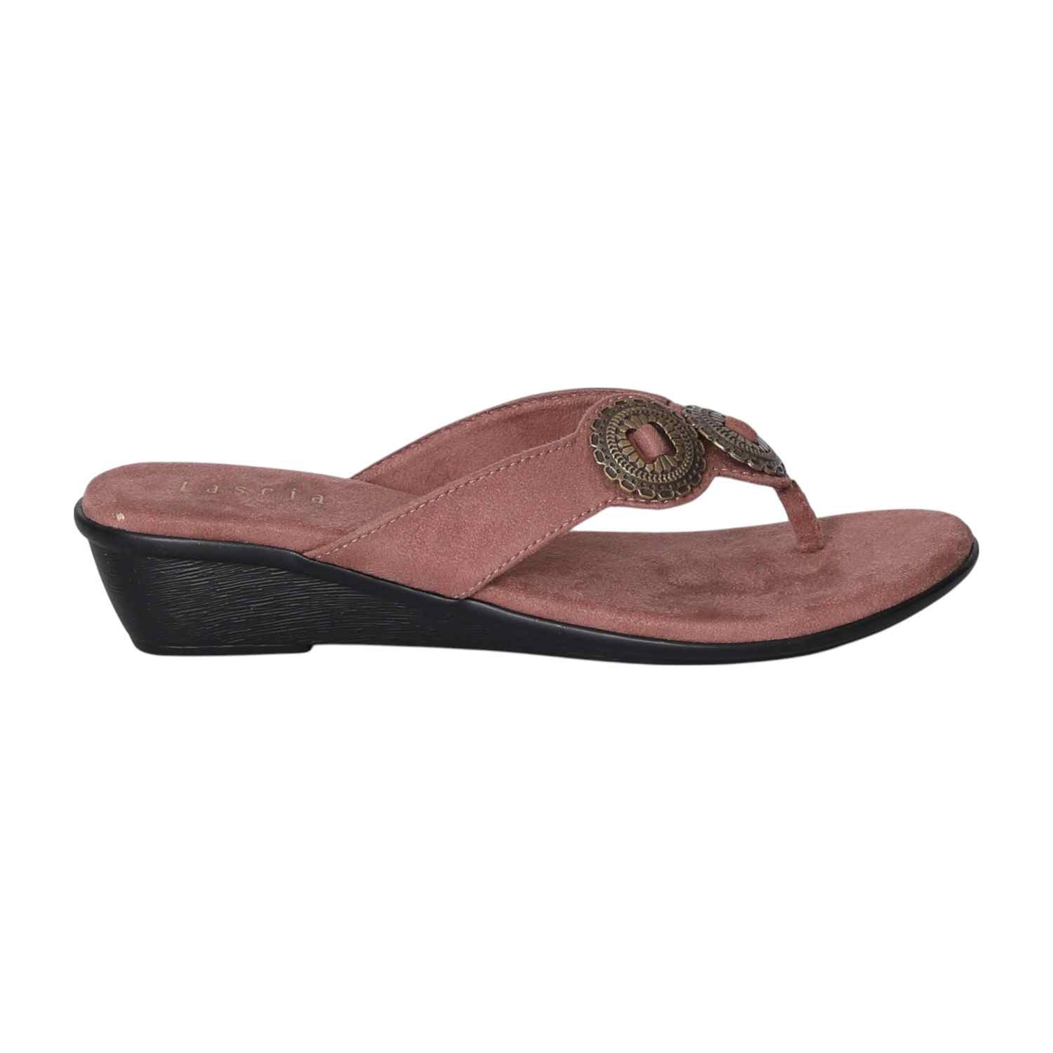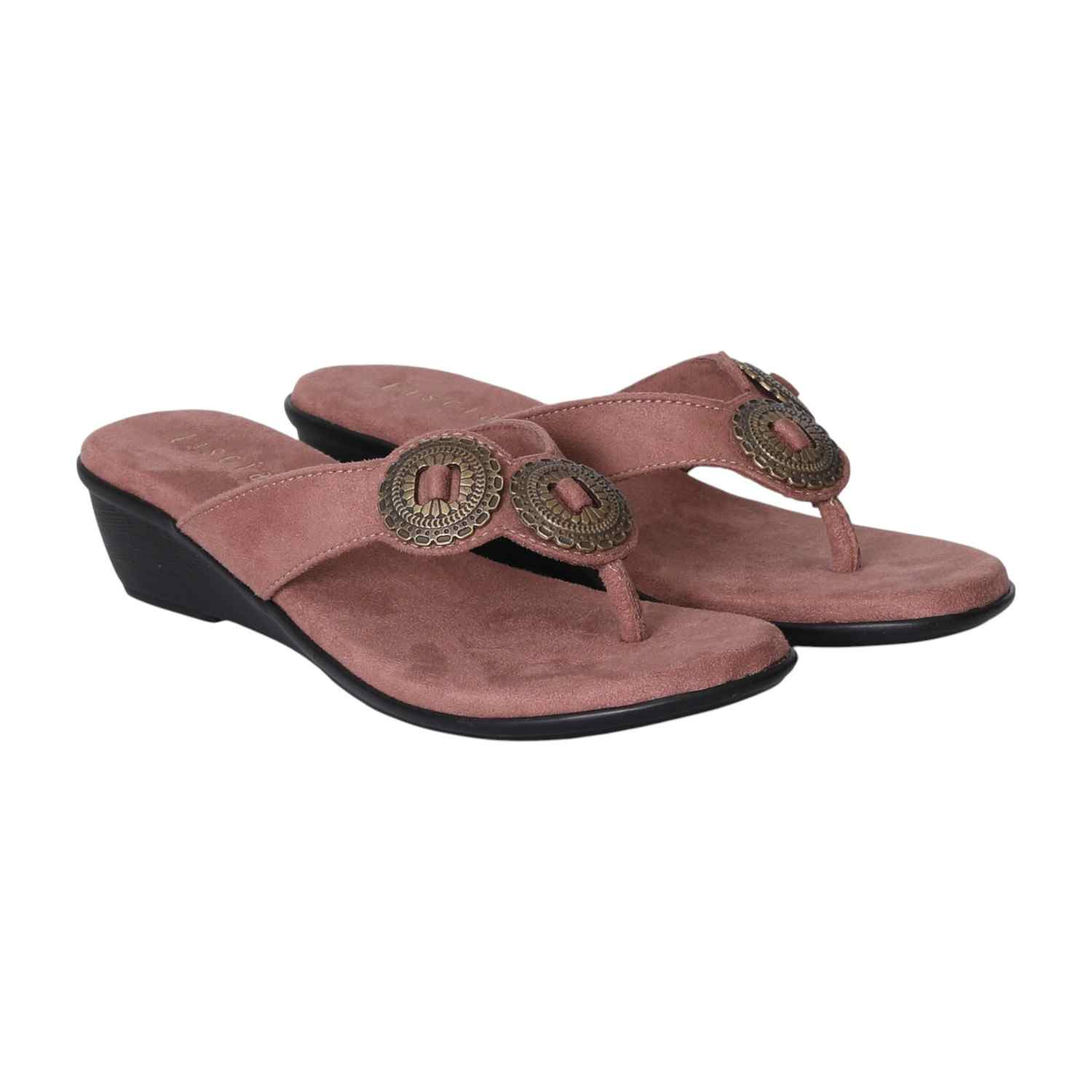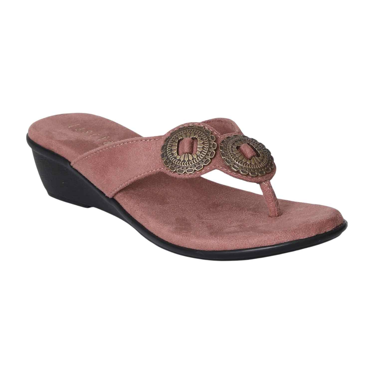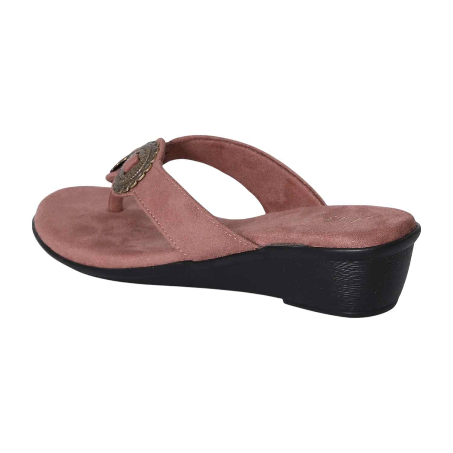 Elegant charm meets everyday comfort in the Peach Metallic Embellished Thong Wedges. Crafted in a rich pink hue with antique bronze embellishments, these wedges blend traditional detail with modern comfort. The soft cushioned footbed and stable wedge heel make them ideal for all-day wear, whether you're dressing up for a festive occasion or styling a casual ethnic look.