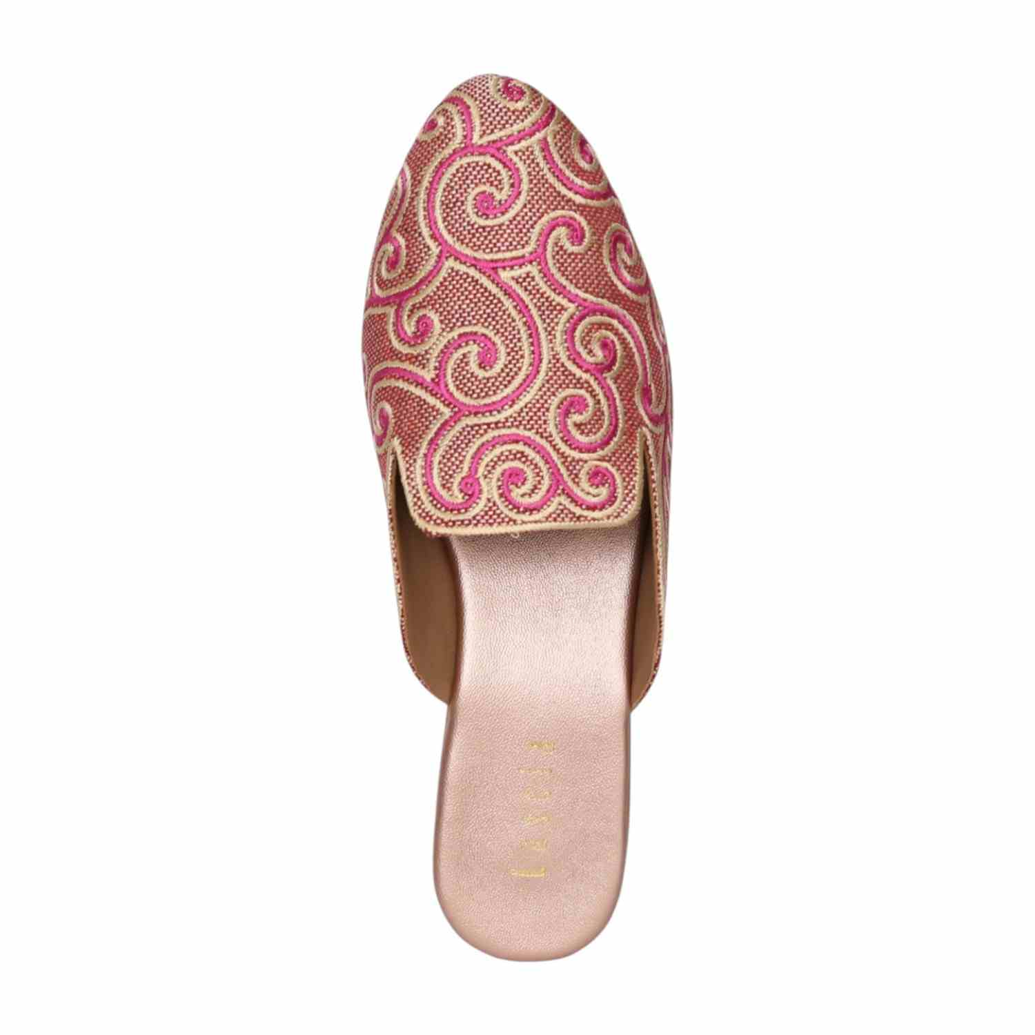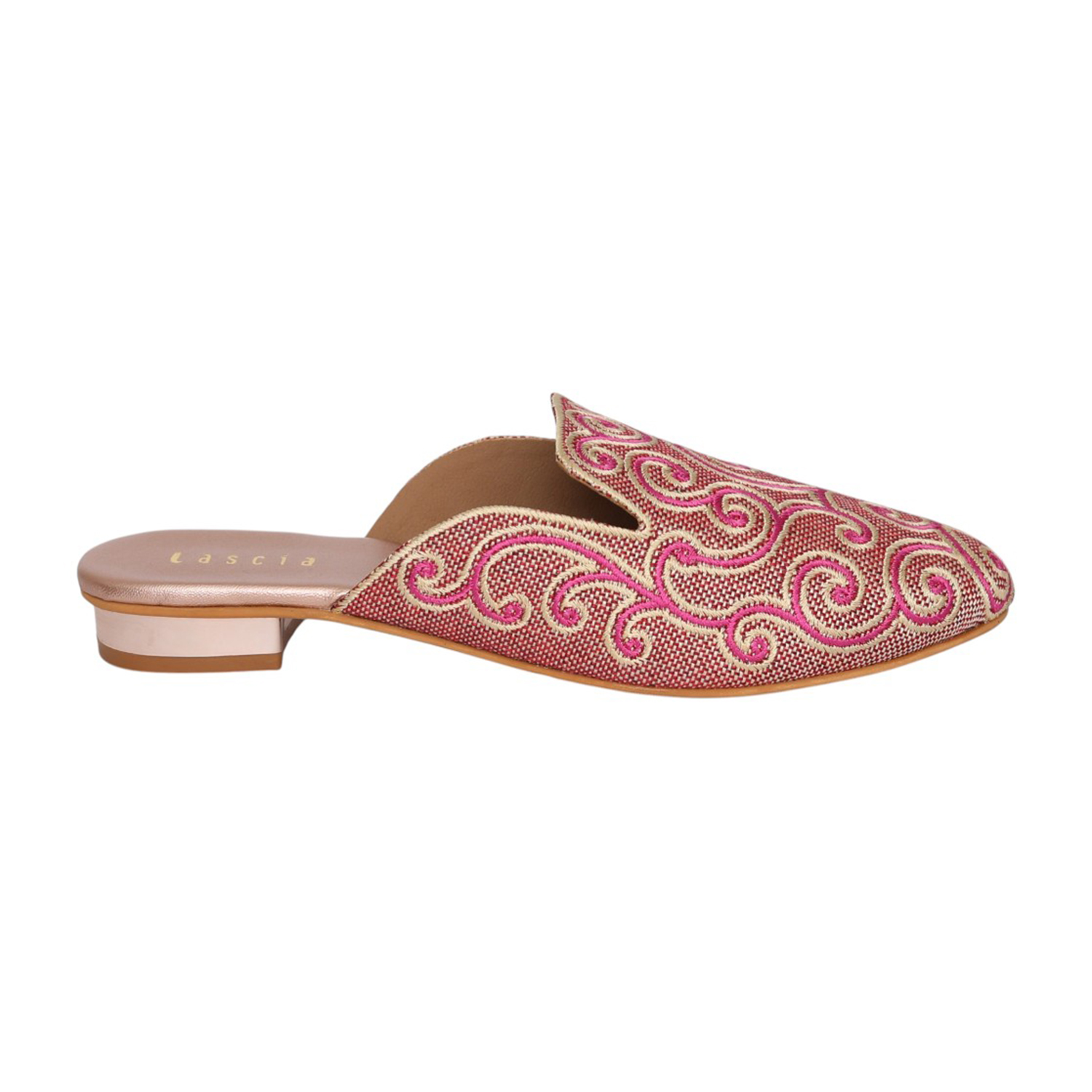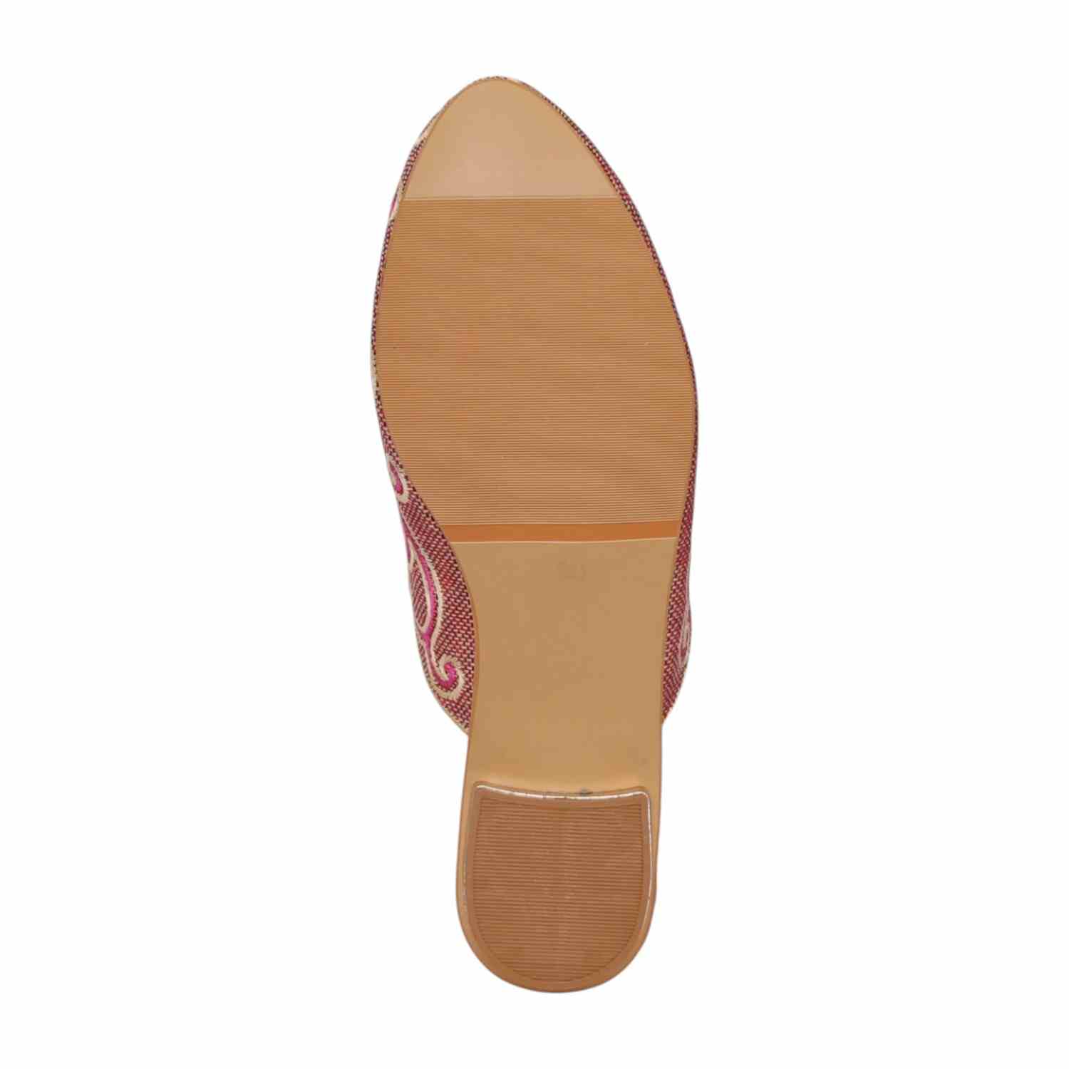 These elegant Metro mules are a sophisticated blend of traditional craftsmanship and modern design. They feature a beige synthetic upper intricately detailed with pink and light gold swirl embroidery, making them an ideal choice for ethnic and festive occasions. The slip-on design is complemented by a small, metallic-accented block heel that provides a subtle lift while maintaining comfort for extended wear.