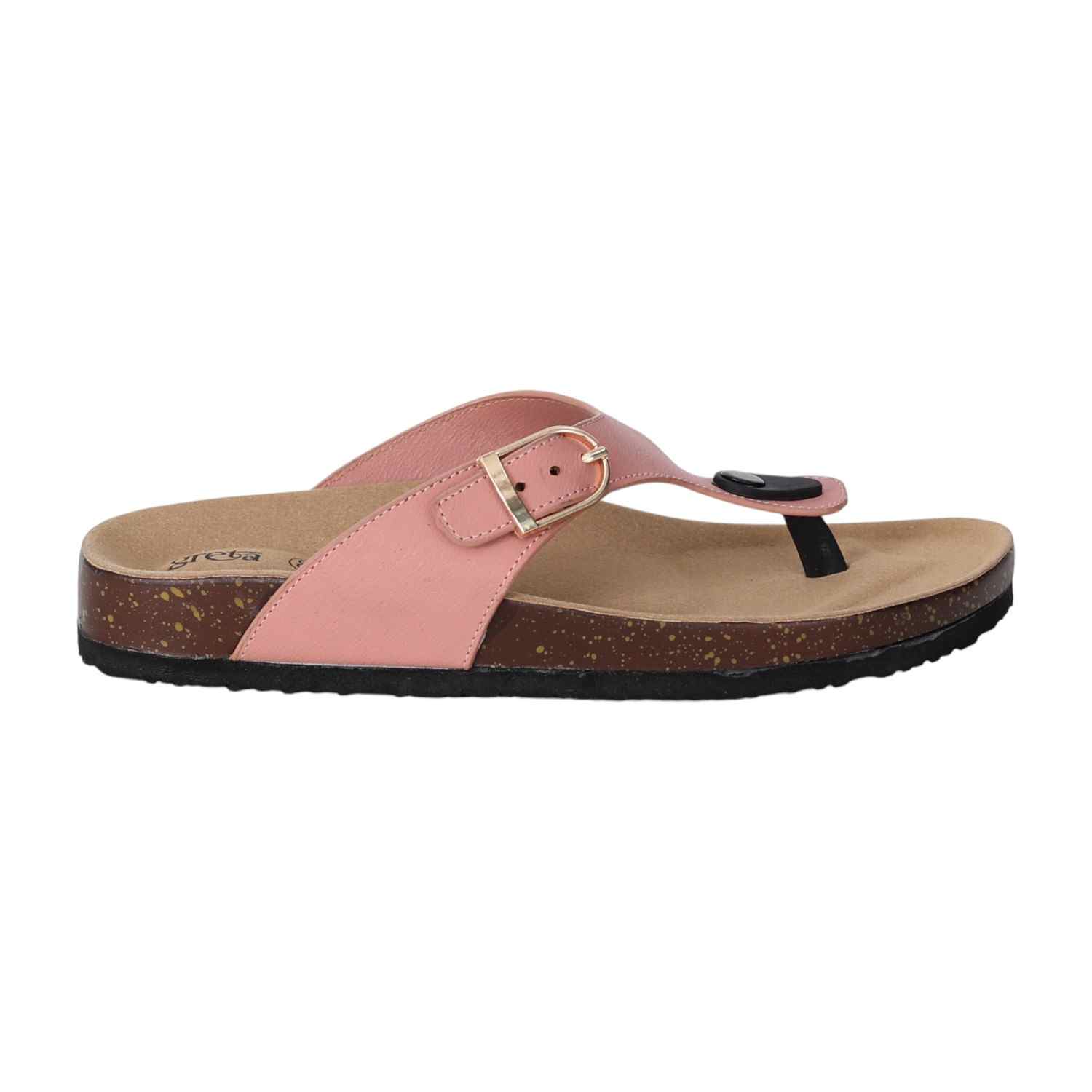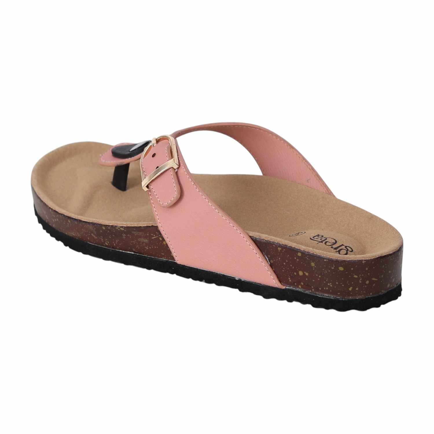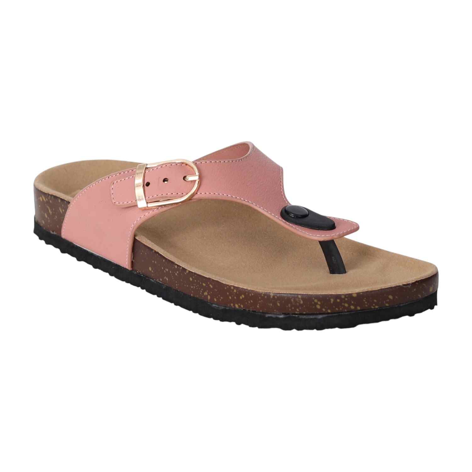Experience relaxed style and exceptional comfort with these women cork footbed sandals. Designed with a supportive contoured footbed and a durable synthetic upper, these slip-ons feature an adjustable buckle strap for a secure fit. The thong-style design offers a breathable and laid-back feel, making them perfect for daily wear, travel, or weekend outings. A textured outsole ensures grip and stability on various surfaces.