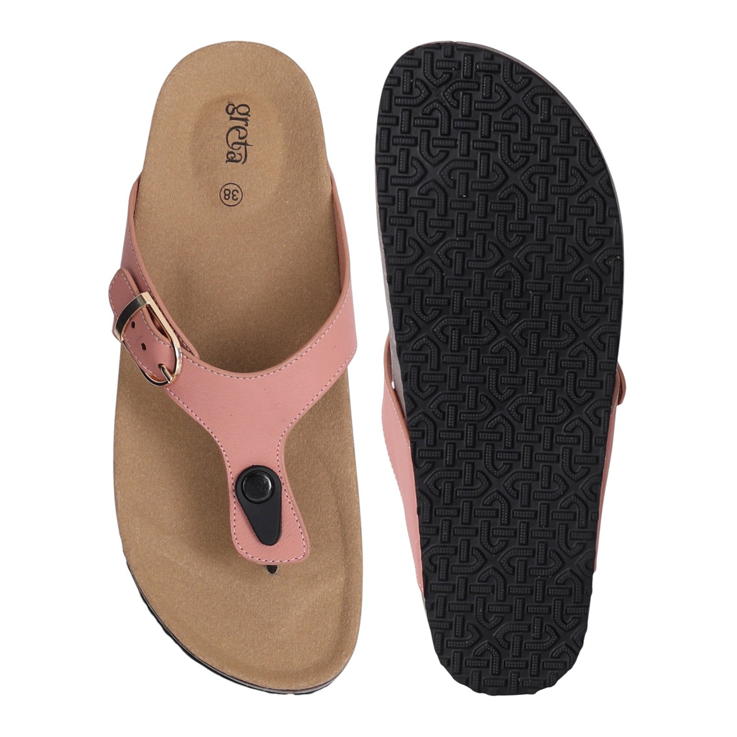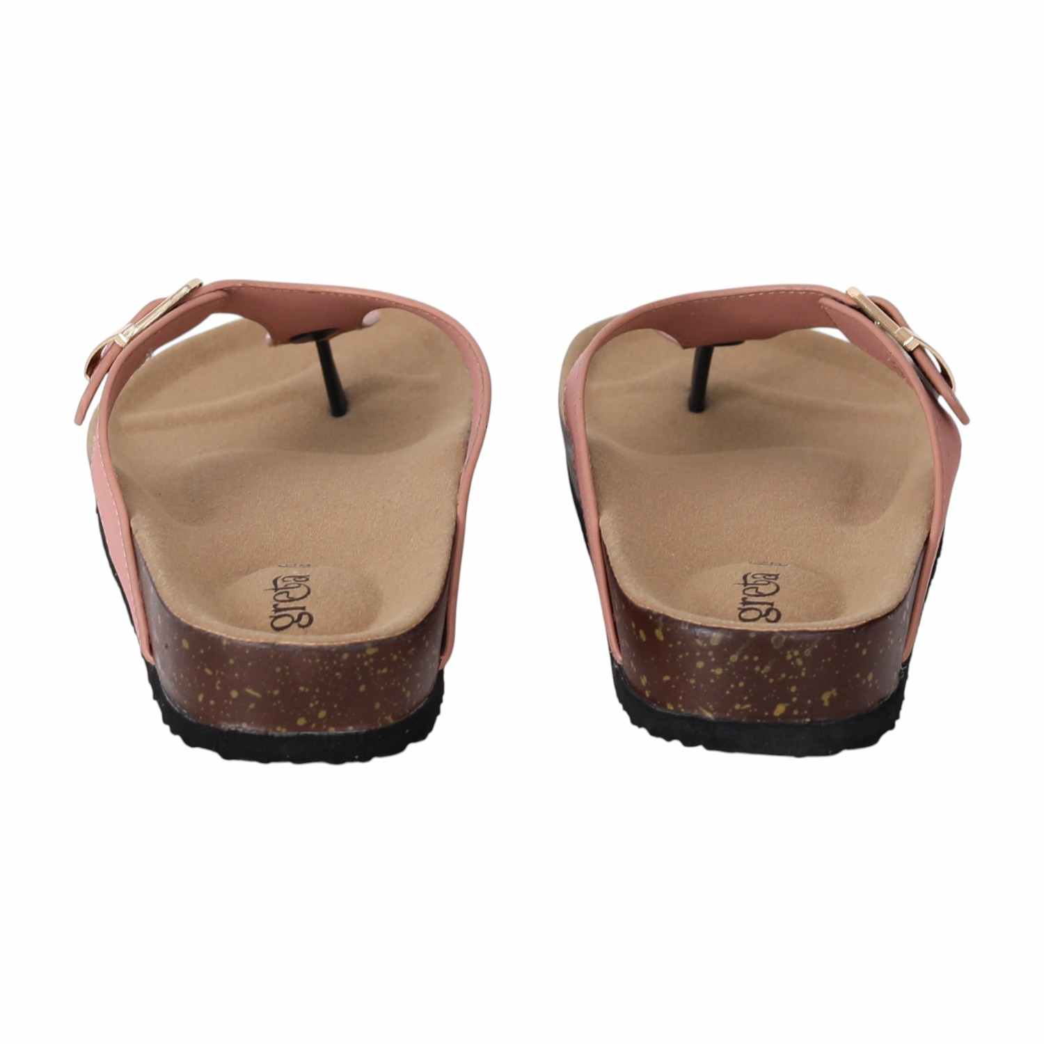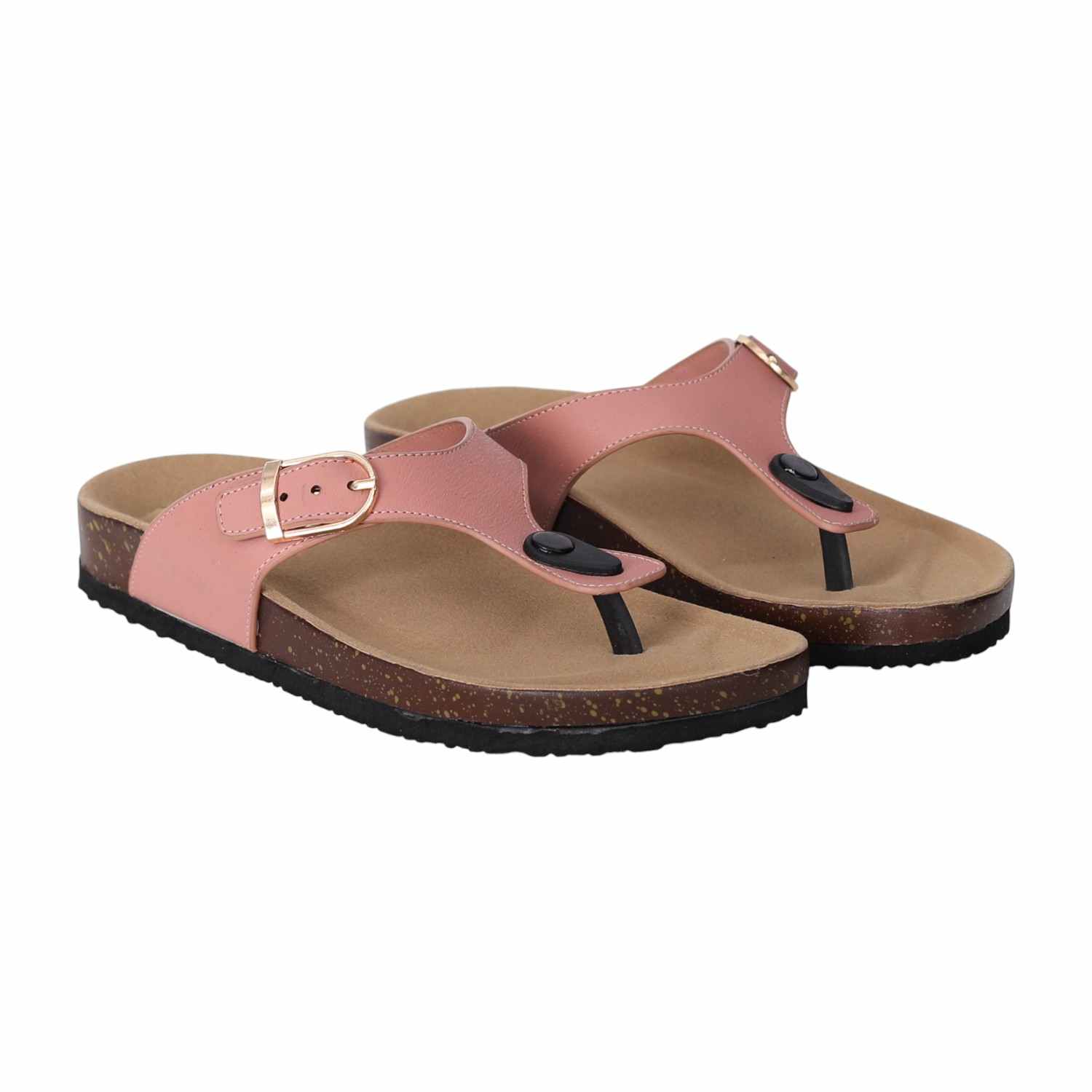 Experience relaxed style and exceptional comfort with these women cork footbed sandals. Designed with a supportive contoured footbed and a durable synthetic upper, these slip-ons feature an adjustable buckle strap for a secure fit. The thong-style design offers a breathable and laid-back feel, making them perfect for daily wear, travel, or weekend outings. A textured outsole ensures grip and stability on various surfaces.