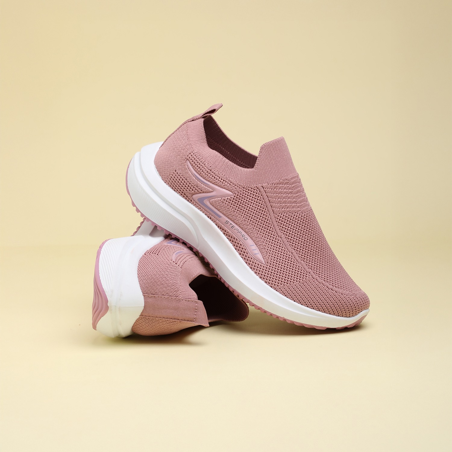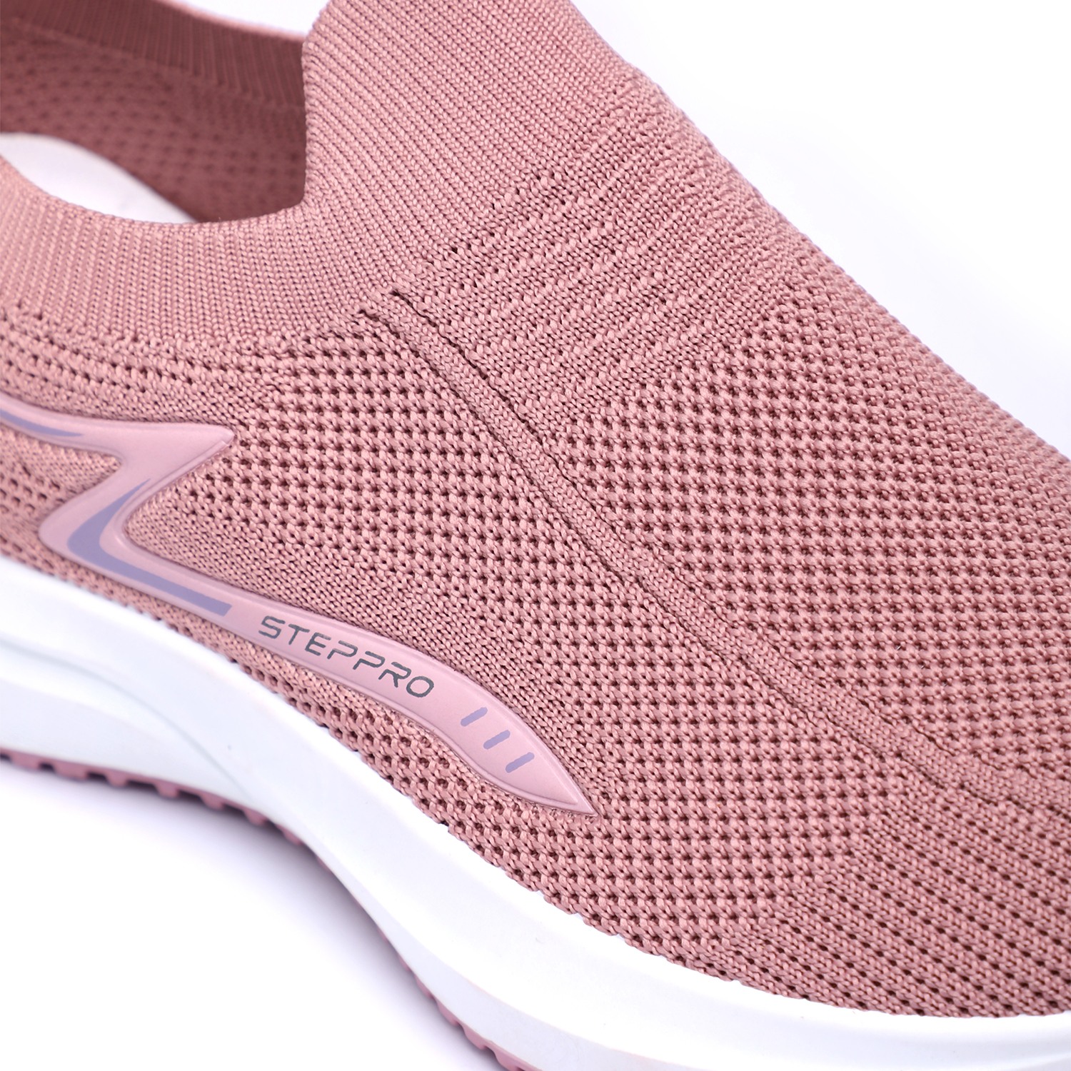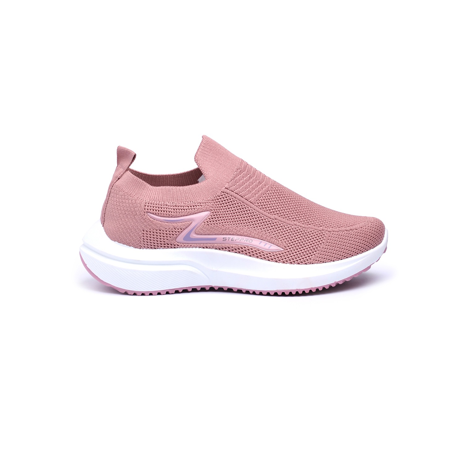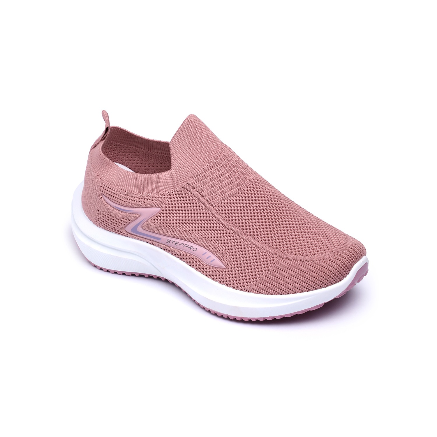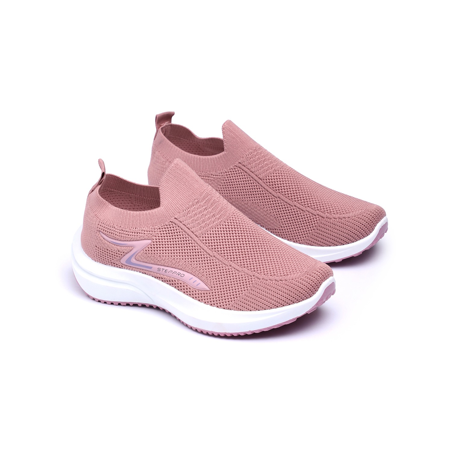 Glide through your day in plush comfort with our Dusty Pink Cushion Walkers. These women's slip-on sneakers feature a soft, breathable knit upper in a delicate dusty pink hue, enhanced with a subtle zigzag pattern for added texture. The chunky white sole is engineered for superior cushioning, providing a soft landing with every step, and finished with a matching pink outsole for a cohesive look. Complete with 'STEPPRO' branding, these walkers blend modern style with exceptional comfort, perfect for leisurely strolls or active daily routines