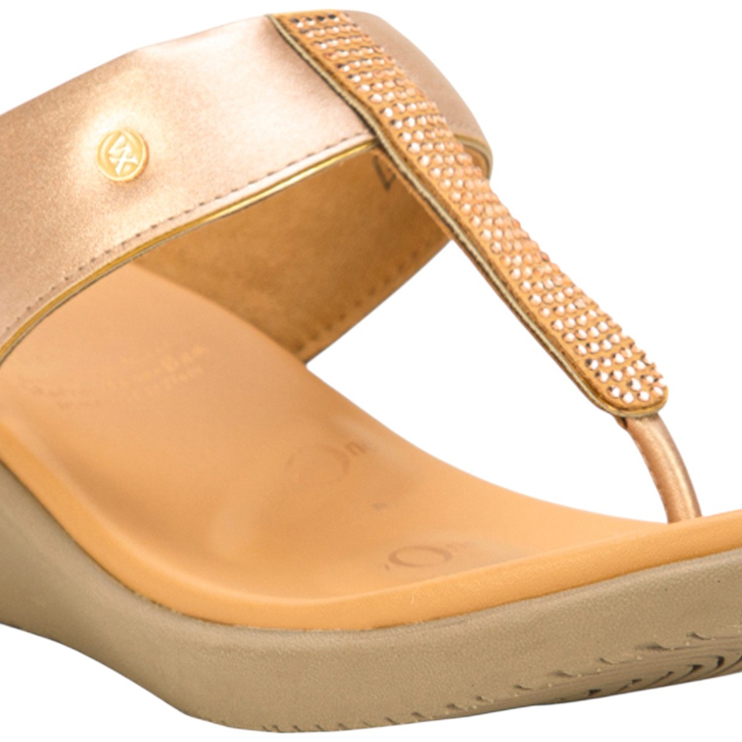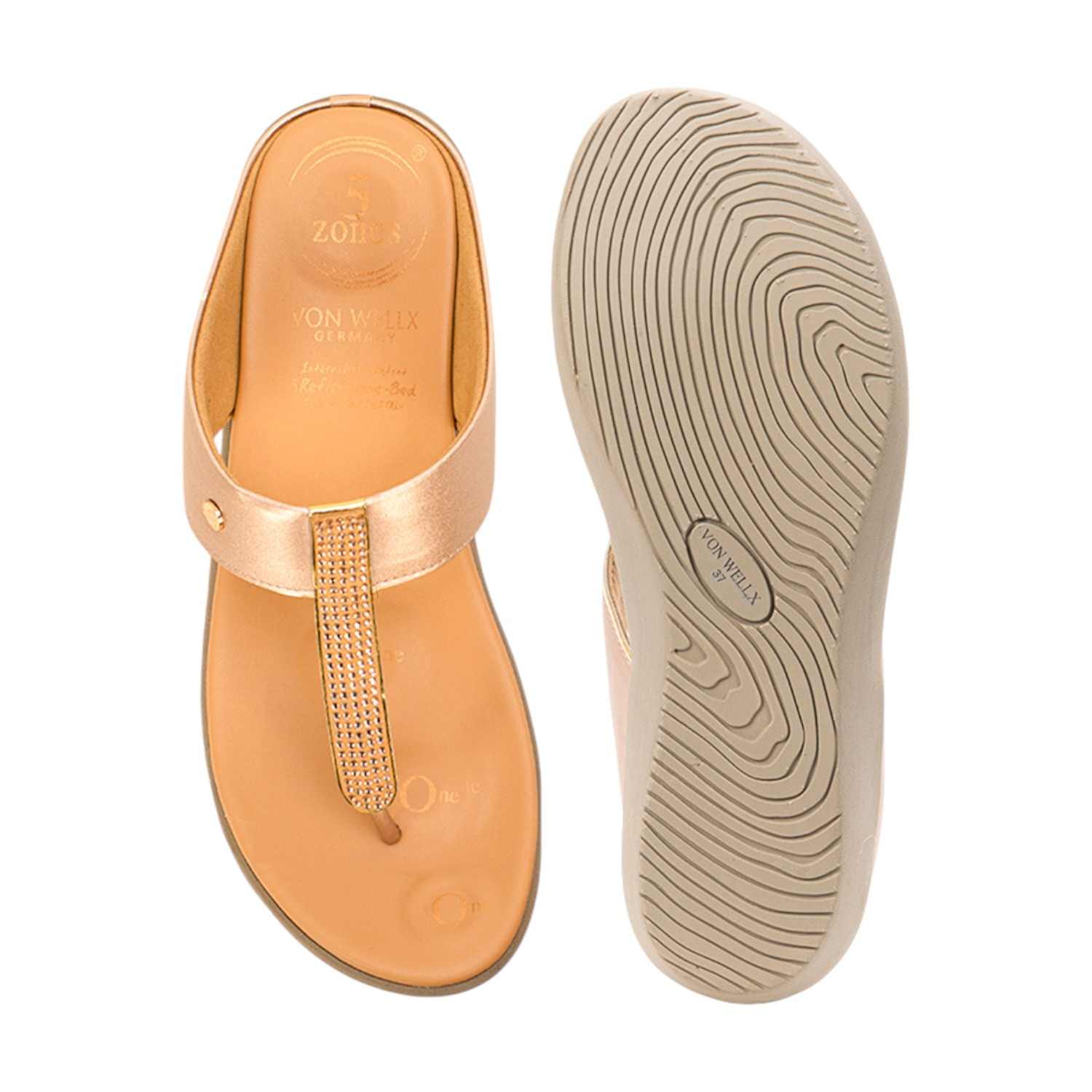 Home / Products / VON WELLX / Women Rose Gold / Gold Embellished Wedge Thong Sandals