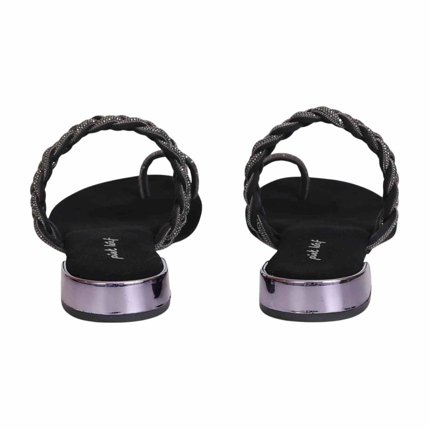 Step into understated elegance with these black flats from Centro, designed for the modern woman who loves effortless glam. Featuring a shimmering braided strap and a sleek metallic toe ring, these sandals balance sophistication and edge. The flat sole and cushioned footbed ensure all-day comfort, while the glossy heel accent adds a refined finish. Perfect for festive evenings, casual chic outfits, or elevated everyday looks.