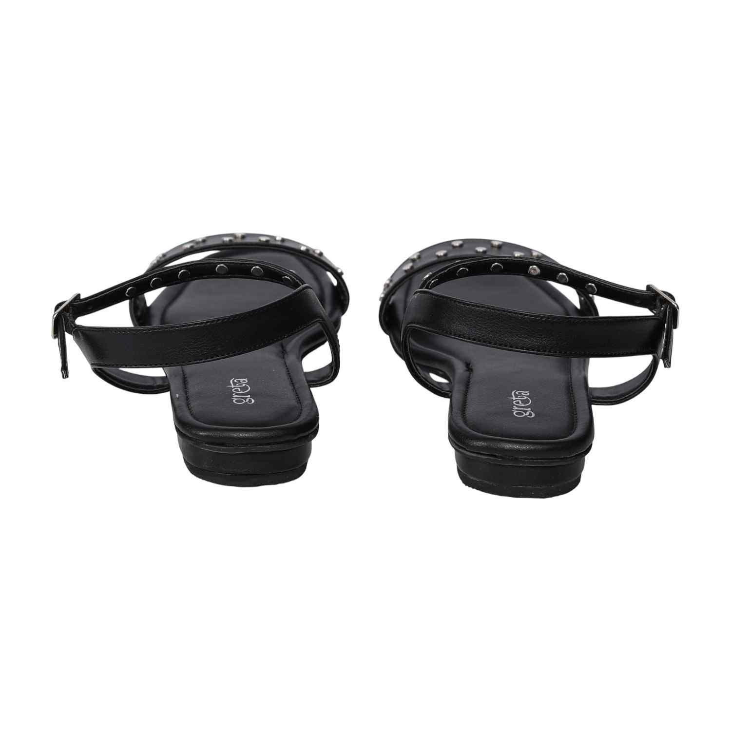 Make a bold statement with these studded ankle strap sandals, featuring a wide strap adorned with metallic studs and an adjustable ankle strap with a buckle. Perfect for casual or semi-formal outings, the flat sole and comfortable fit offer a trendy yet practical choice.