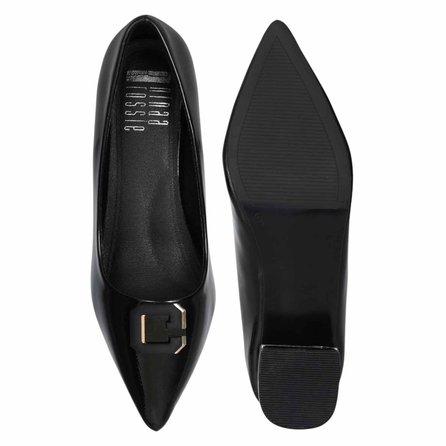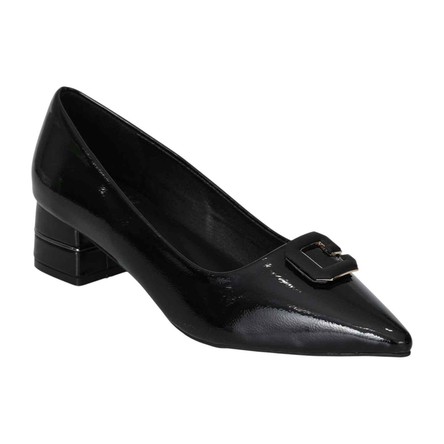 Refined and commanding, these black patent pumps are the ultimate blend of elegance and edge. Featuring a pointed toe and a sturdy low block heel, they offer just the right amount of lift while keeping you grounded in comfort. The glossy finish adds a polished touch, making them perfect for both professional and evening wear.