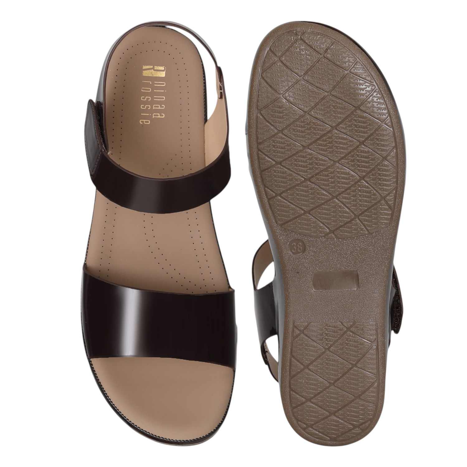 Add a sleek finish to your everyday style with these brown glossy strap sandals from CENTRO. Designed with a modern patent finish and a secure ankle strap, this pair offers both style and support. The cushioned footbed ensures all-day comfort, making it a perfect choice for work, casual outings, or evening wear.