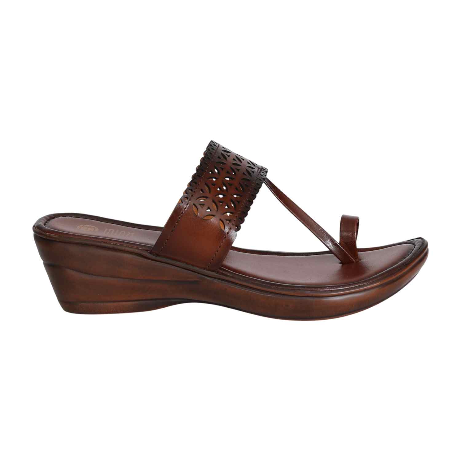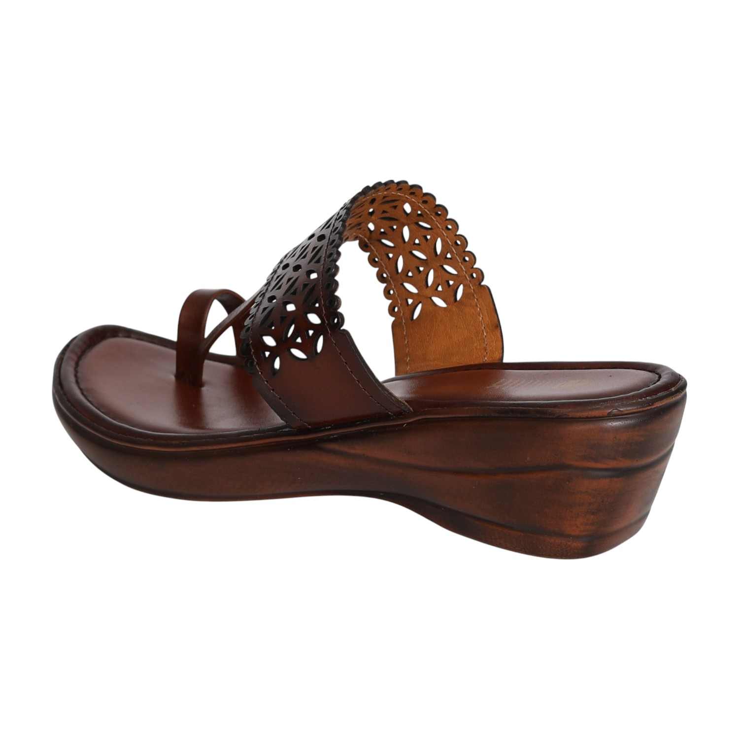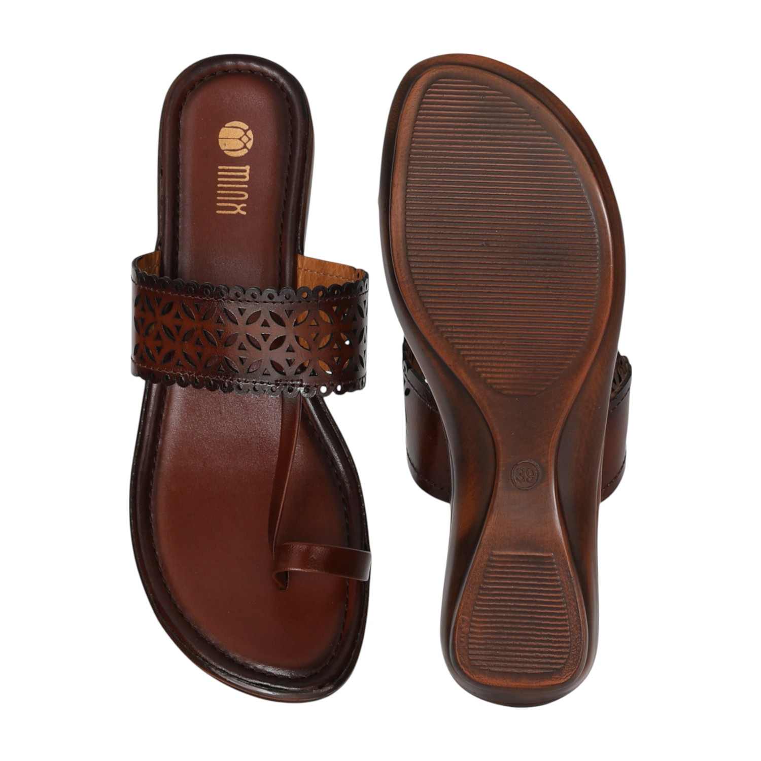 Step into elegance with these brown wedge sandals from CENTRO, designed with a beautiful laser-cut upper and sleek toe loop styling. The intricate scalloped detailing adds a touch of charm, while the cushioned footbed and mid wedge heel ensure lasting comfort. Perfect for pairing with ethnic wear or elevating your everyday looks.
