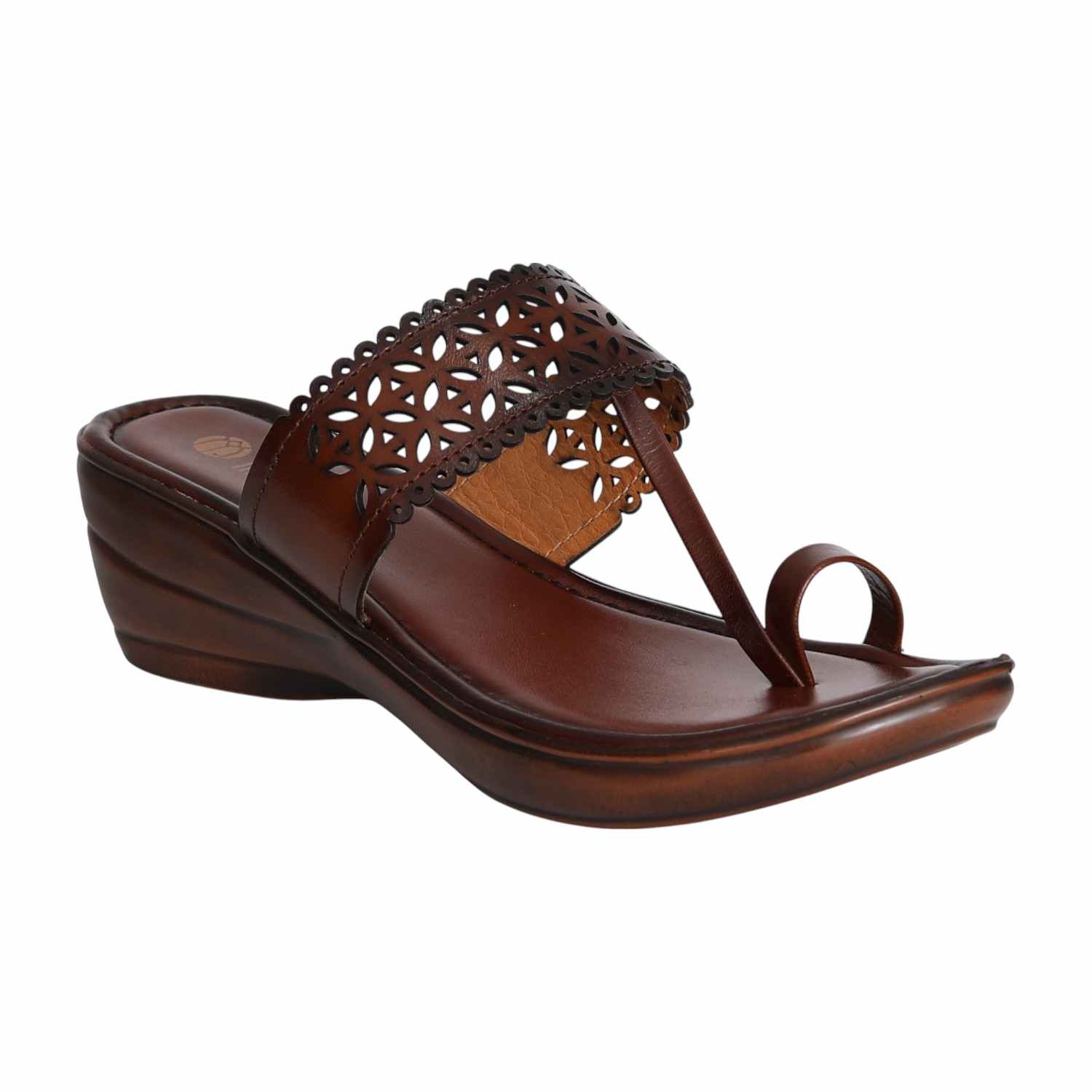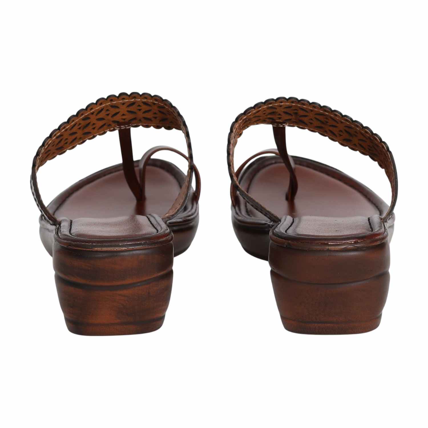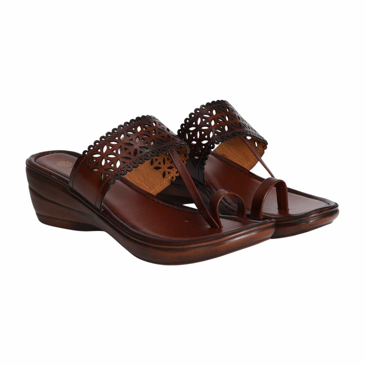 Step into elegance with these brown wedge sandals from CENTRO, designed with a beautiful laser-cut upper and sleek toe loop styling. The intricate scalloped detailing adds a touch of charm, while the cushioned footbed and mid wedge heel ensure lasting comfort. Perfect for pairing with ethnic wear or elevating your everyday looks.