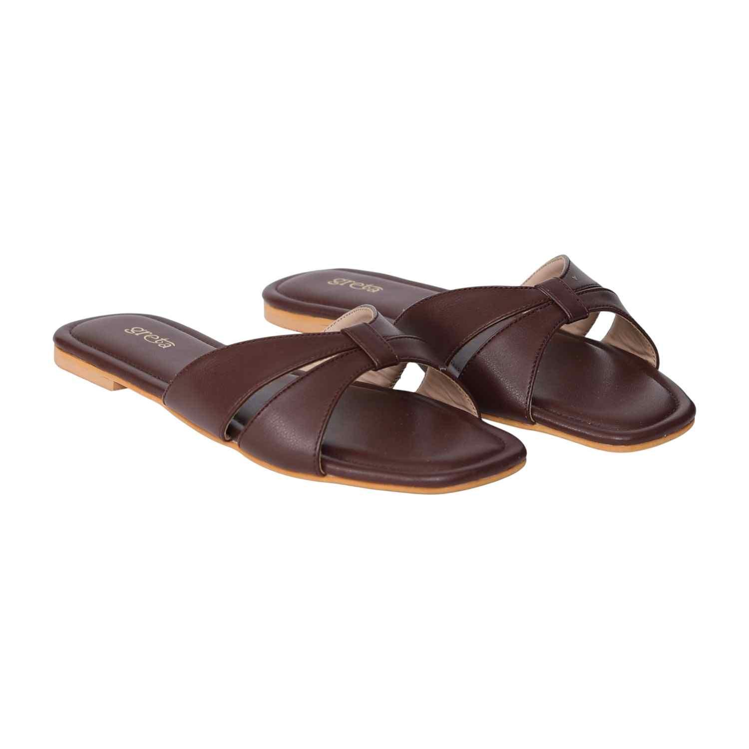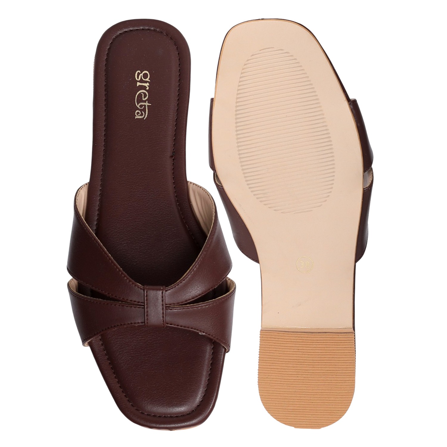 Home / Products / greta / Women's Brown Sleek Parallel Flats