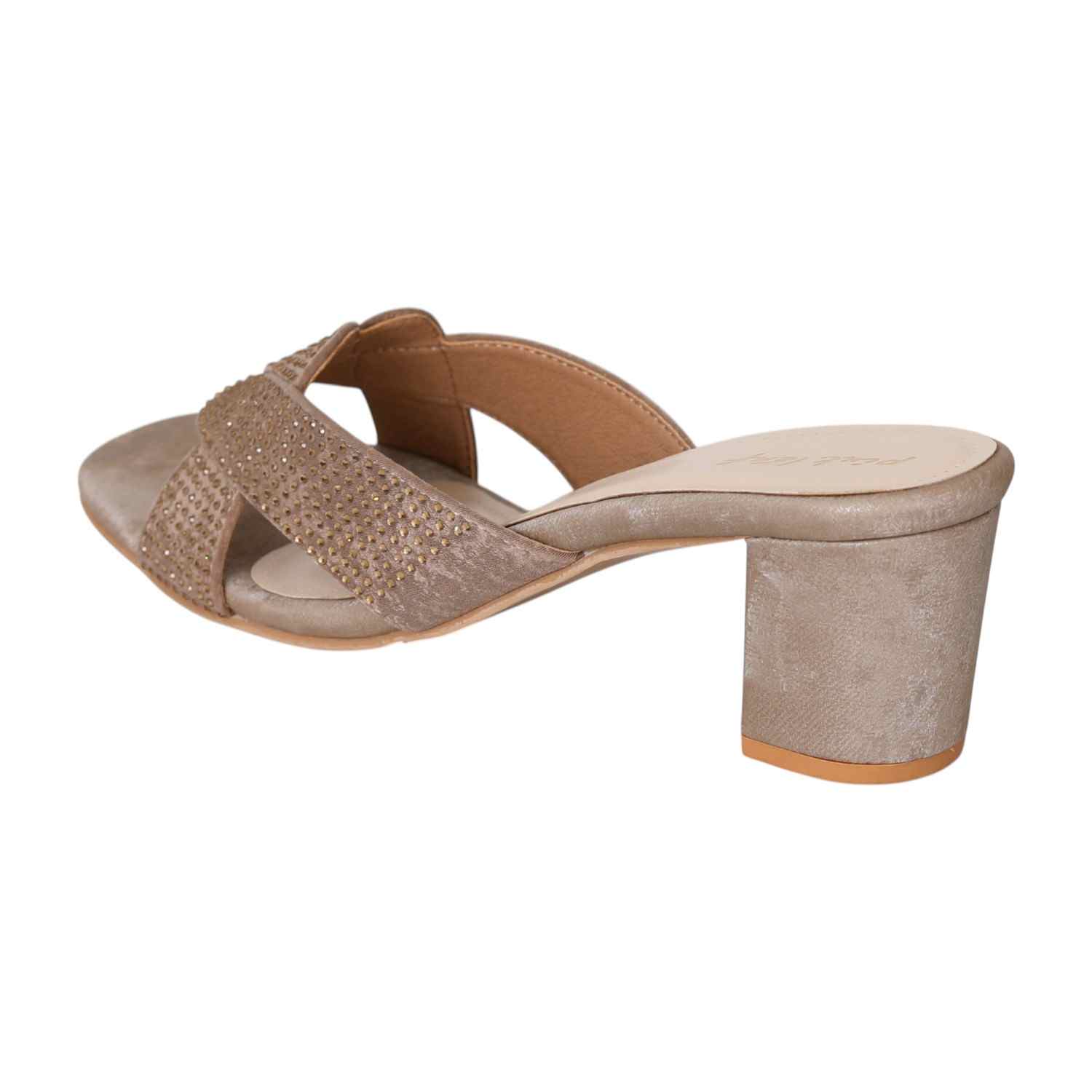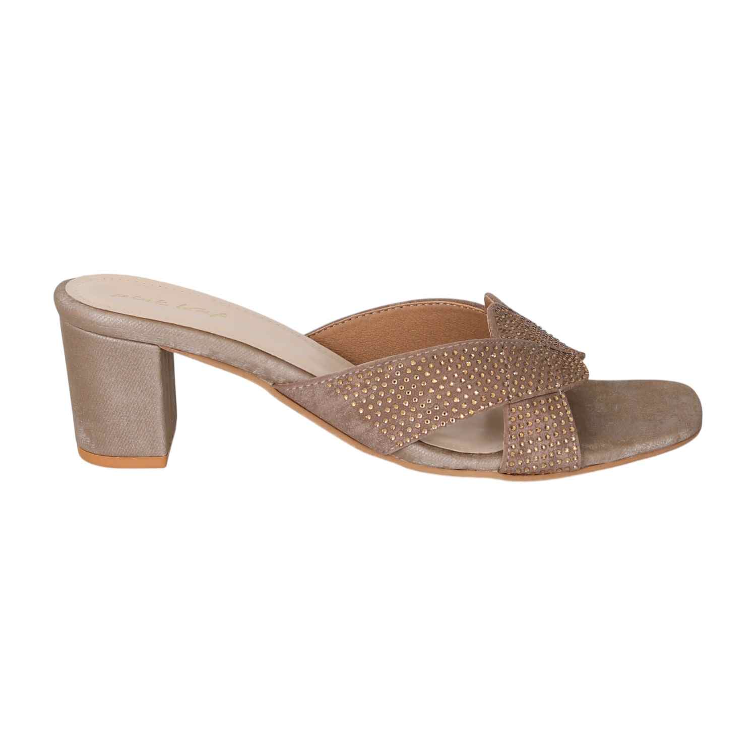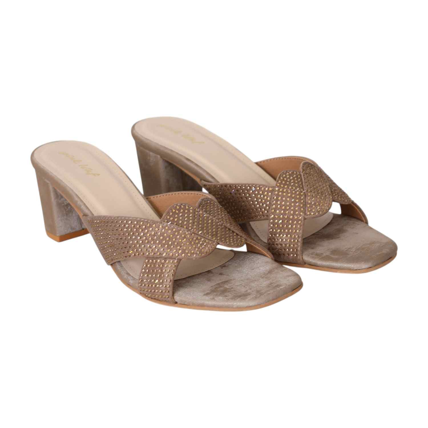 These chickoo-toned heels feature a braided shimmer strap that exudes understated elegance. Designed for comfort and style, they’re perfect for both festive events and casual sophistication.