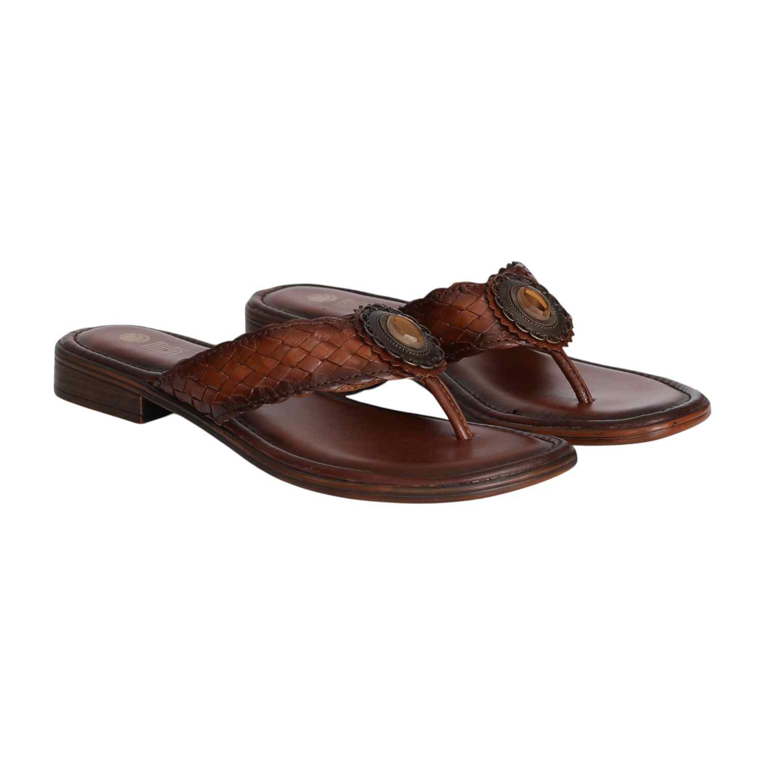 Embody effortless sophistication with these beautifully braided sandals in a warm chestnut tone. Featuring a low block heel and intricate antique-inspired detailing, they combine timeless style with comfortable support. Ideal for adding a refined touch to both casual and festive ensembles.