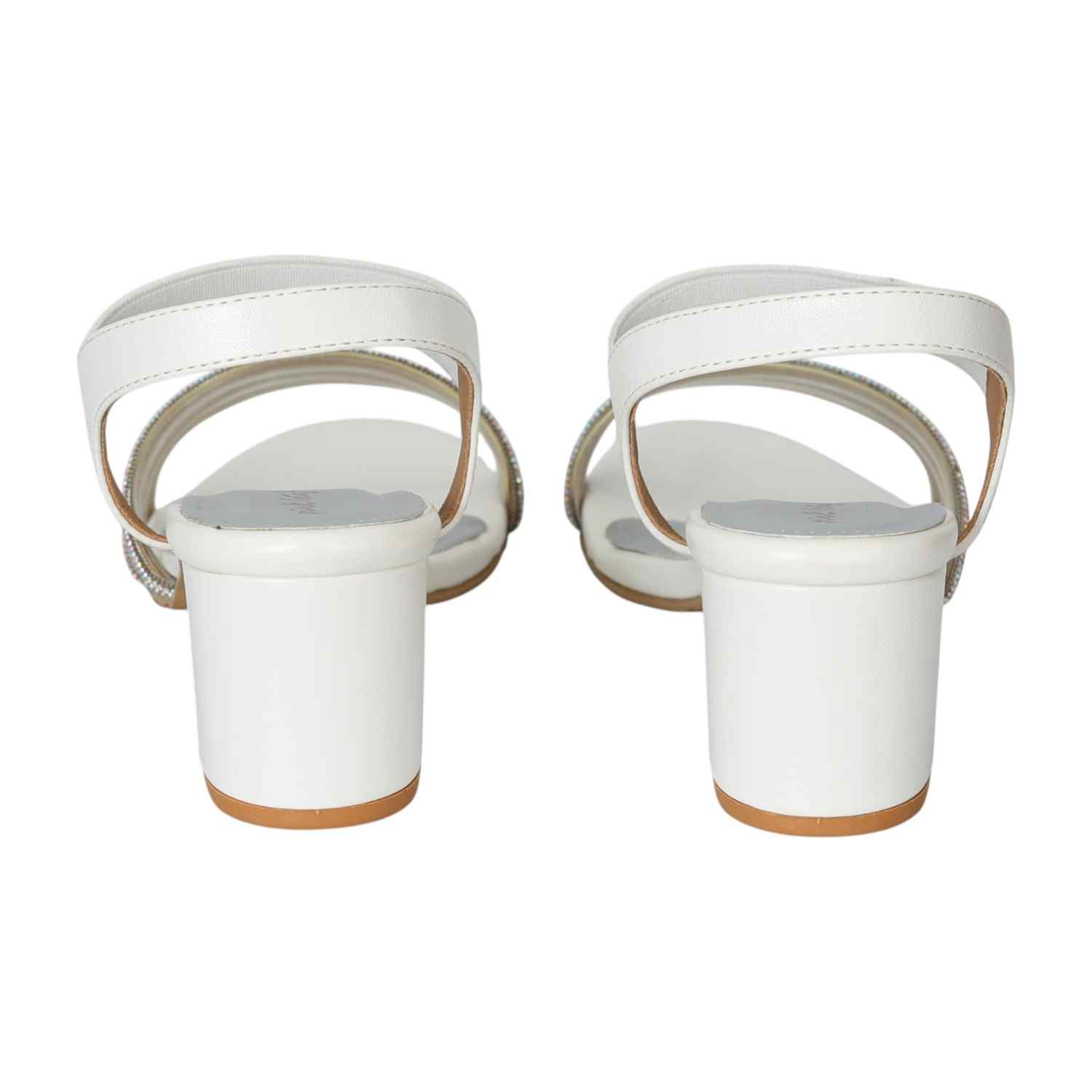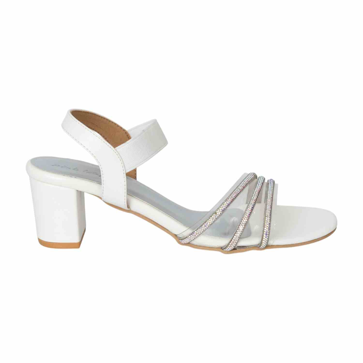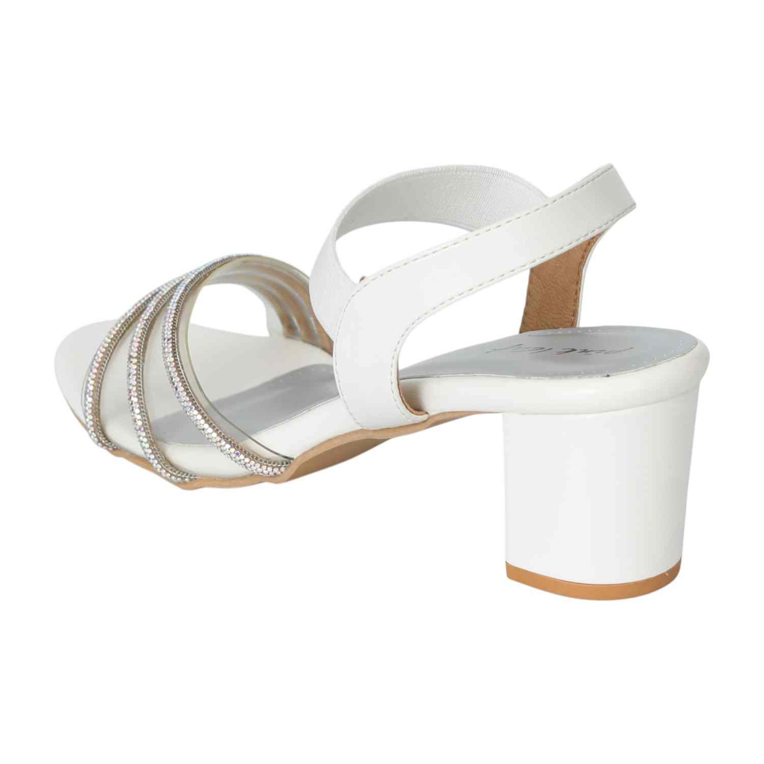 Add a refined sparkle to your look with these elegant white block heel sandals. Designed with shimmering multi-strap detailing across the front and a supportive elastic back strap, they offer both style and ease. The cushioned sole and stable block heel ensure all-day comfort, making them perfect for festive events, evening outings, or special celebrations.