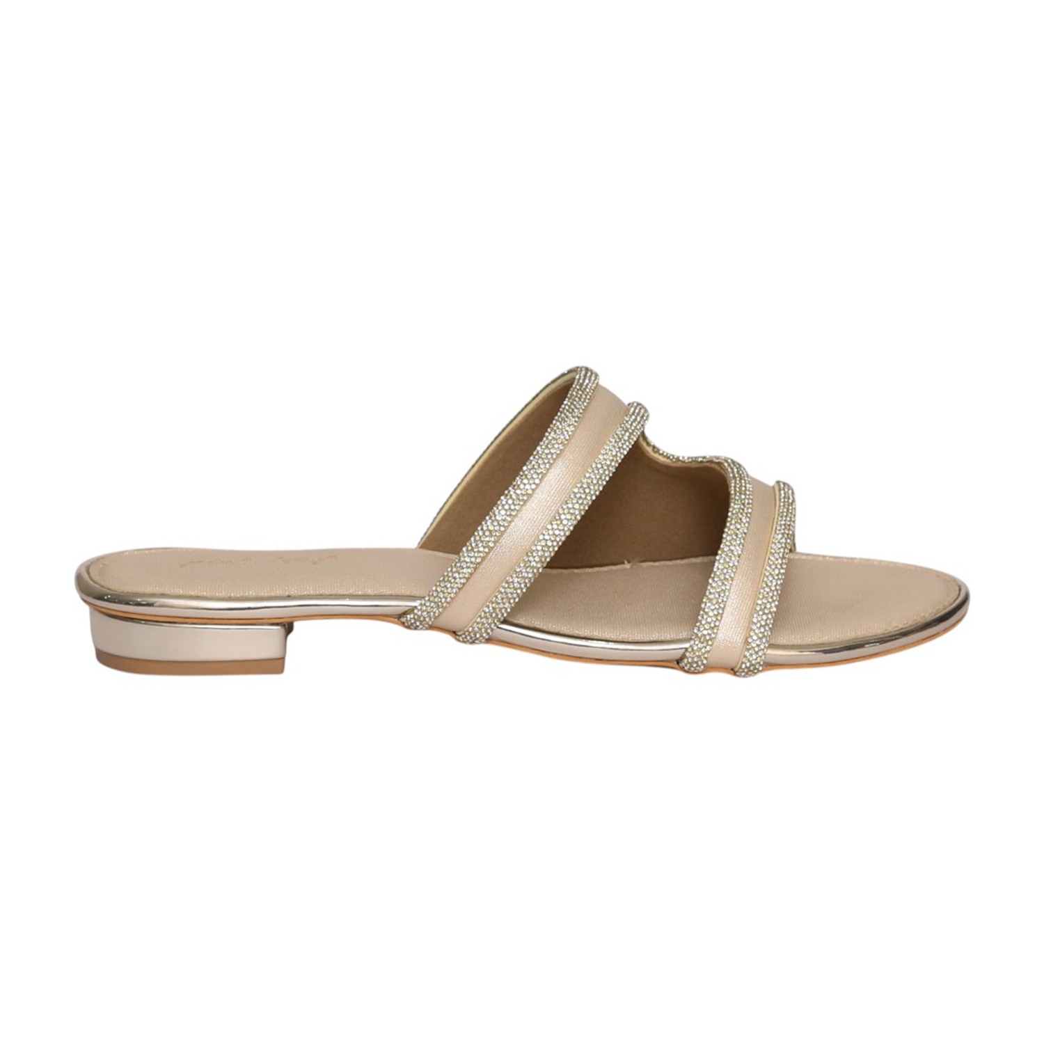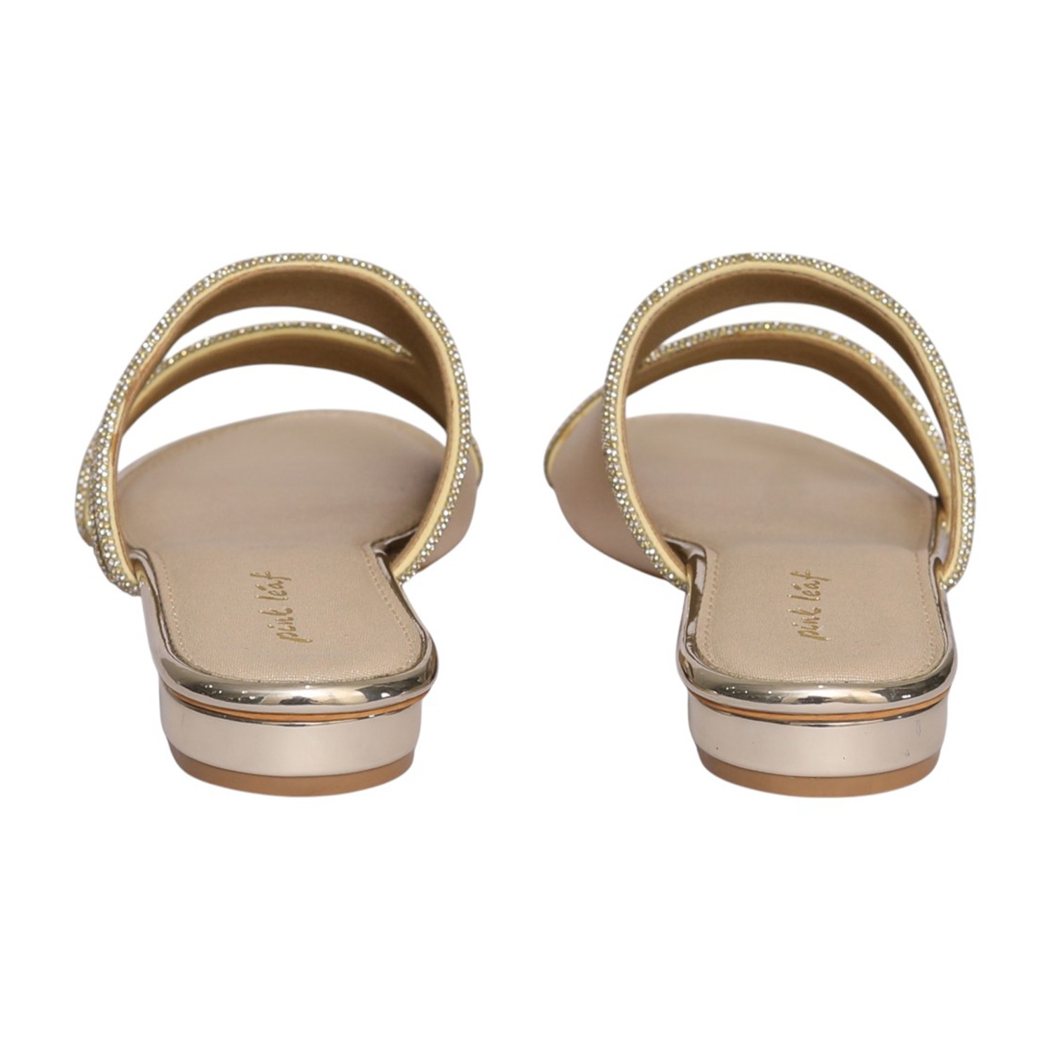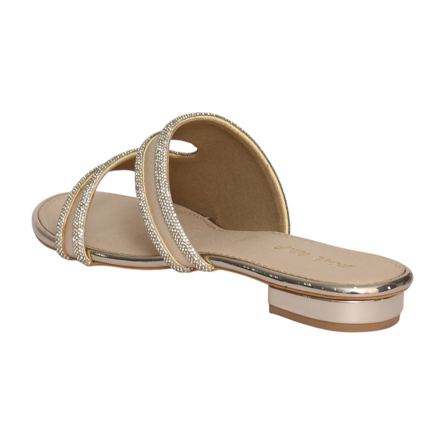 Elevate your everyday style with these elegant gold flat sandals, designed with multiple embellished straps for a chic and sophisticated look. The sleek open-toe silhouette combined with sparkling detailing adds a touch of glamour, making them perfect for both casual outings and festive occasions. With a comfortable footbed and easy slip-on design, these sandals offer the perfect blend of style and all-day comfort.