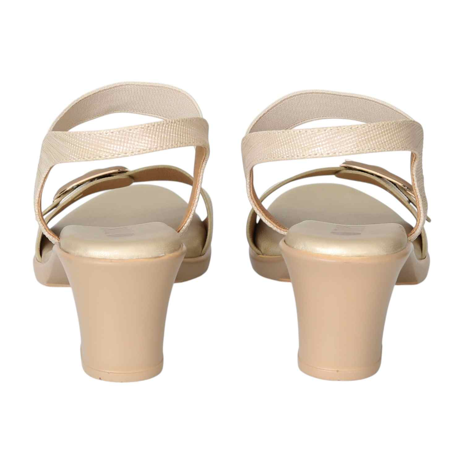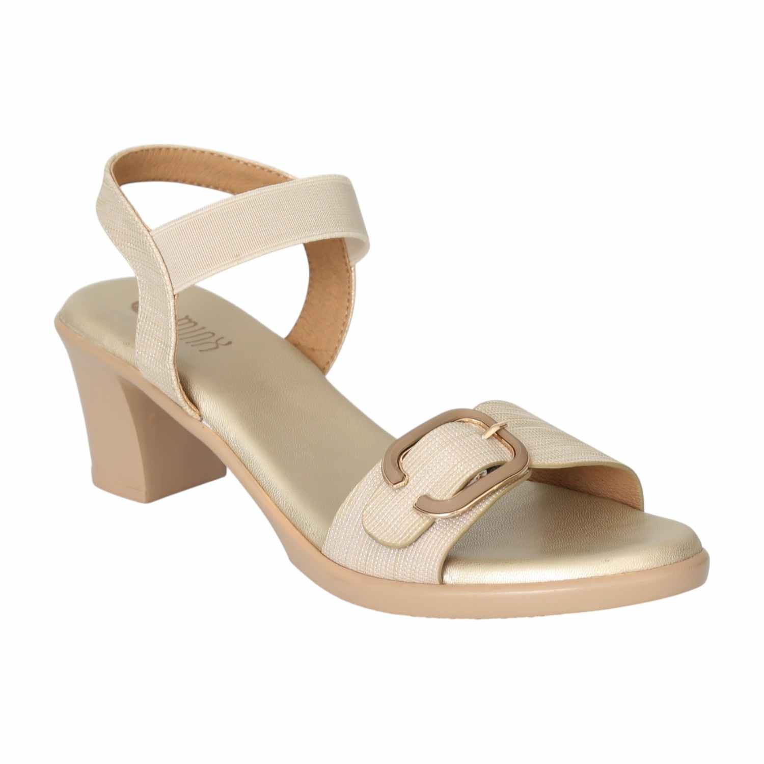 Radiating warmth and elegance, these gold shimmer sandals are the perfect blend of sparkle and sophistication. The mid-block heel offers a comfortable lift, while the metallic finish adds a festive glow to any outfit. A bold buckle accent and secure ankle strap complete the look, making them ideal for celebrations, evening events, or festive gatherings.