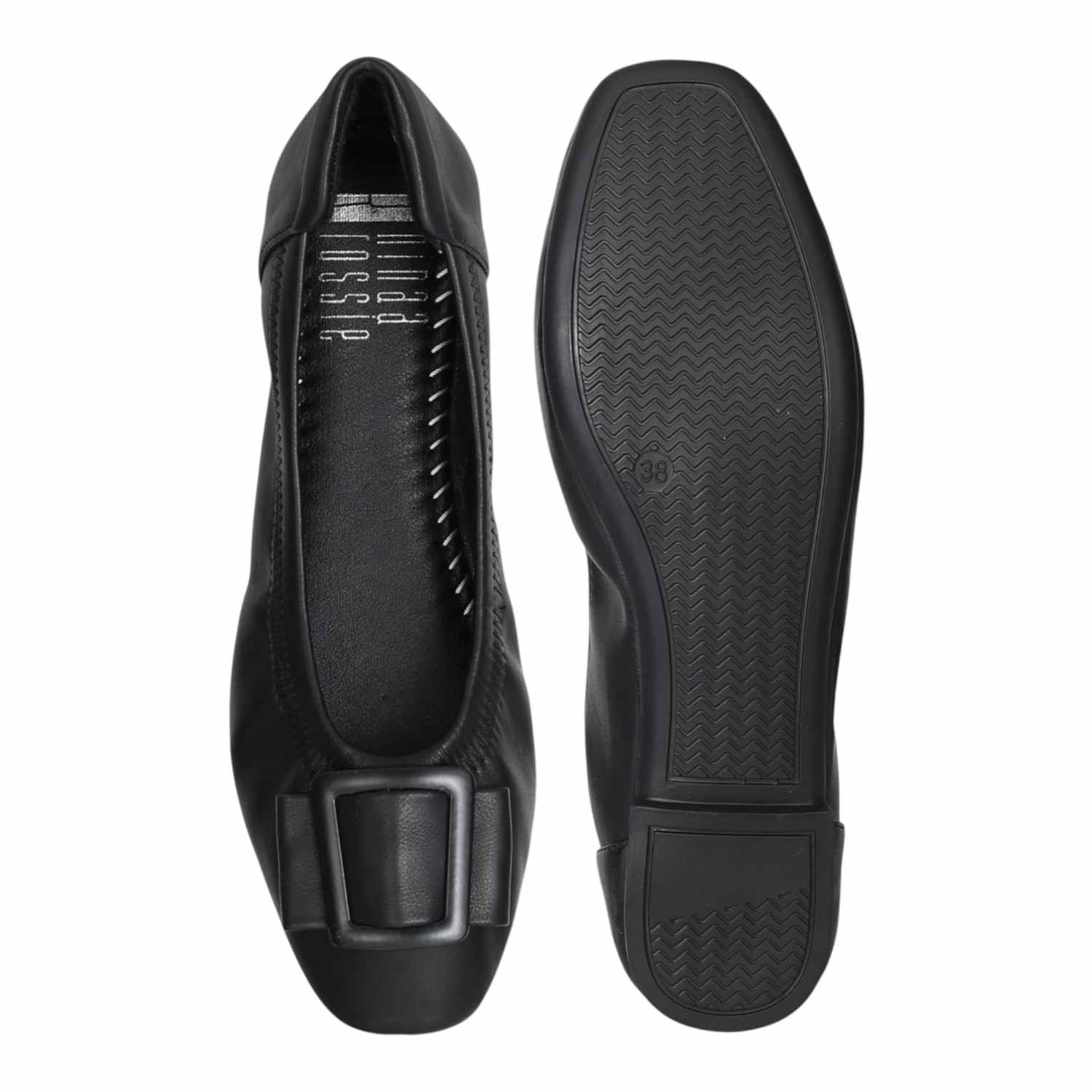These sleek black ballet flats offer a perfect blend of comfort and style. Designed with a soft matte finish and a bold bow accent, they bring understated elegance to any outfit. Whether you're heading to the office, running errands, or meeting friends, these flats provide the versatility and ease you need throughout the day.