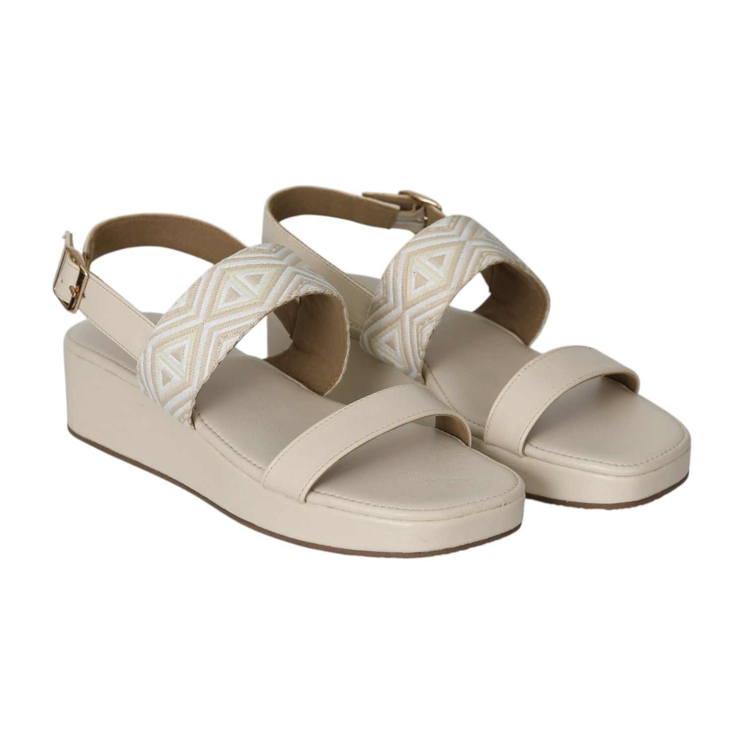 Soft in tone and easy on the feet, these beige slingback wedge sandals combine comfort with everyday style. The open-toe design keeps things airy, while the embroidered strap adds a touch of handcrafted detail. With a cushioned wedge sole and adjustable back strap, they’re built for all-day wear—from casual walks to relaxed get-togethers.