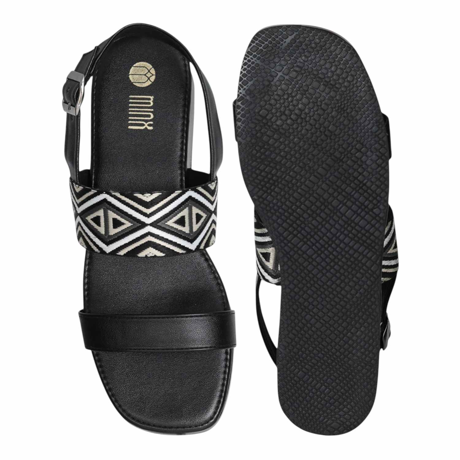 Designed for effortless movement and modern style, these black wedge sandals feature an embroidered front strap and an open-toe silhouette. The dark tone adds a sleek edge, while the cushioned wedge sole ensures support through all-day wear. Whether paired with casual denim or a breezy dress, they strike the perfect balance between comfort and statement design.