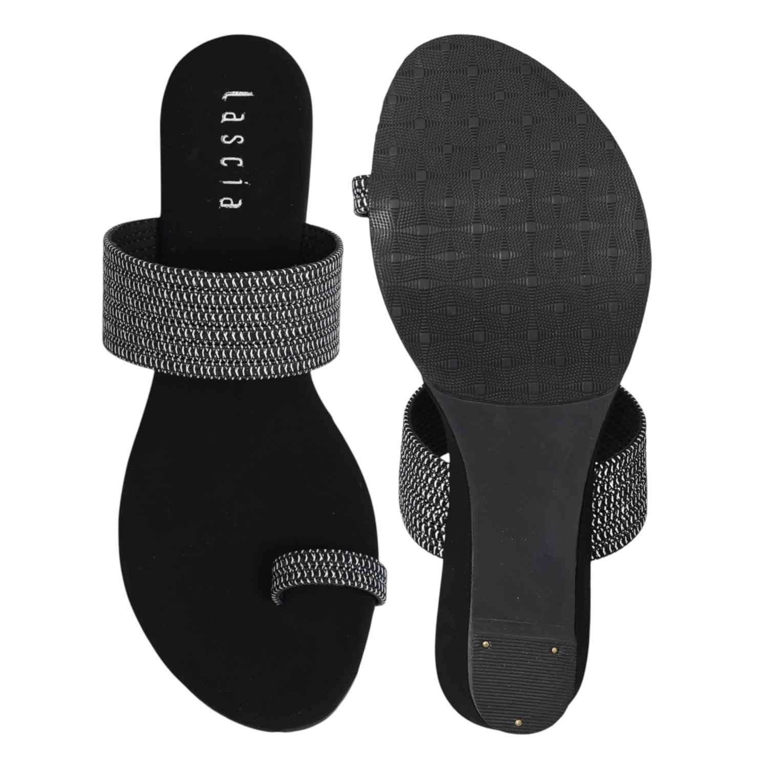 Elegant and versatile, these flats feature a woven-textured upper and a toe-ring silhouette, blending traditional style with a contemporary edge. Ideal for dressing up or down with ease.