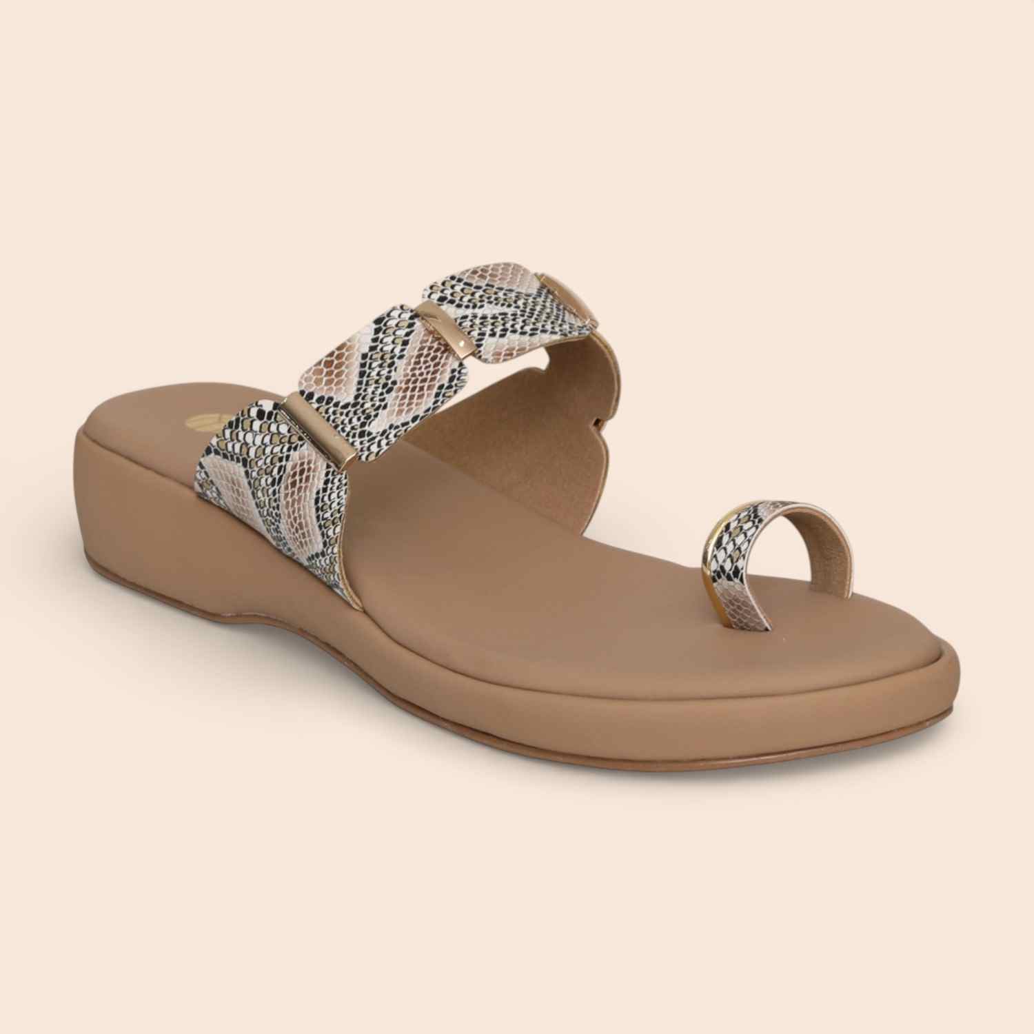 A soft-toned pair that radiates quiet confidence and timeless beauty. The neutral shade blends effortlessly with any outfit, while the sleek toe-ring design and textured upper add a hint of understated charm. Designed for day-long comfort, it complements both casual and chic ensembles with ease.