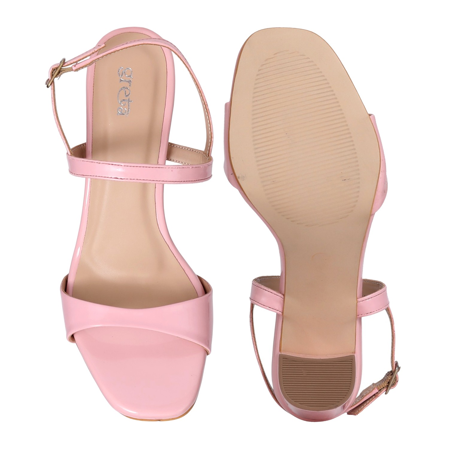 Home / Products / greta / Women's Peach Classy Ankle Strap Block Sandals