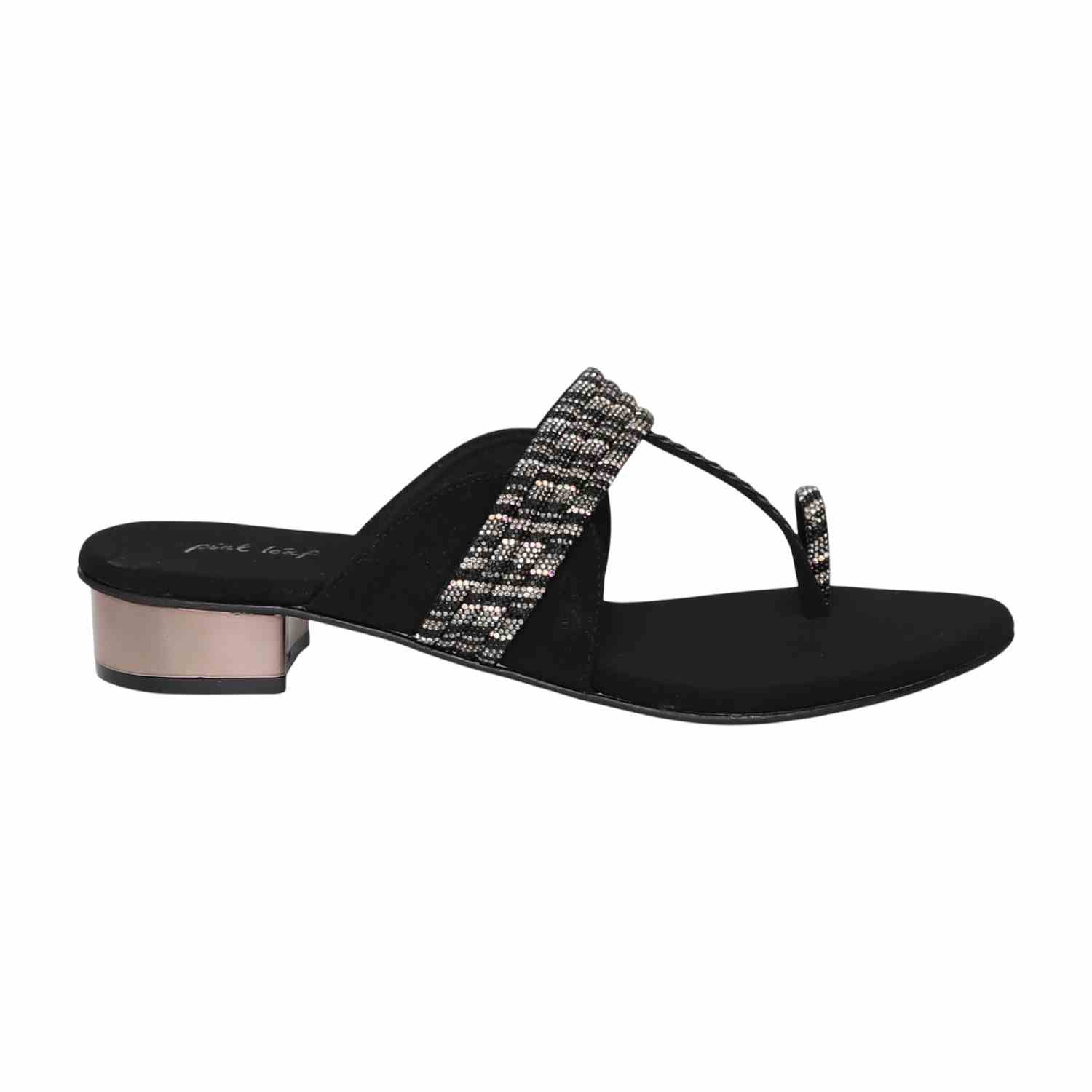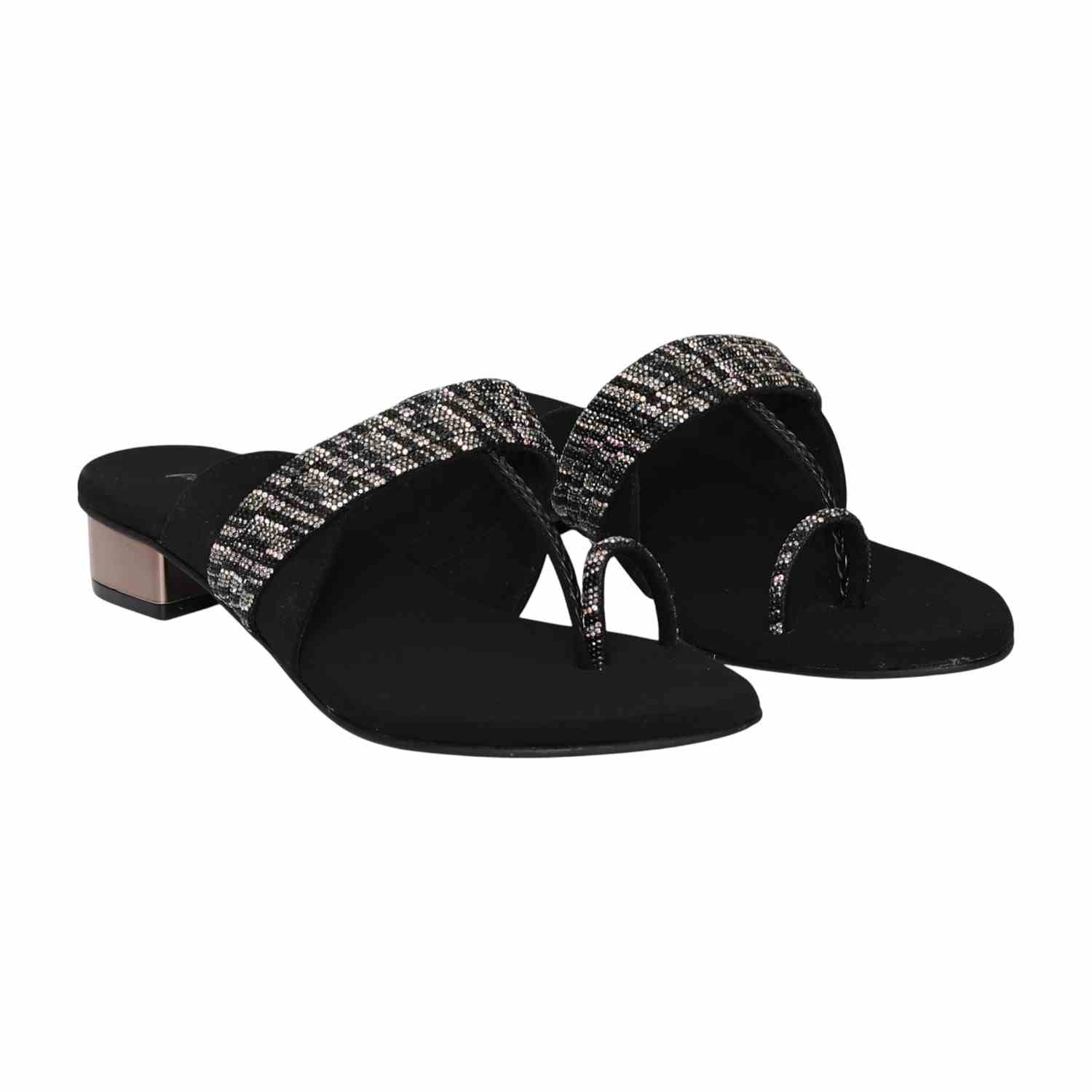 A blend of elegance and mystery, this pair exudes timeless charm through its deep hue and intricate beaded strap design. Crafted for both comfort and sophistication, it transitions seamlessly from daywear to evening occasions with an understated shimmer that captures attention in every step