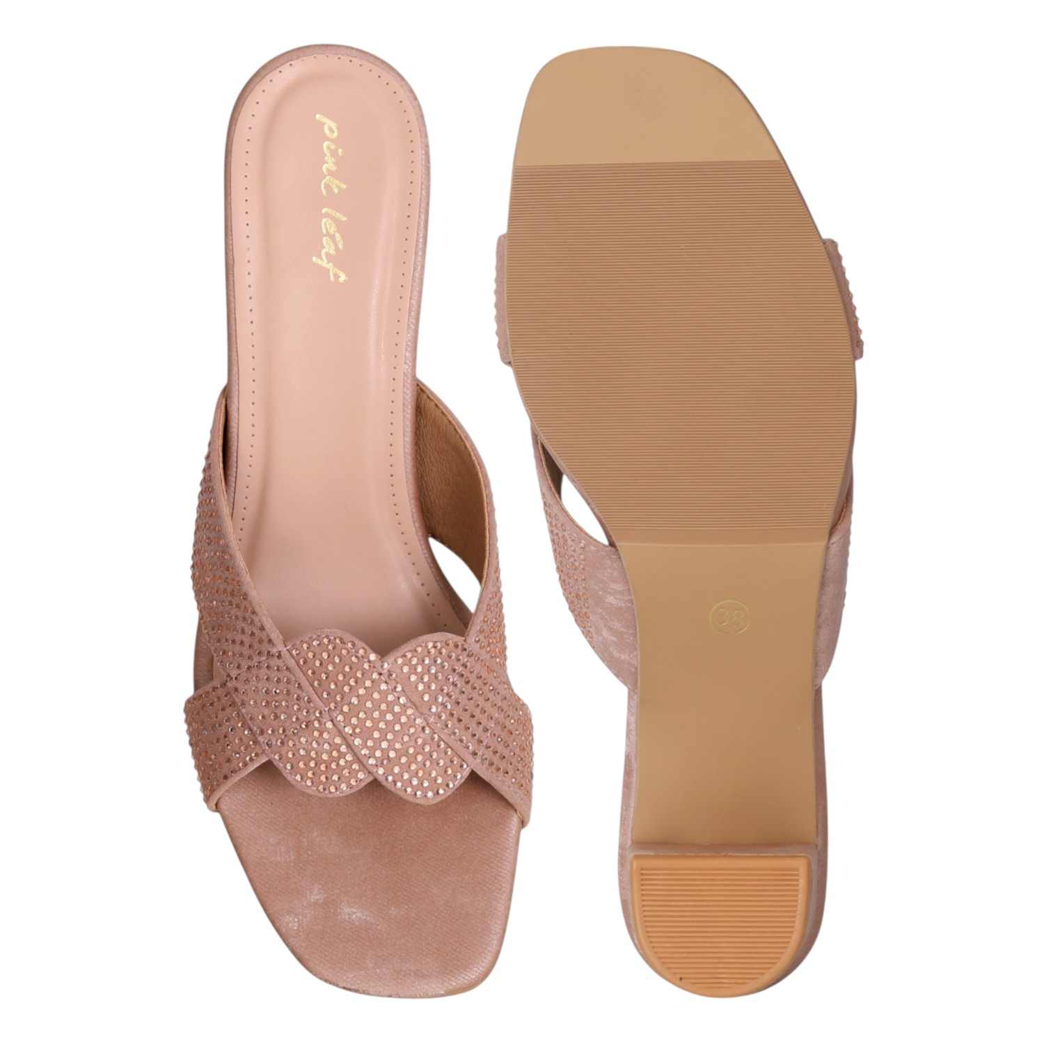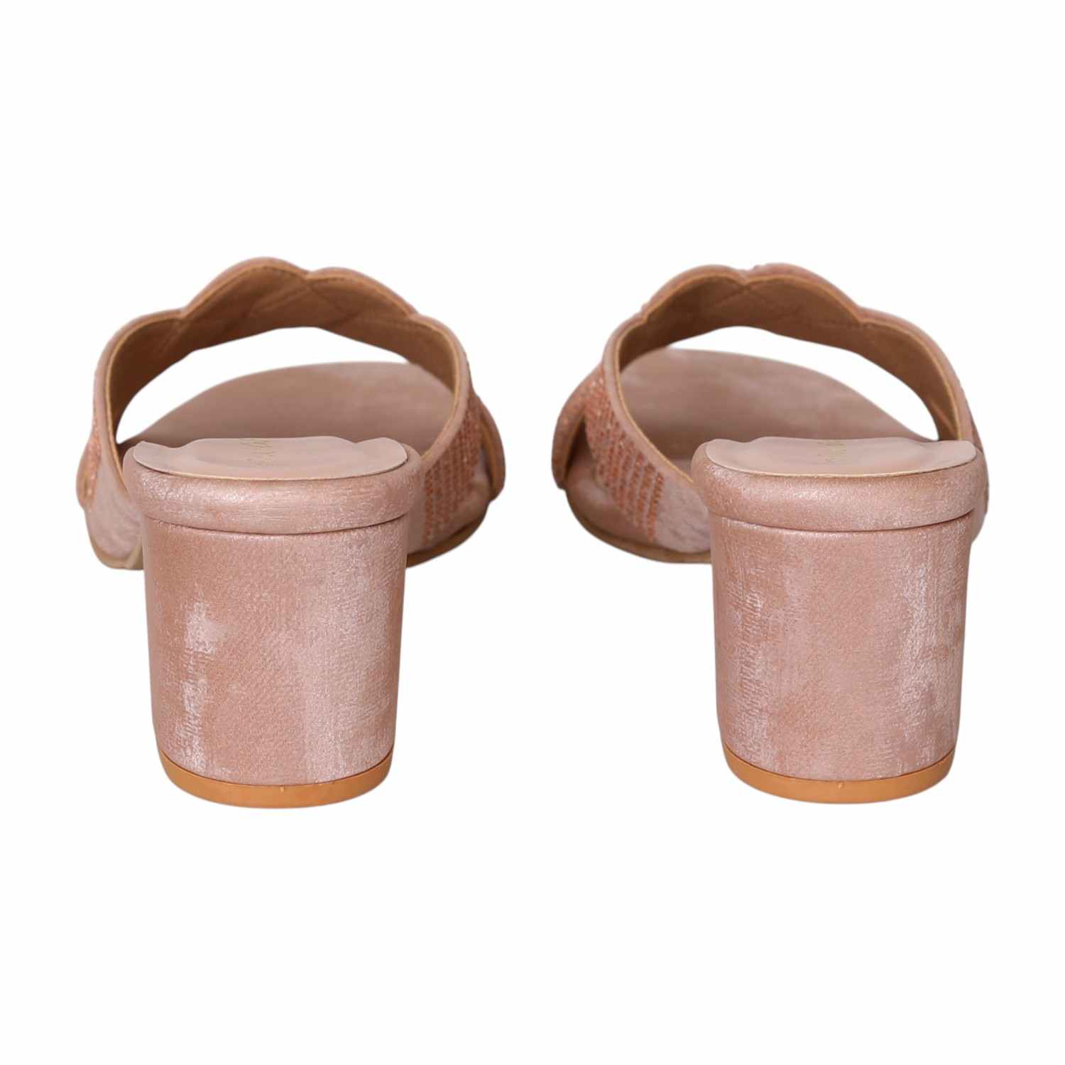 A subtle shimmer in a chic chickoo shade, these braided strap block heels blend comfort and elegance. Perfect for festive days and evening elegance, they offer cushioned support with a classic touch.