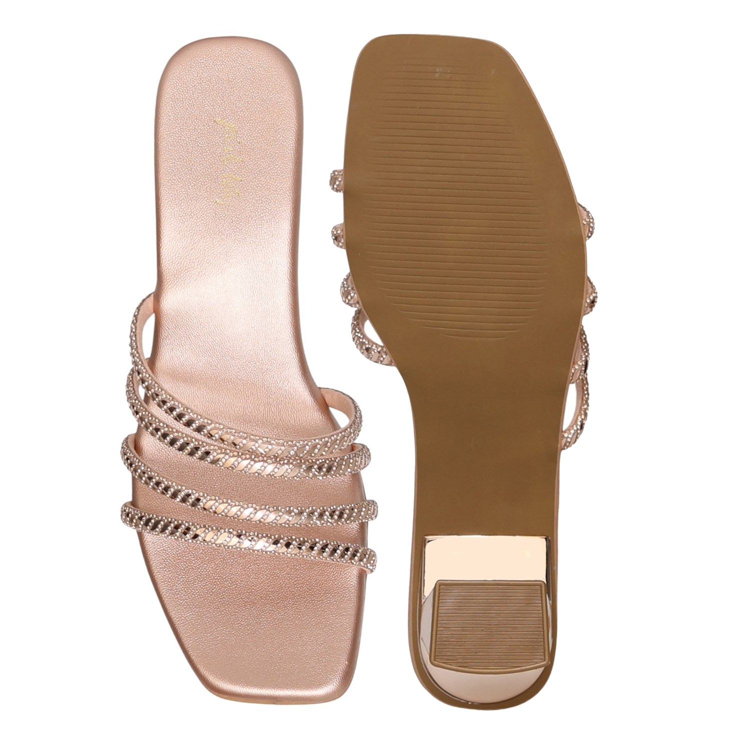 Blending soft blush tones with radiant charm, this pair captures femininity in its purest form. The metallic undertone and intricate straps exude an ethereal beauty, making it an ideal choice for celebrations and chic ensembles alike.