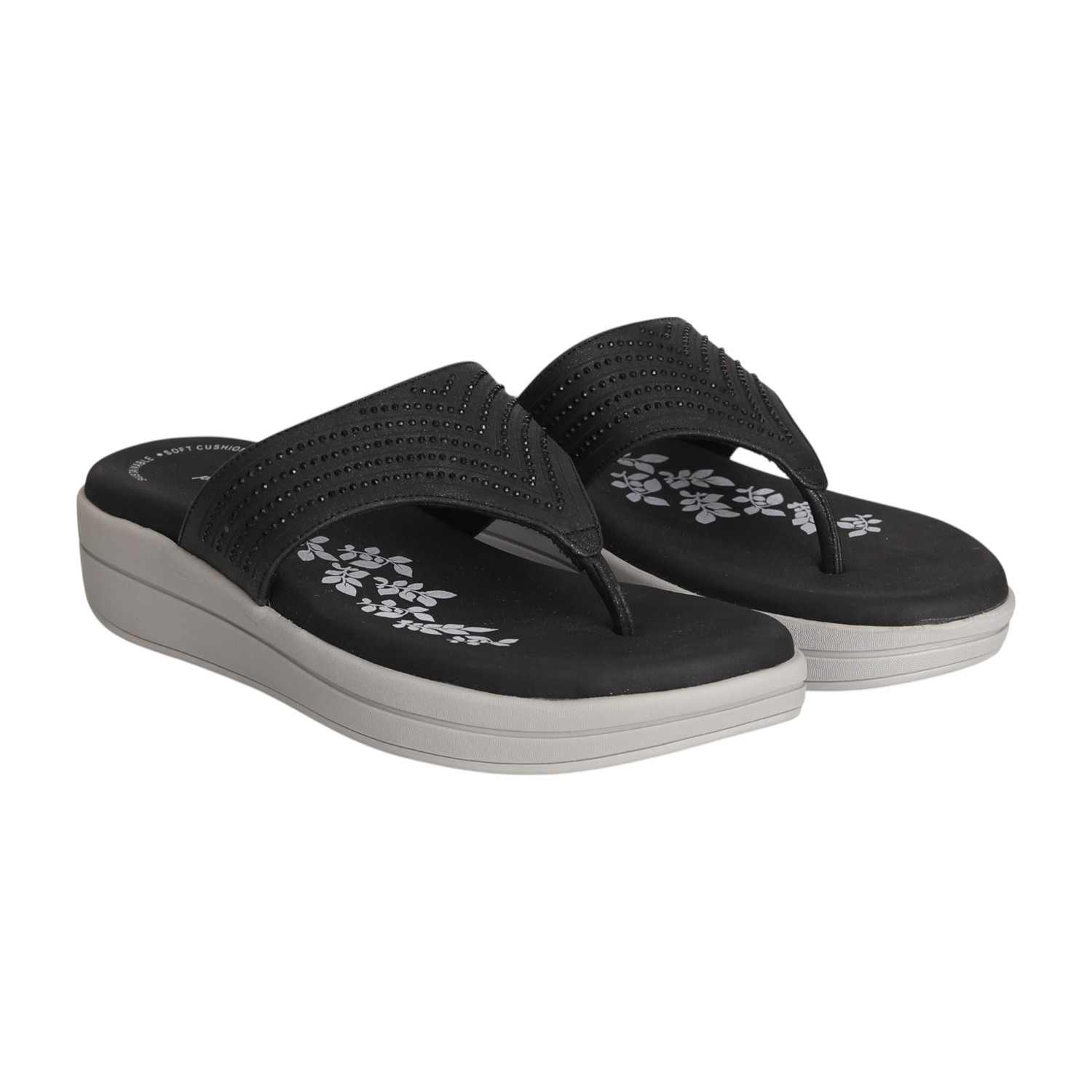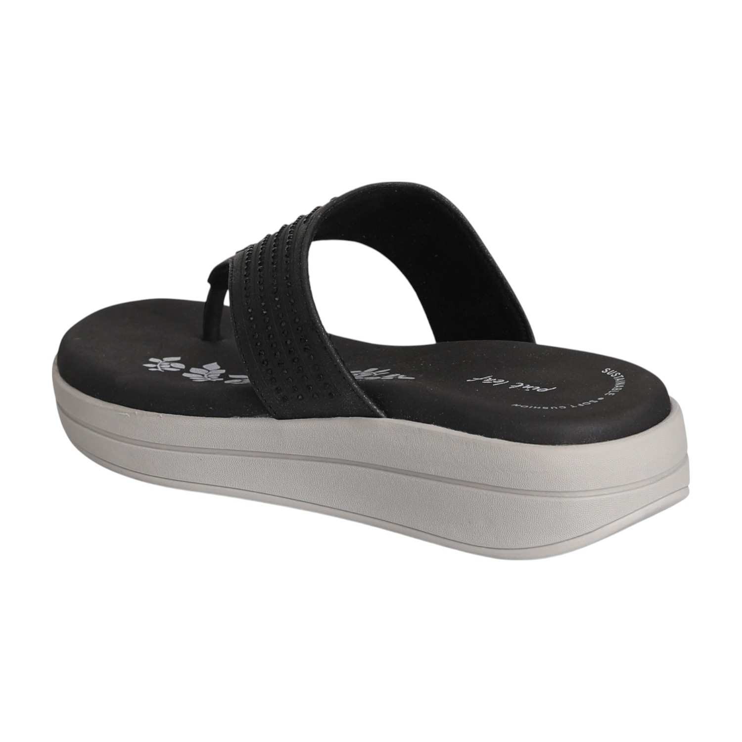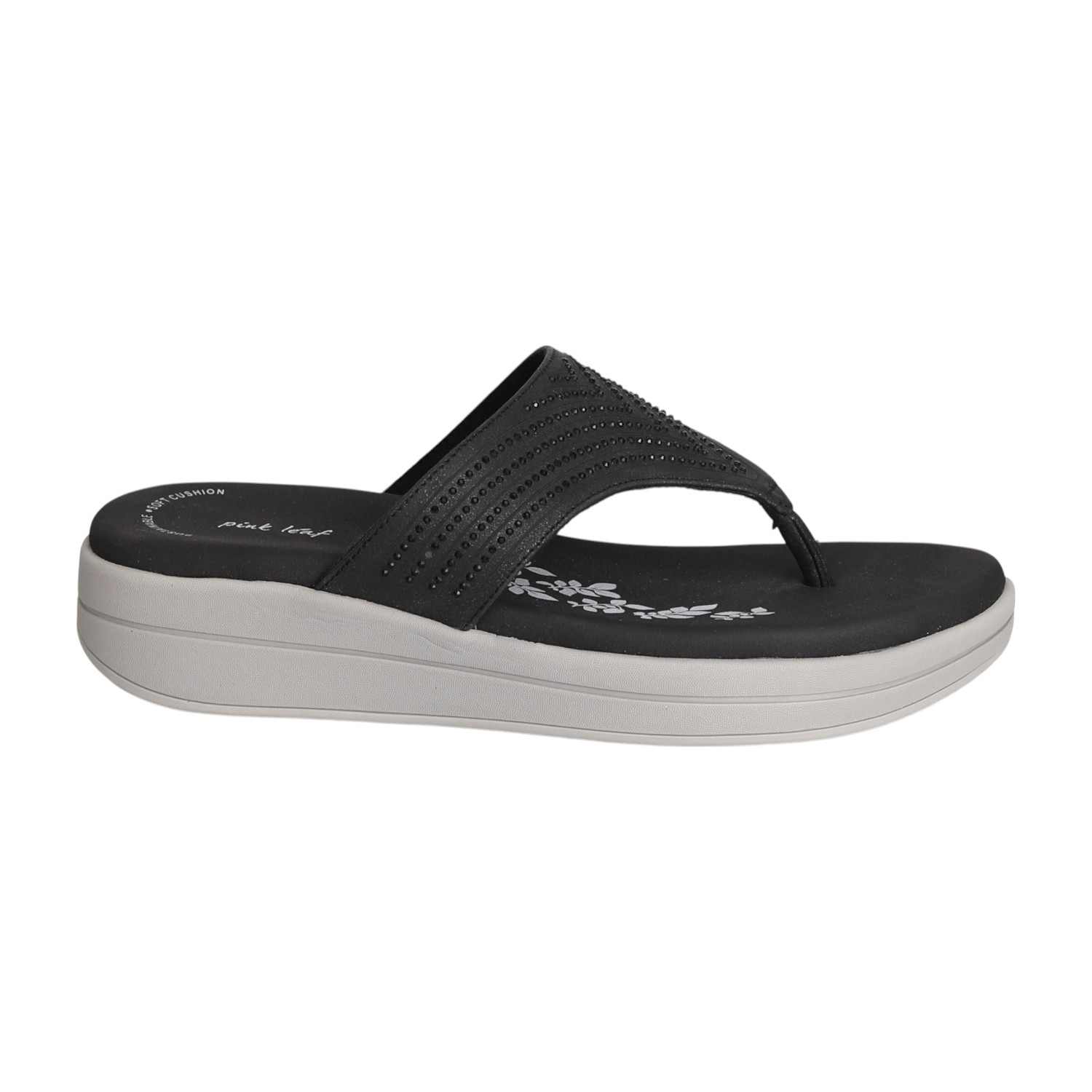 Step into effortless sophistication with these striking thong sandals. Featuring a broad, matte black strap elegantly adorned with subtle, tone-on-tone studs, they offer understated allure. The incredibly comfortable, contoured footbed provides exceptional support for all-day wear, making them a perfect blend of comfort and chic style.